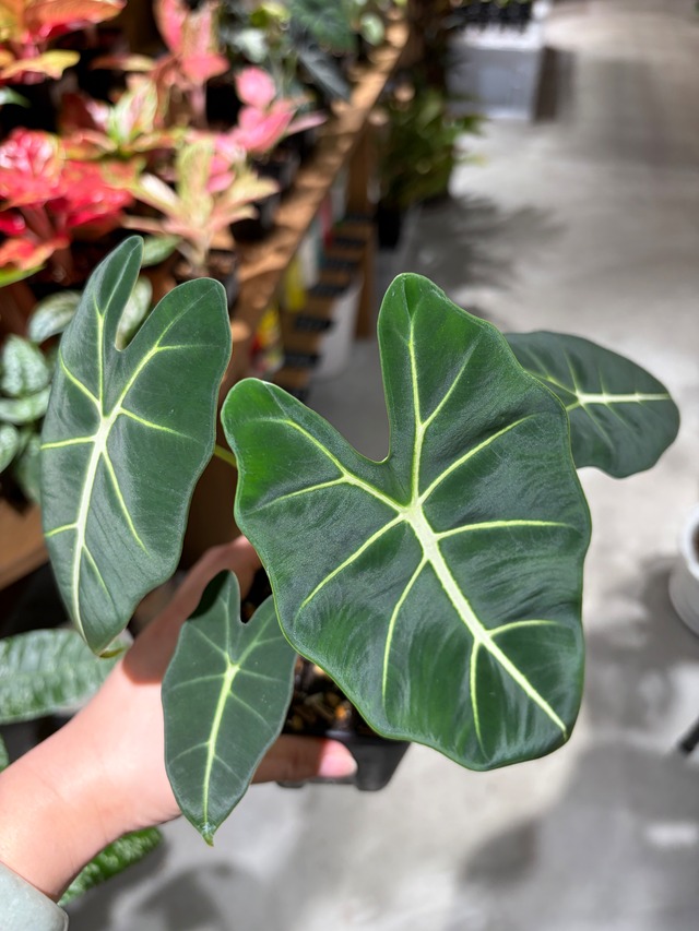 『アロカシア グリーンベルベット』は、 深みのあるグリーンとベルベットのような質感が魅力の観葉植物です。 マットで起毛感のある葉にくっきりと浮かぶ白い葉脈が美しく、 上品で高級感のある佇まいが空間を引き締めてくれます。 ※写真に写っている現品をお届けいたします。 ※撮影日:2026年3月26日 ※店内でも販売しているため、 タイミングにより売り切れとなる場合がございます。ご了承ください。 【育て方】 ・置き場所:明るい日陰〜直射日光を避けた場所 ・水やり:土の表面が乾いたらたっぷり ・温度管理:10℃以上をキープ(冬は室内管理推奨) ・湿度:やや高めを好みます(乾燥に注意) 【注意事項】 〇 植物は生き物のため、撮影後に多少の変化や成長がある場合があります。 〇 葉の形・模様・色合いには個体差があります。自然の特性としてご了承ください。 〇 モニター環境により、実際の色合いと異なって見える場合があります。 〇 鉢植えのまま発送いたします。輸送中に土が多少こぼれる場合があります。 〇 植物の特性上、返品・交換はお受けできませんので、あらかじめご了承ください。