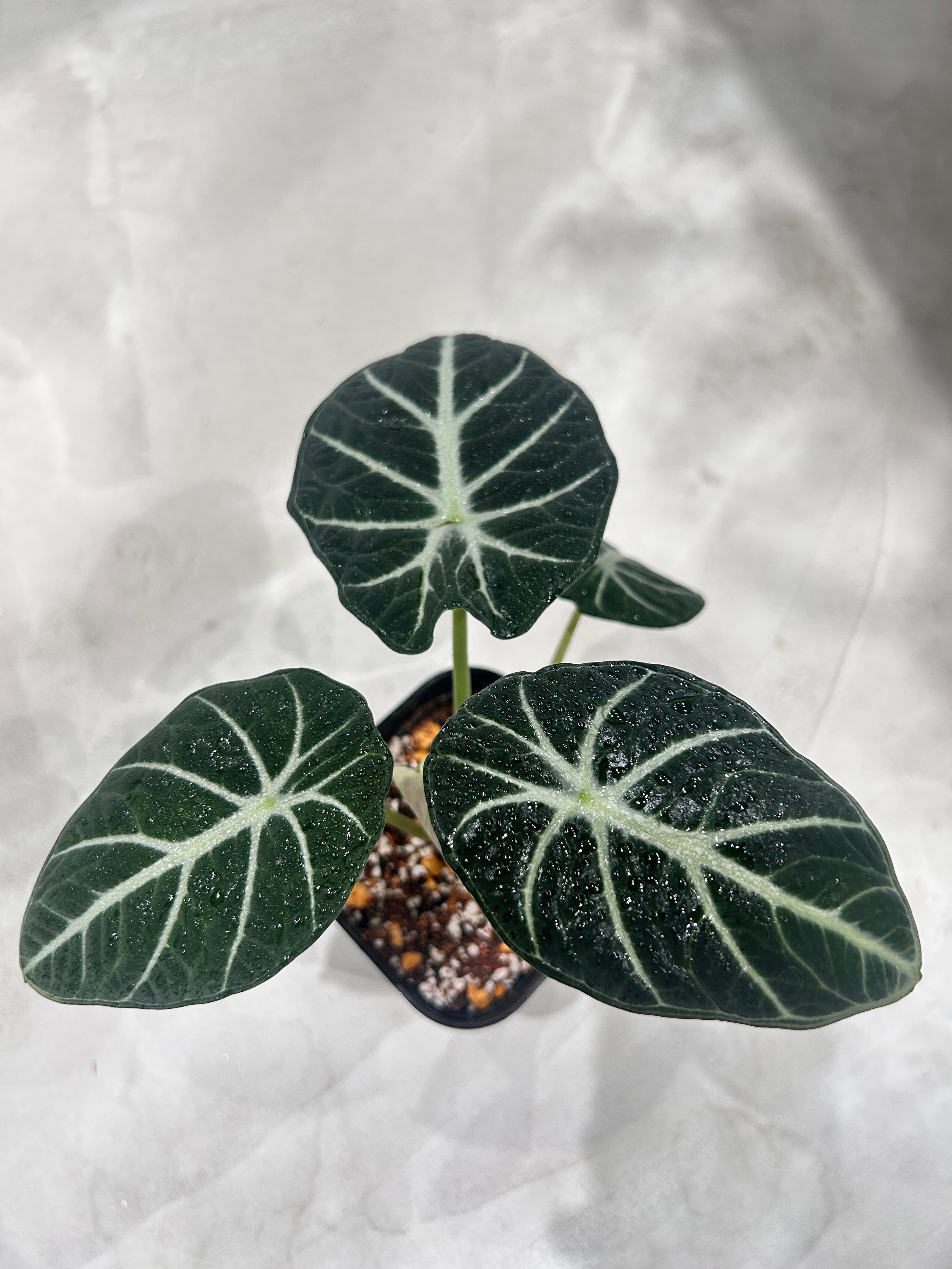黒緑の葉と白い葉脈のコントラストが綺麗