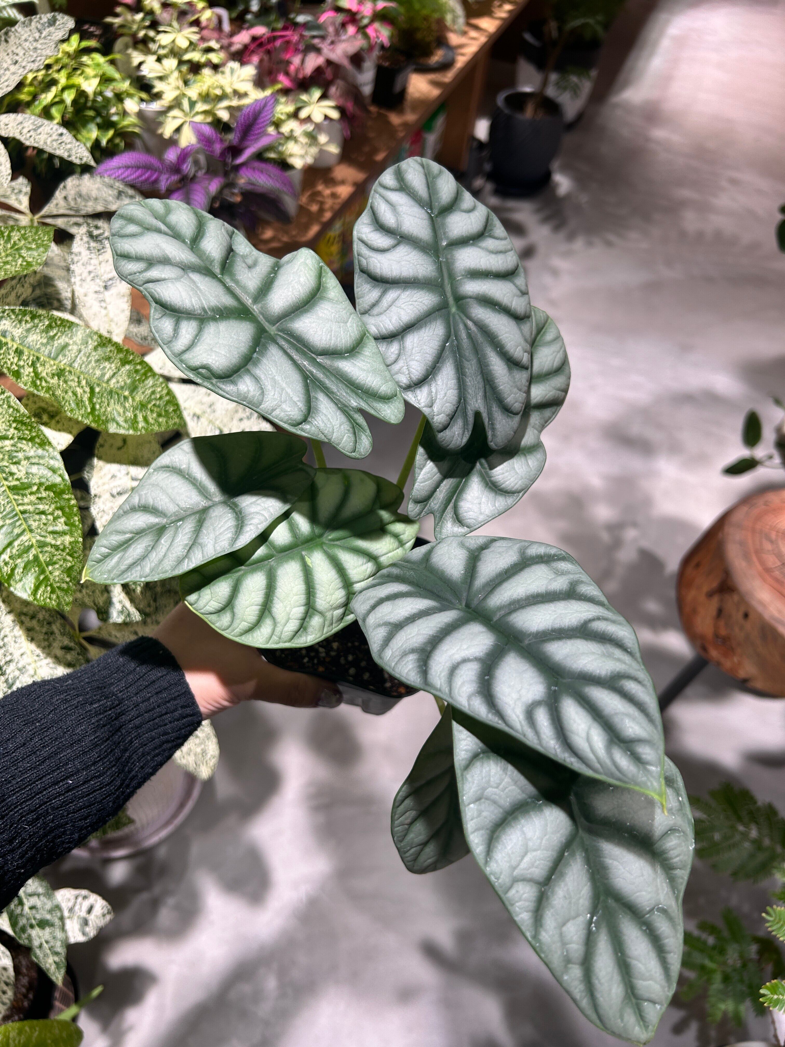 シルバーグレーの美しい葉が特徴的な観葉植物です。