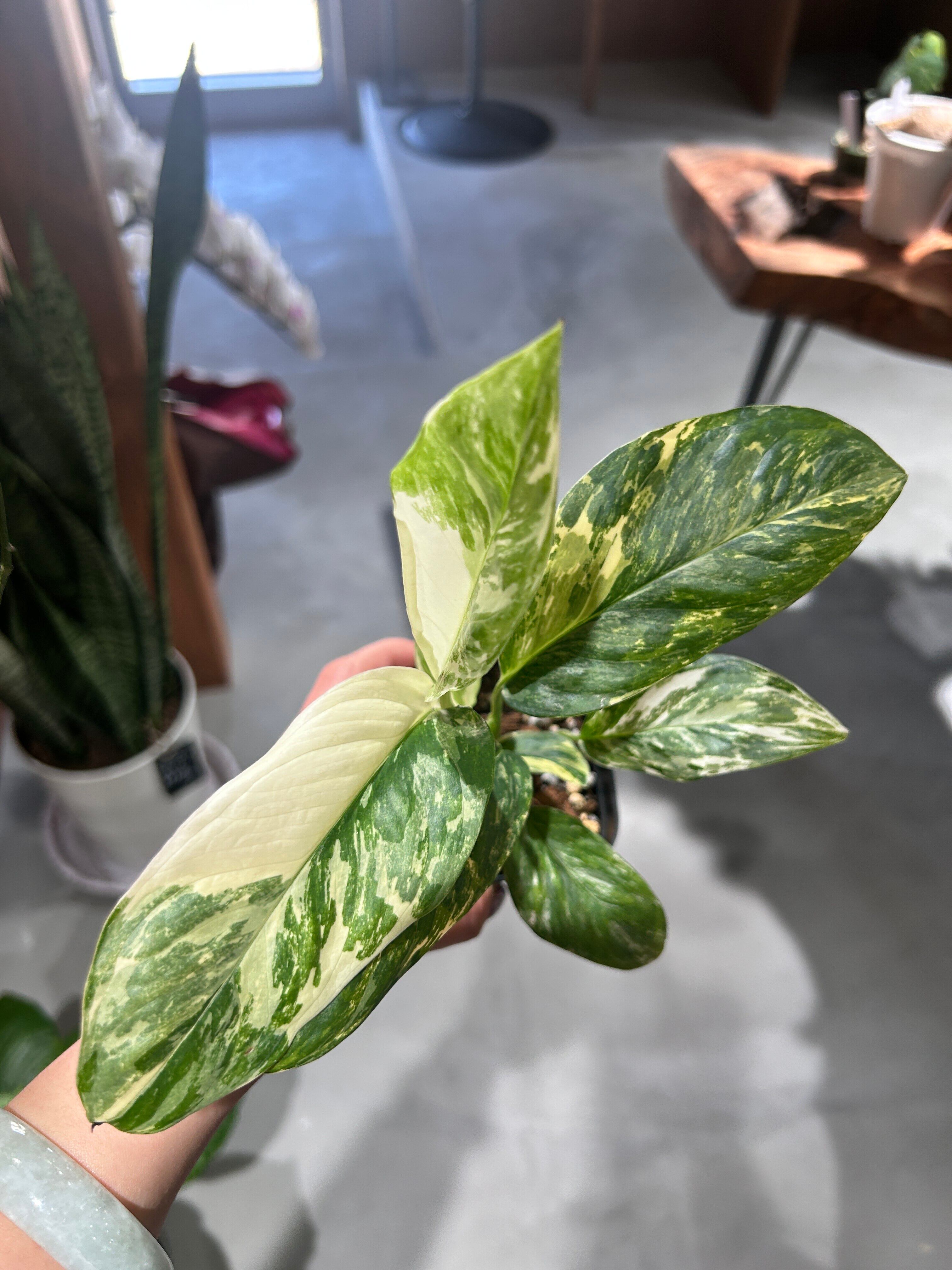 縦長の葉に無数の穴が開く珍しい種類のモンステラです。