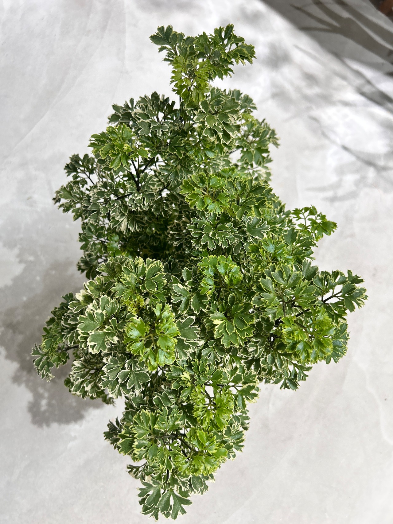 白い斑が入った小さな葉が雪の結晶のように美しい。