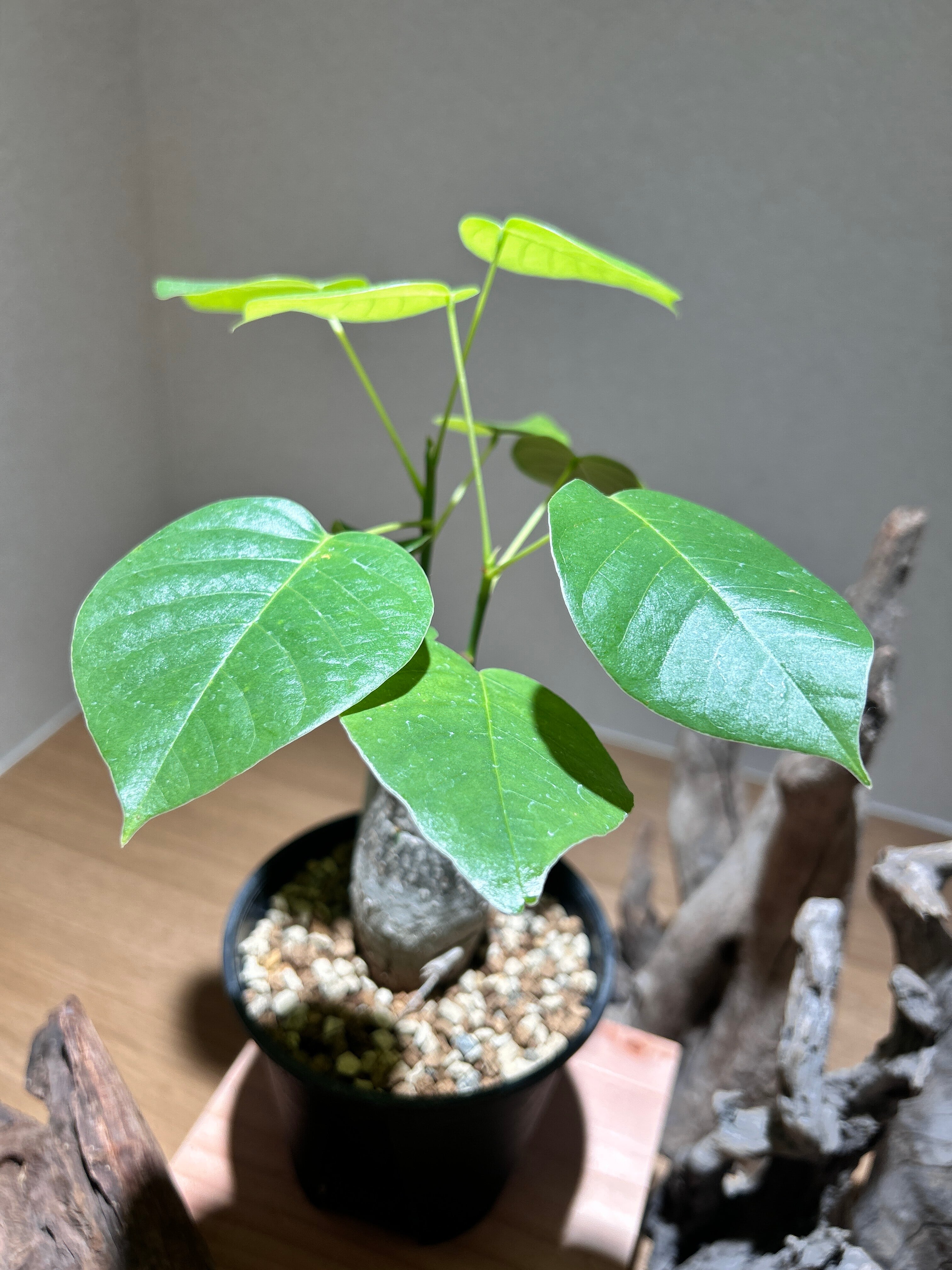 夏型の塊根植物です。冬になると葉を落とし、春には新芽が出てきます。