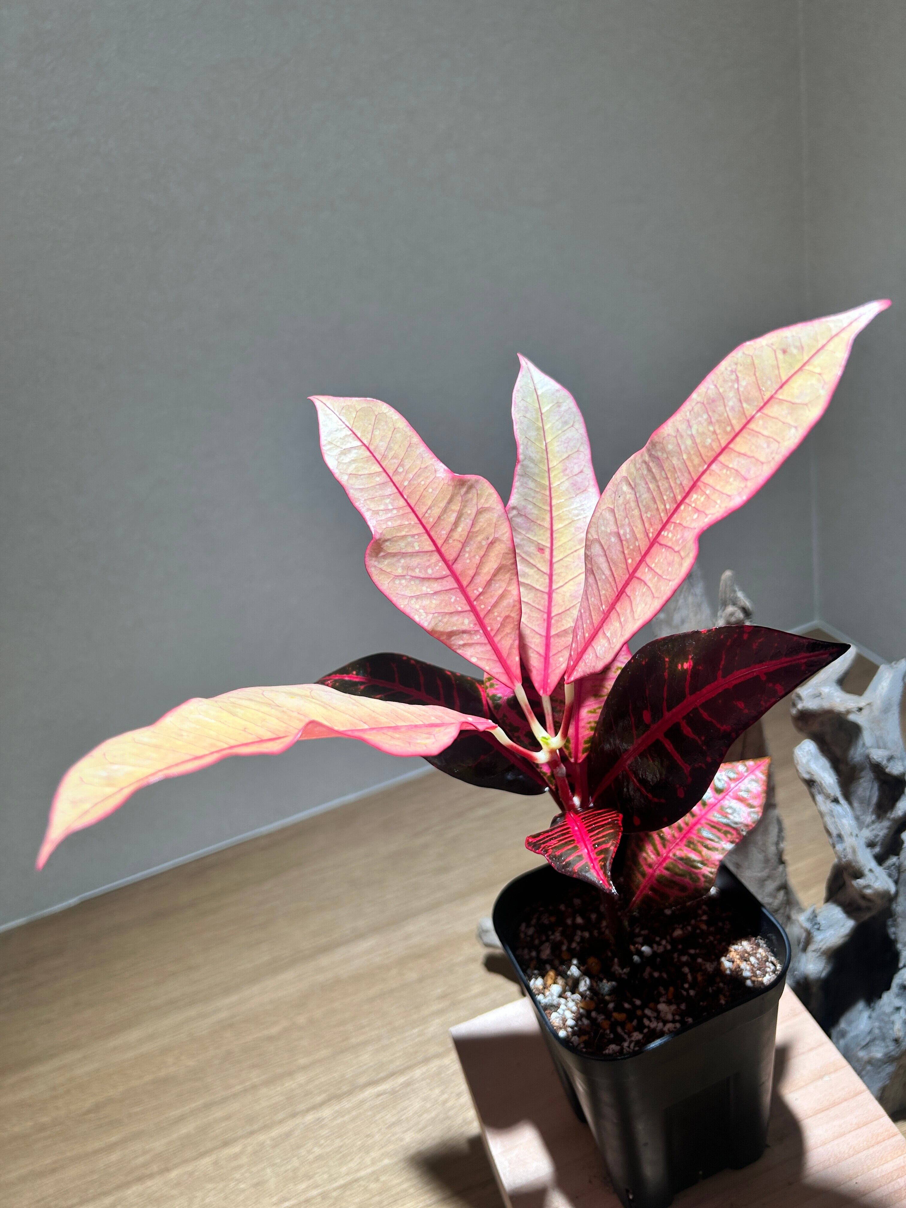 色とりどりの美しい葉が特徴で、観葉植物としての魅力を存分に発揮します。鮮やかな色合いは、お部屋に彩りを添え、インテリアのアクセントとしてもぴったりです。