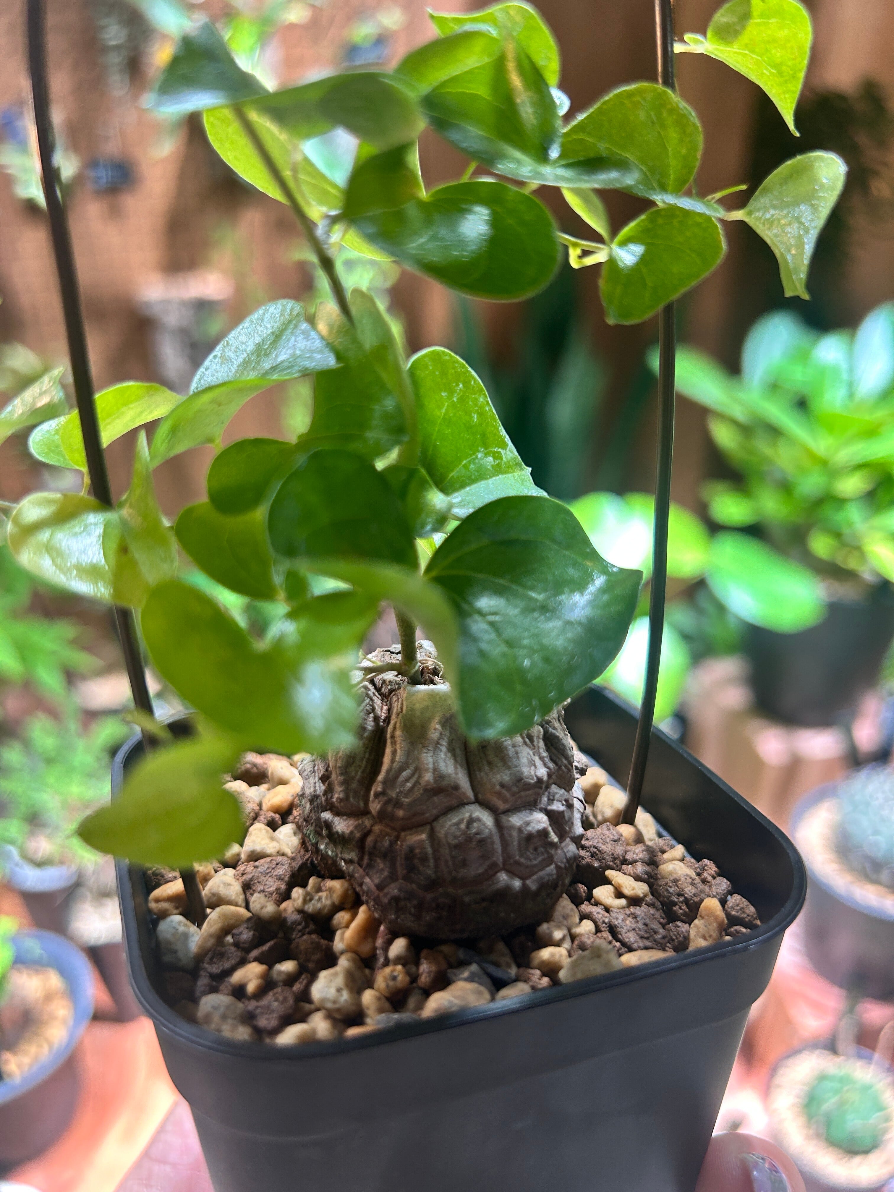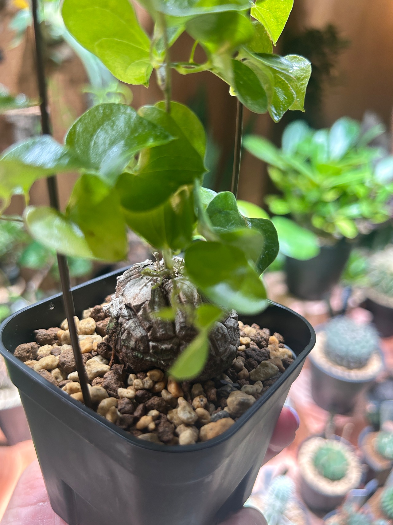 『亀甲竜』とは、ゴツゴツとしたユニークな割れ方をする塊根が特徴。