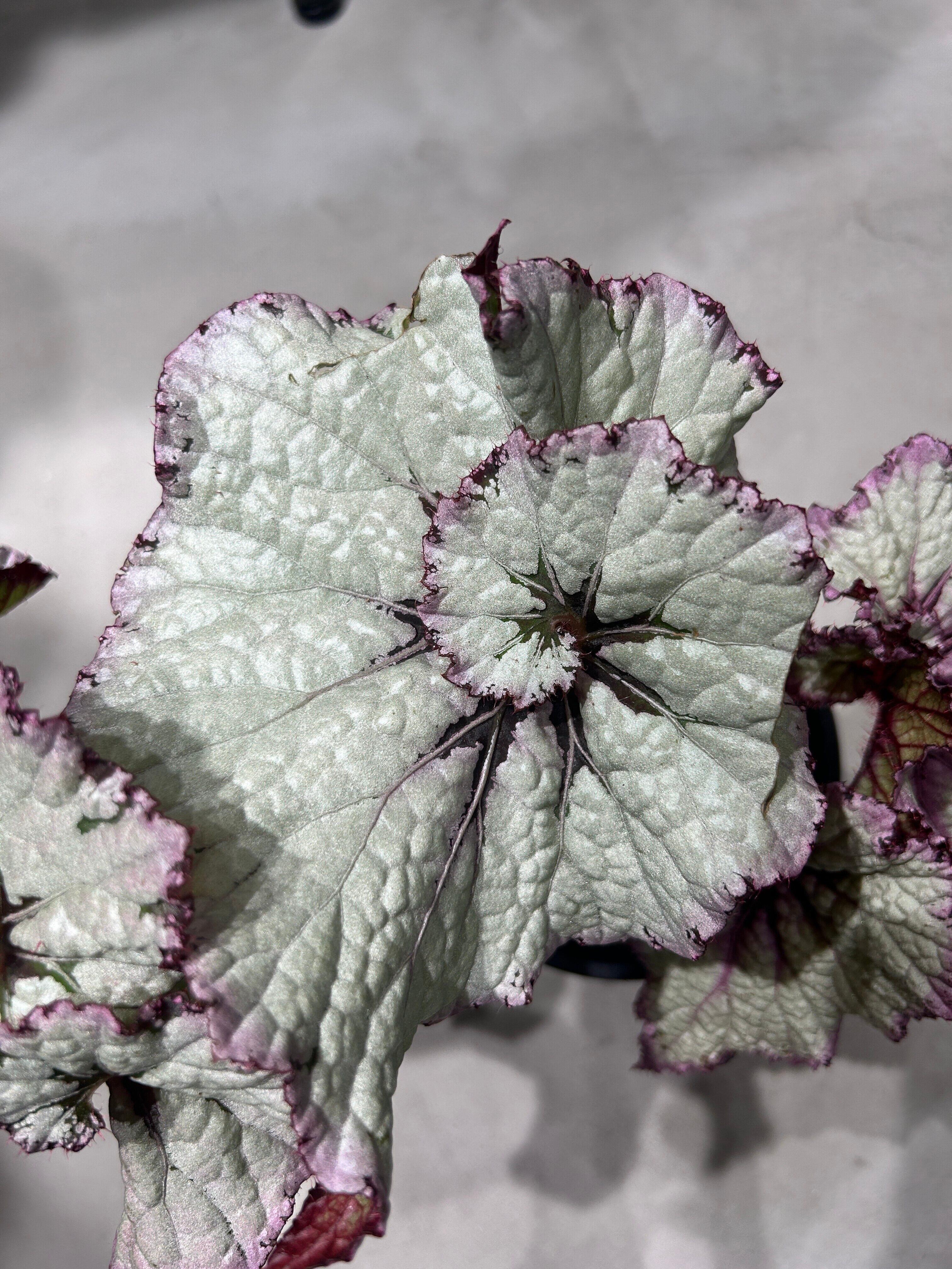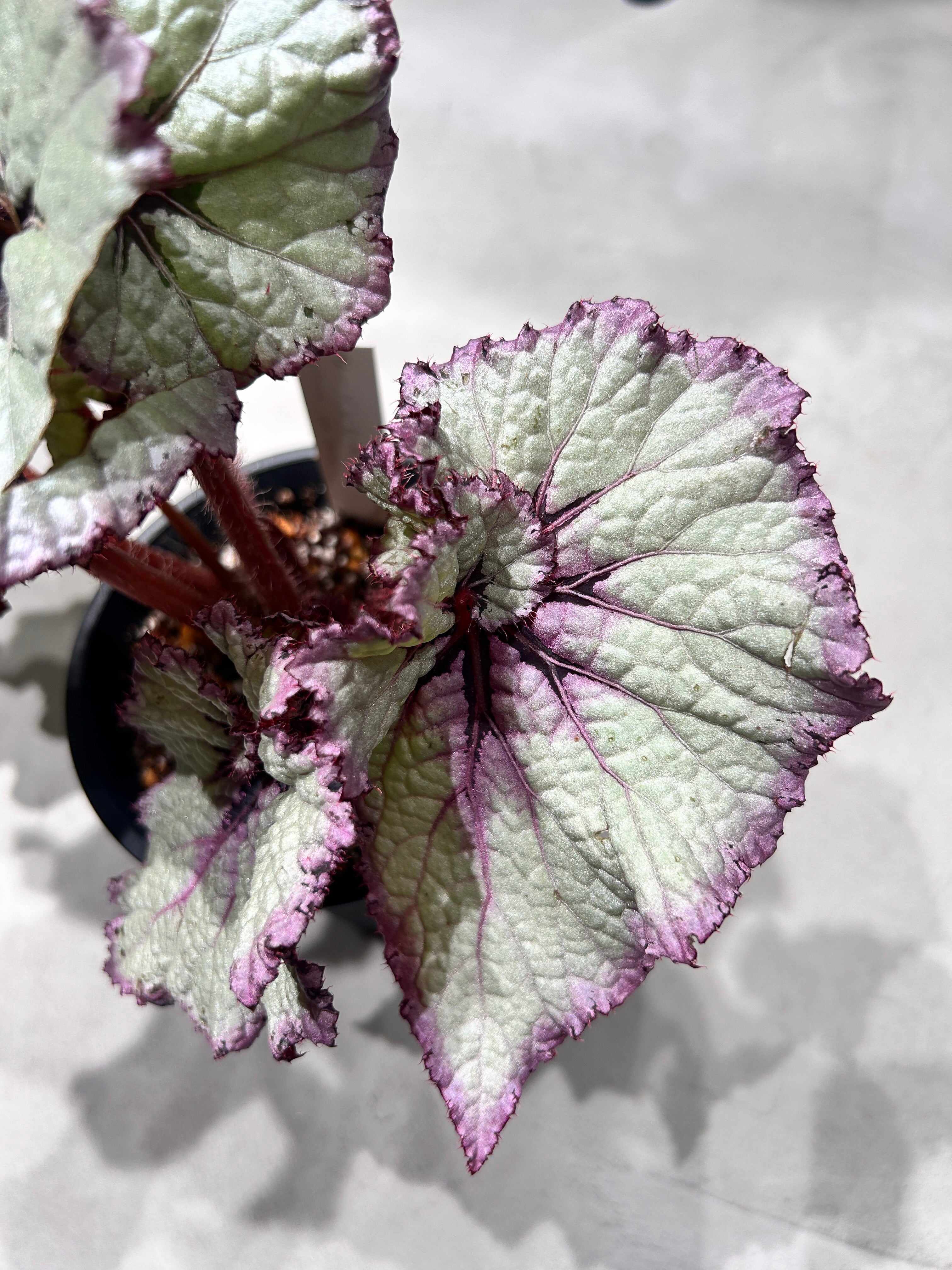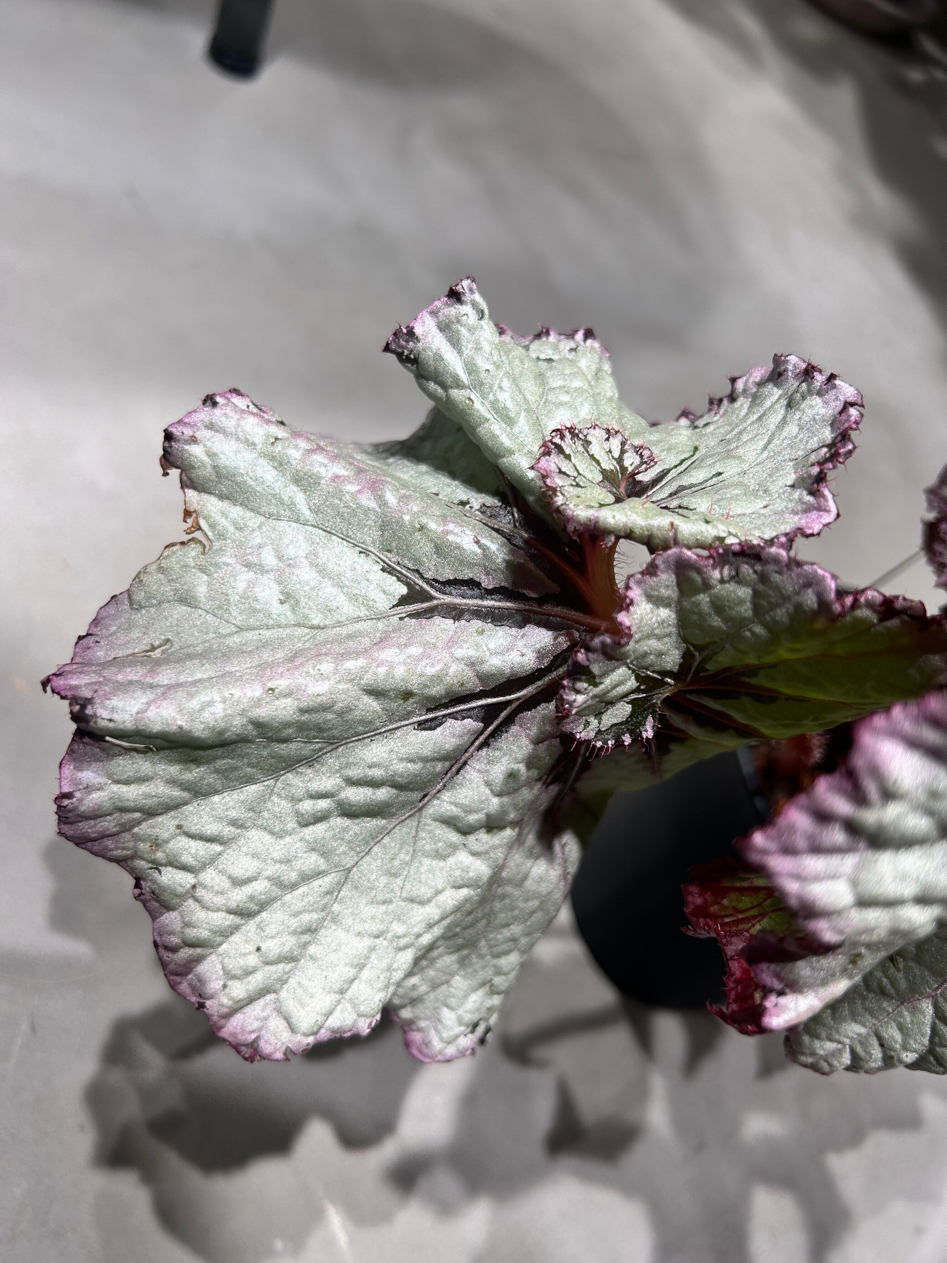 中心部の葉脈が黒色、葉の縁部分が薄い紫色が綺麗な植物です。