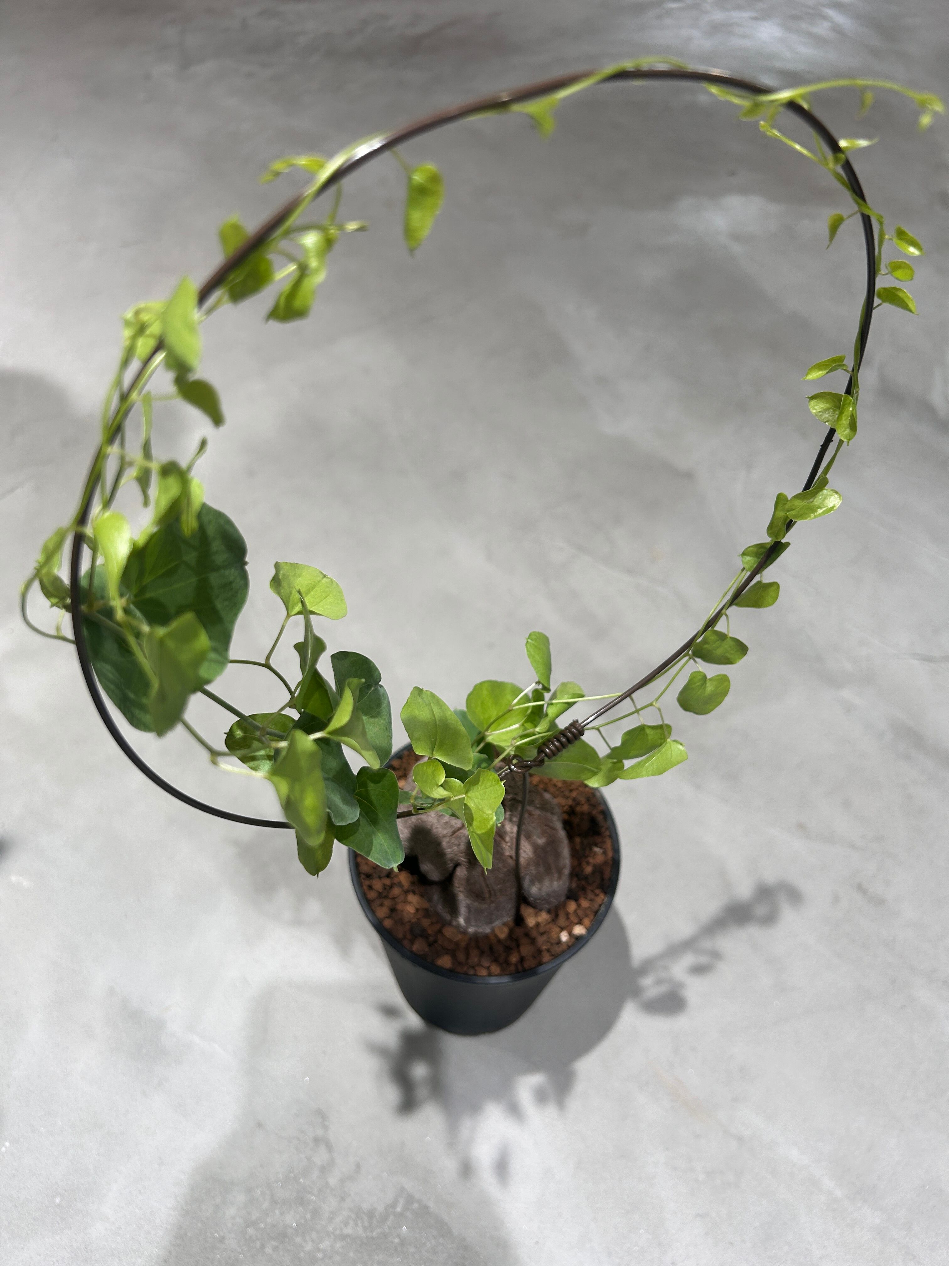 鉢植えに支柱を立ててつるを誘引しながら楽しめます。