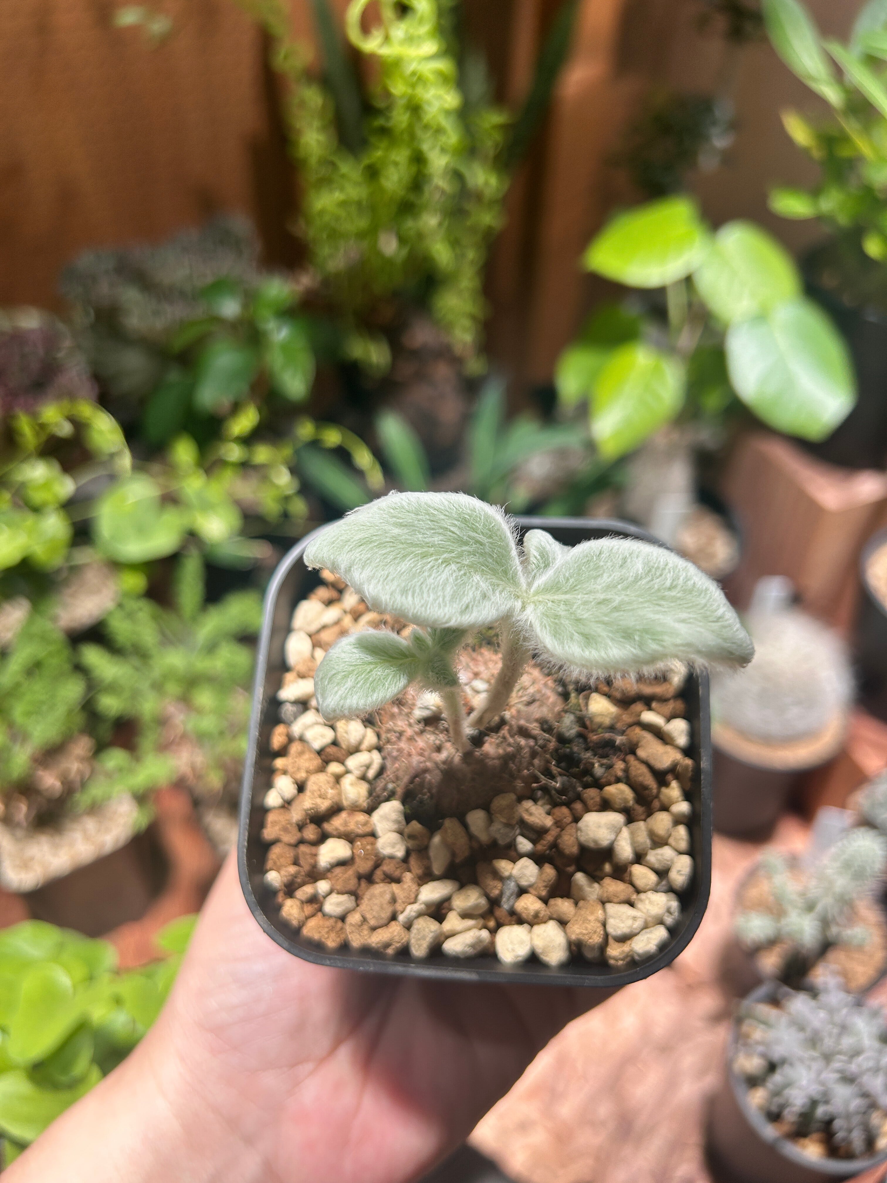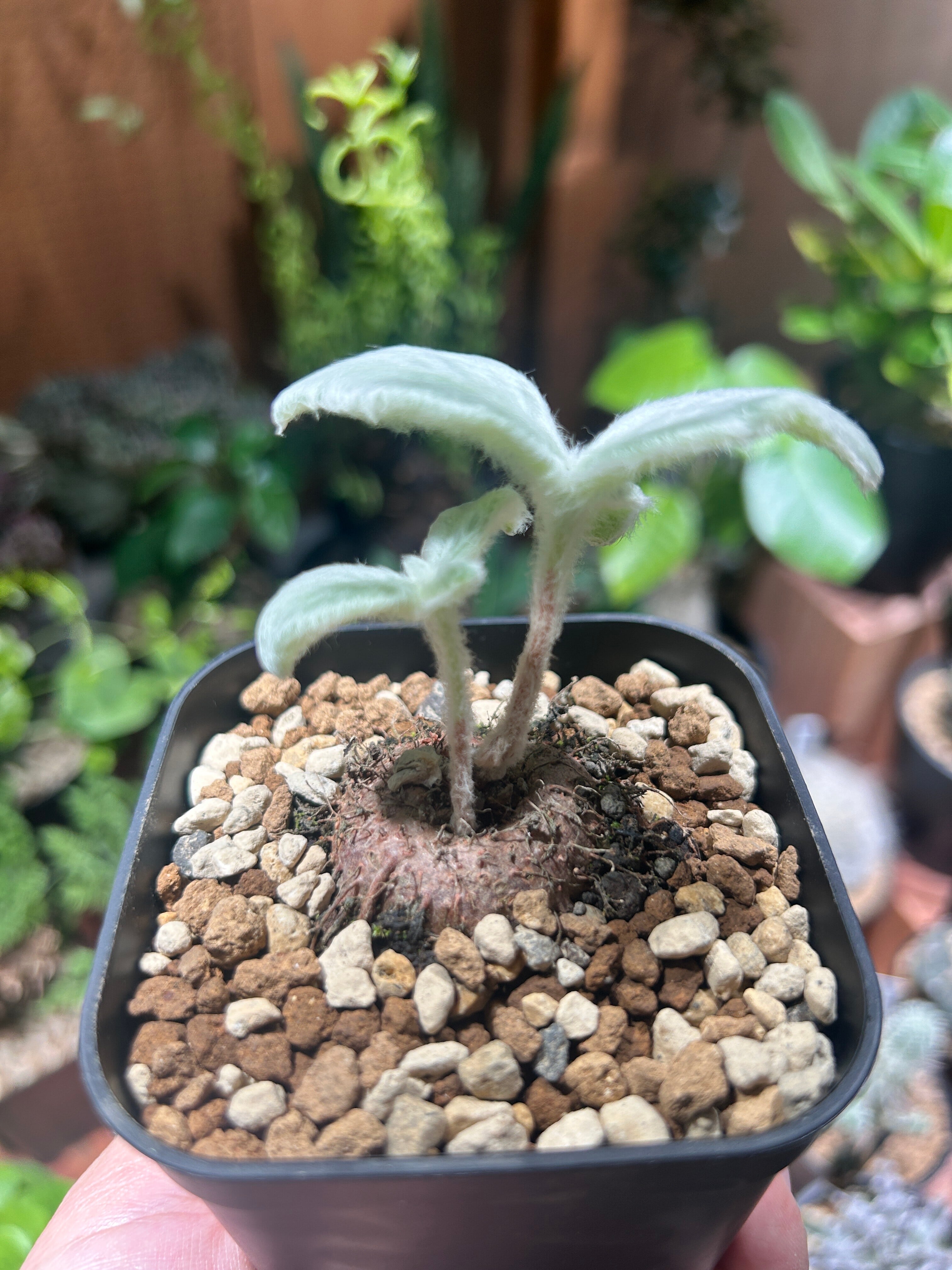 葉の表面に細く柔らかい毛をまとって愛らしい姿をしています。