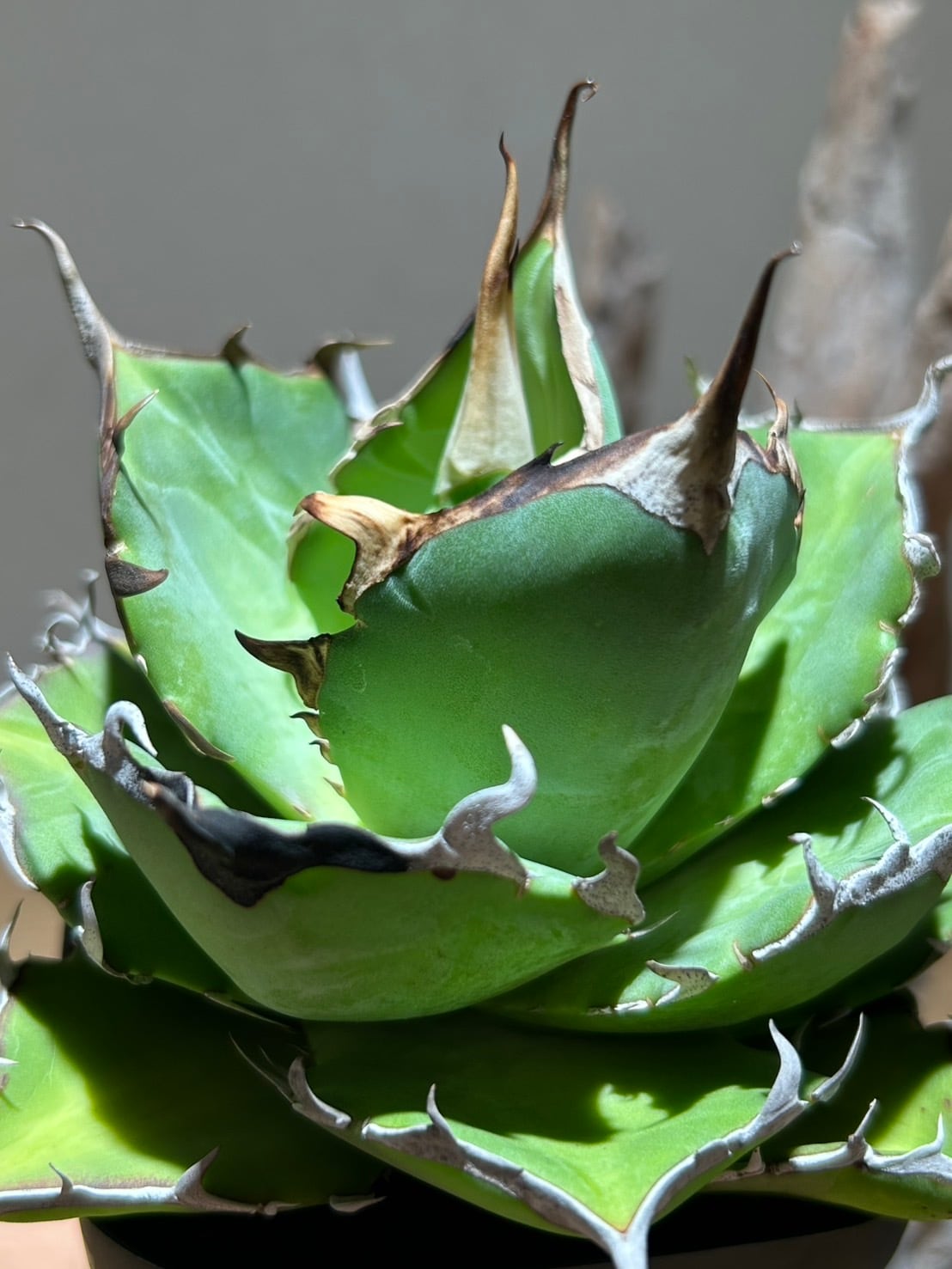 成長につれ鋸歯の面積が大きくなり、幅のある棘を
