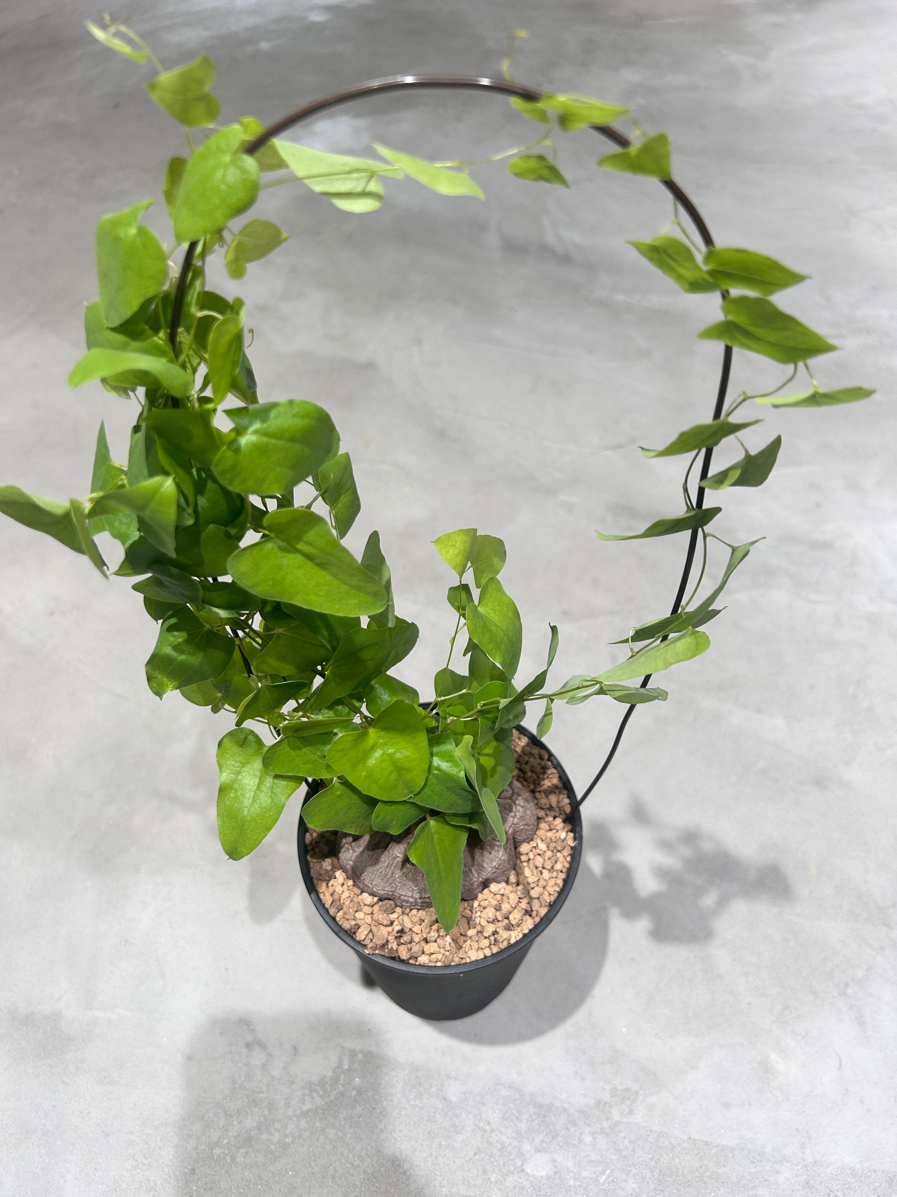 鉢植えに支柱を立ててつるを誘引しながら楽しめます。