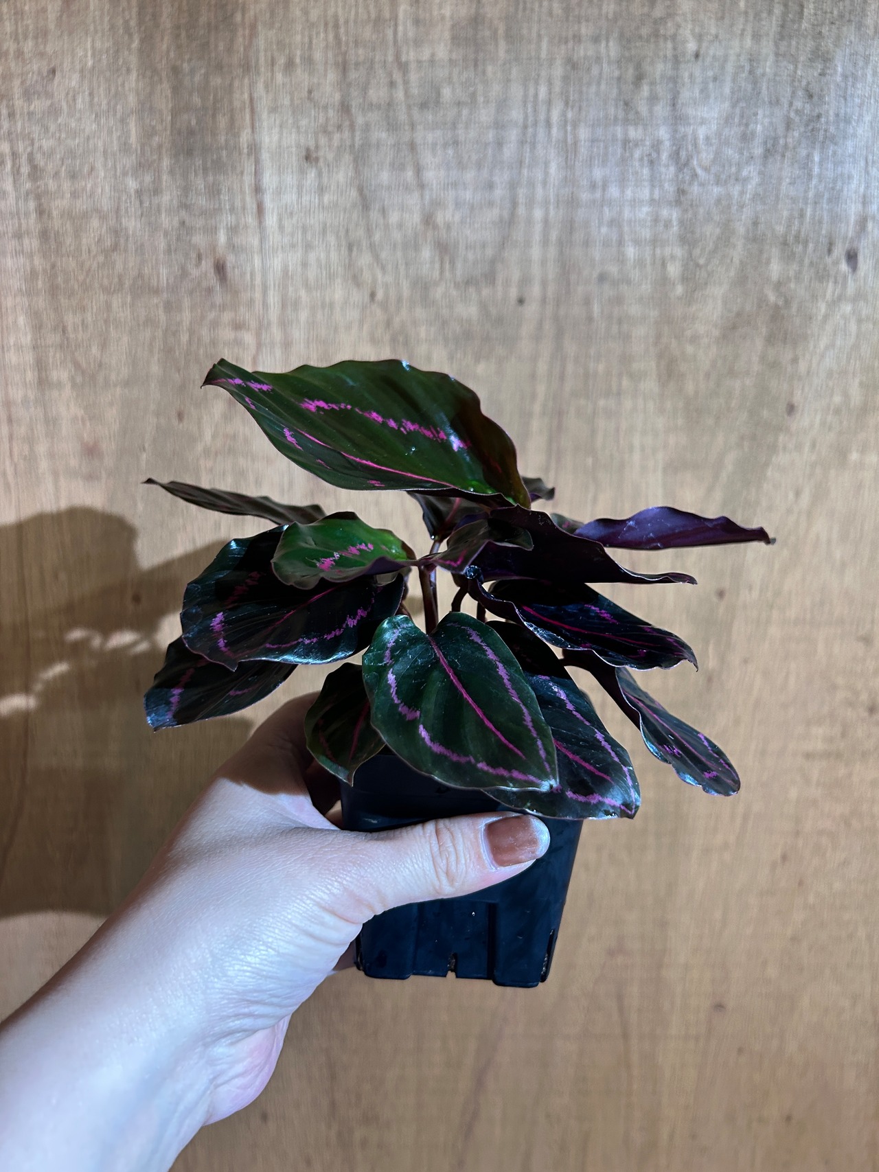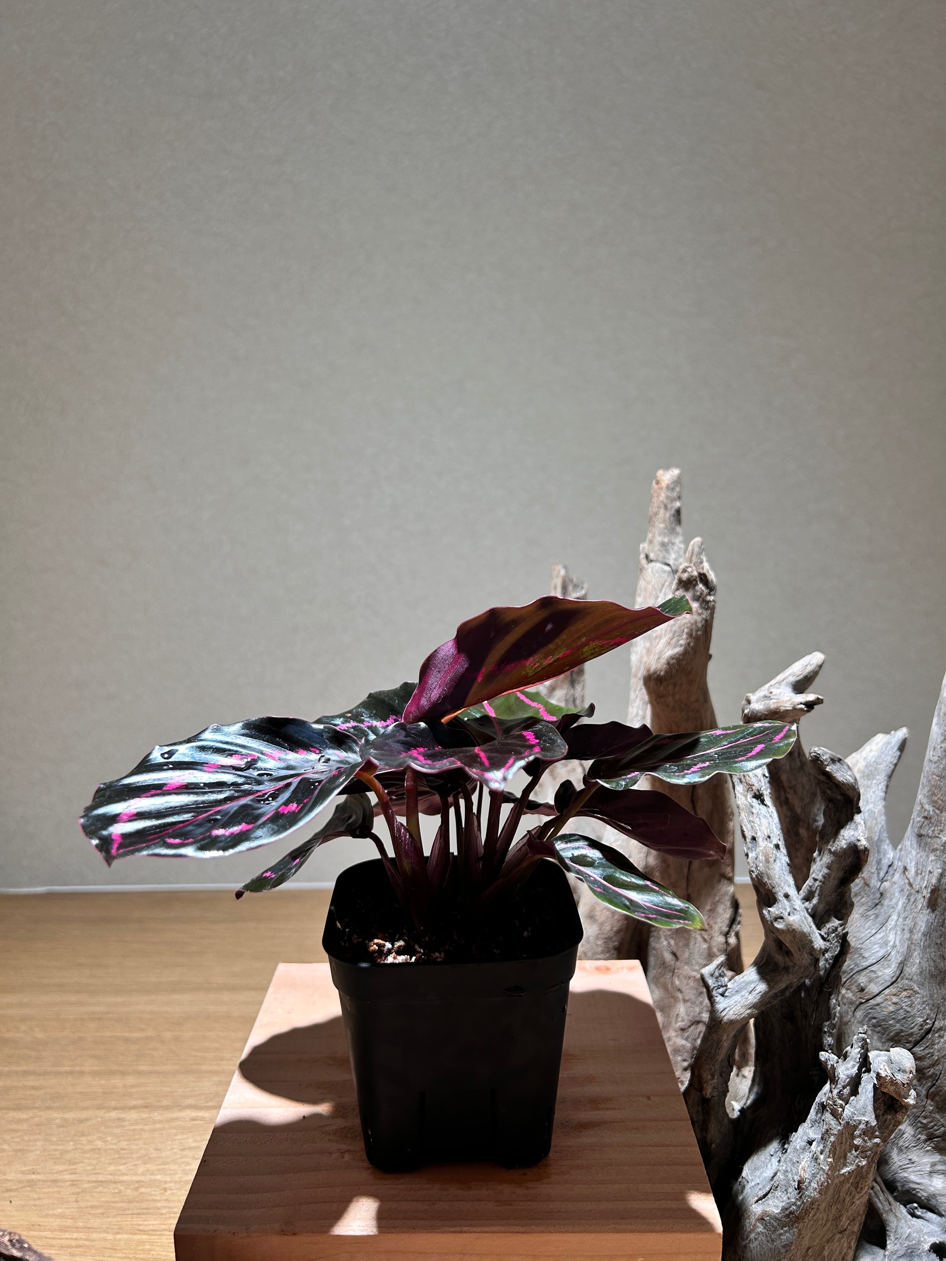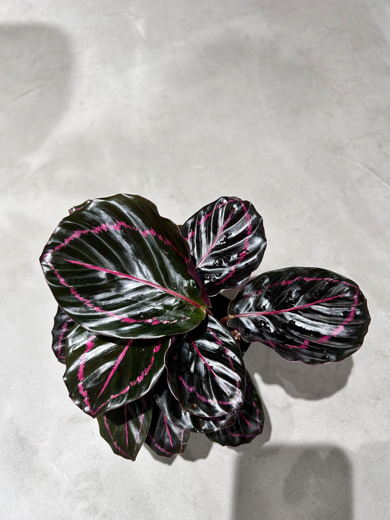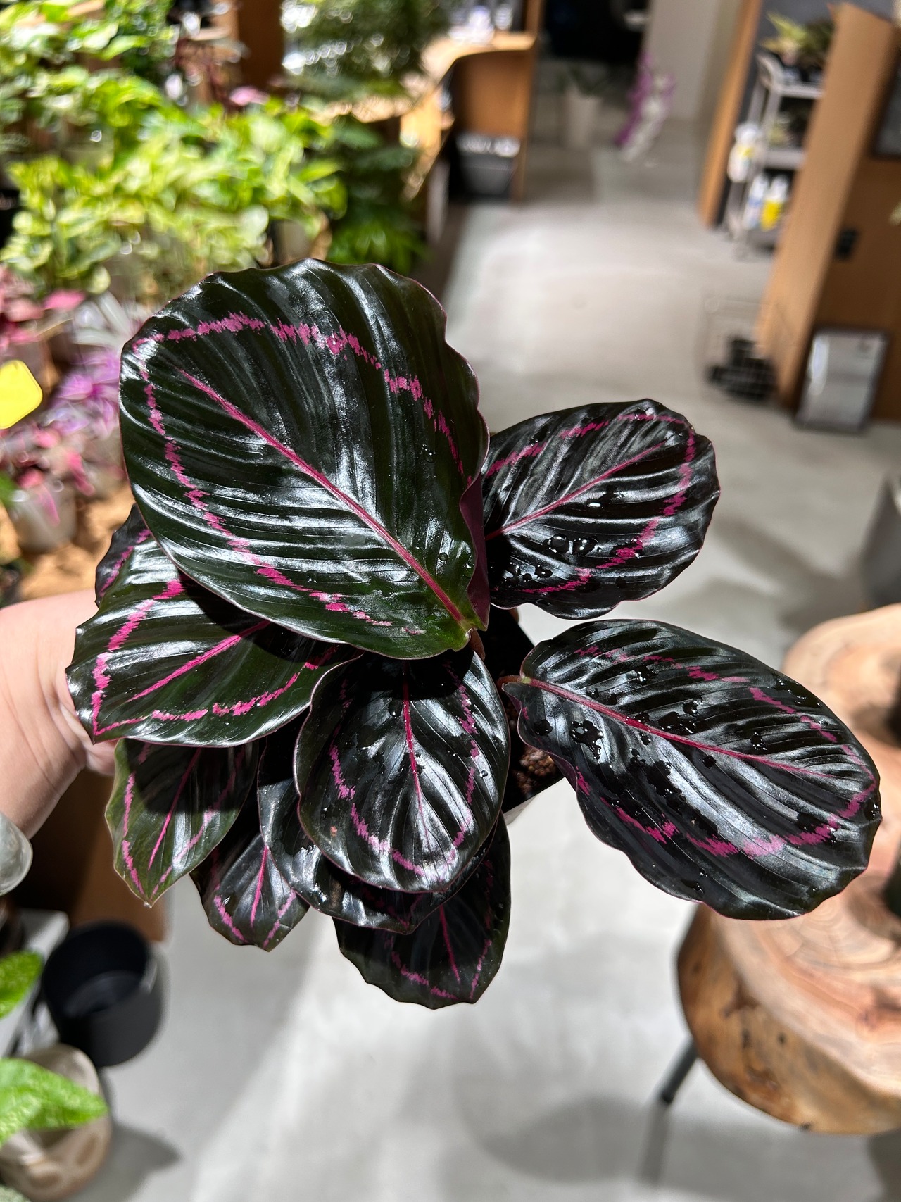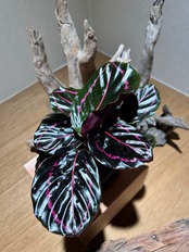 濃い緑色とビビットなピンクに葉色でとてもおしゃれな植物です。