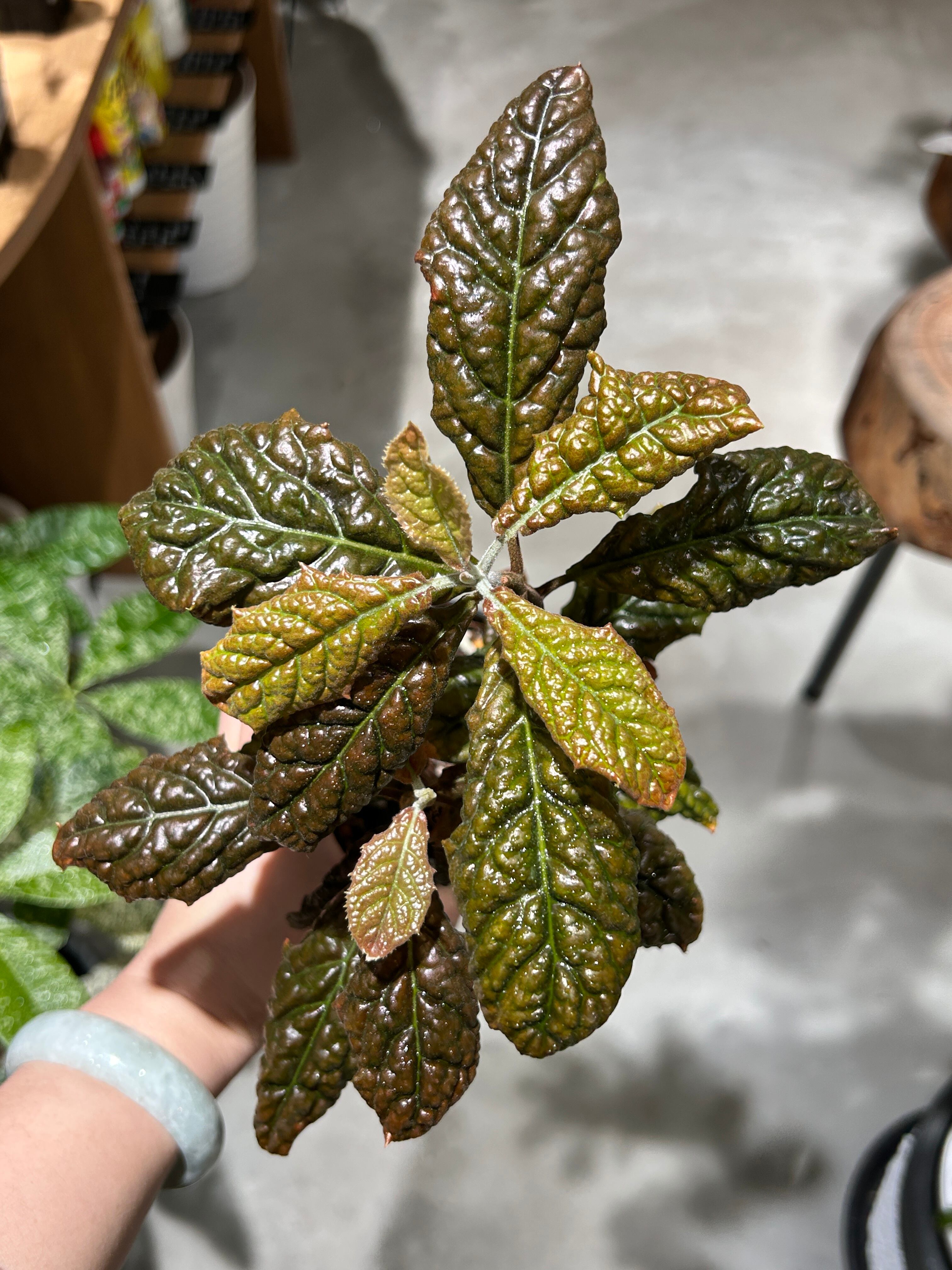 深みのあるブラウンの葉が特徴的で、落ち着いた印象を与える植物です。