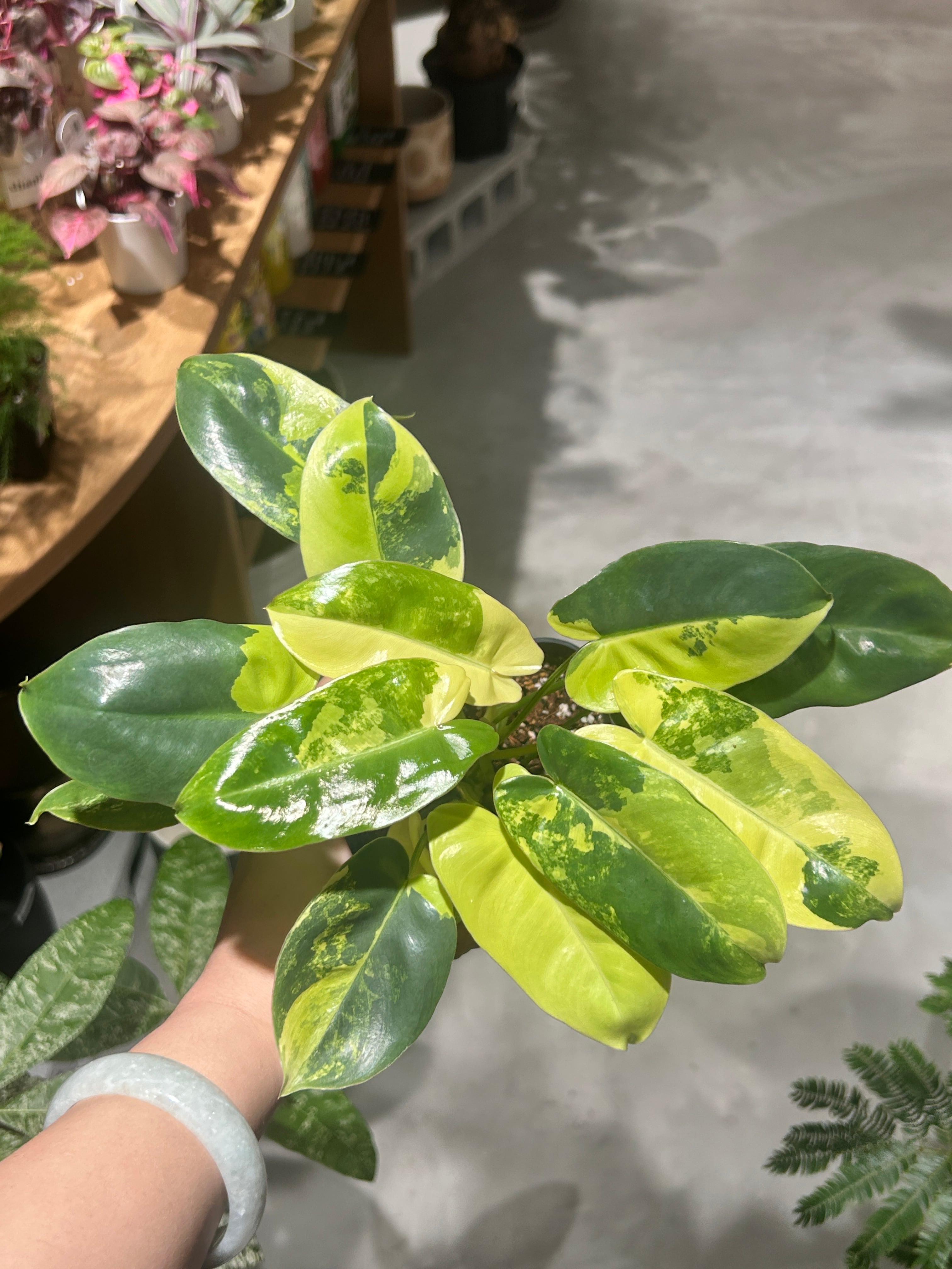美しい斑入りの葉が特徴で、インテリアに華やかさを添える優雅な植物です。