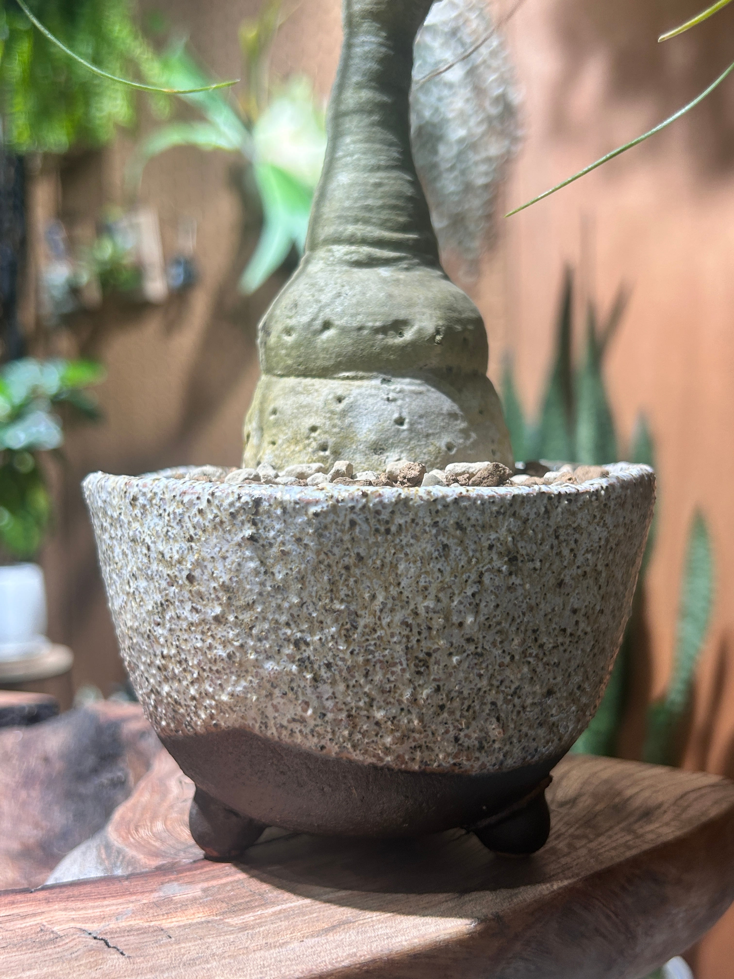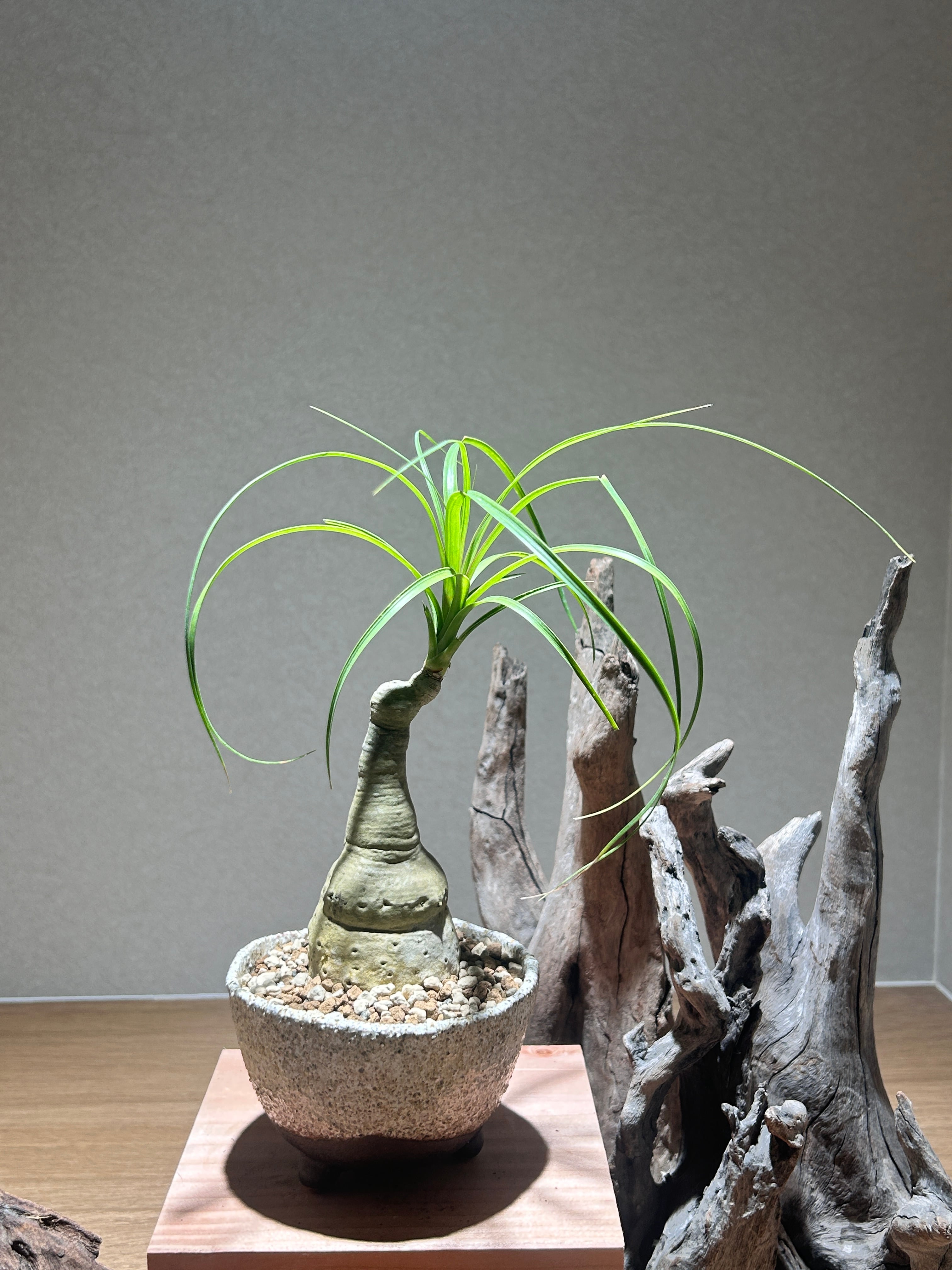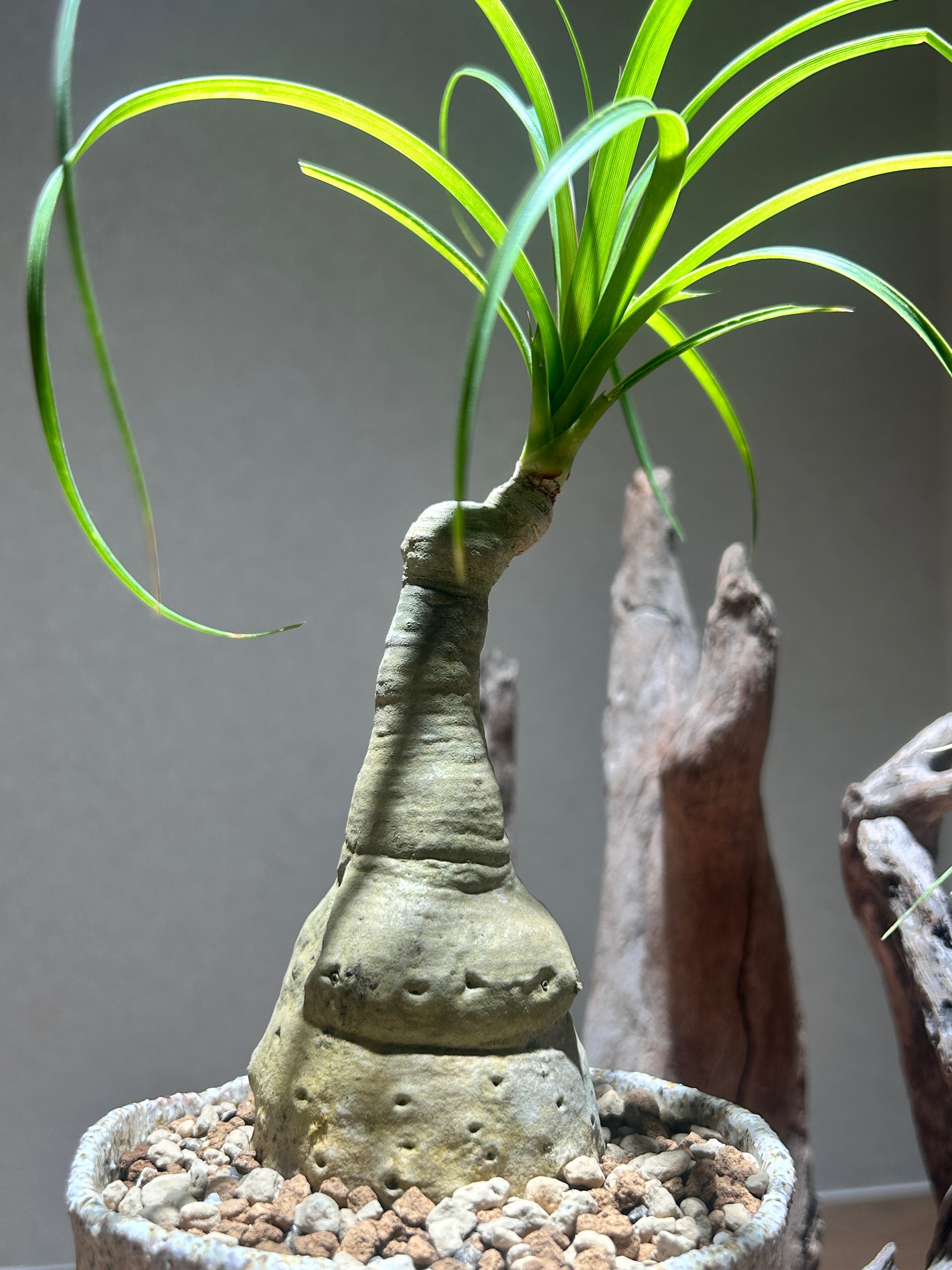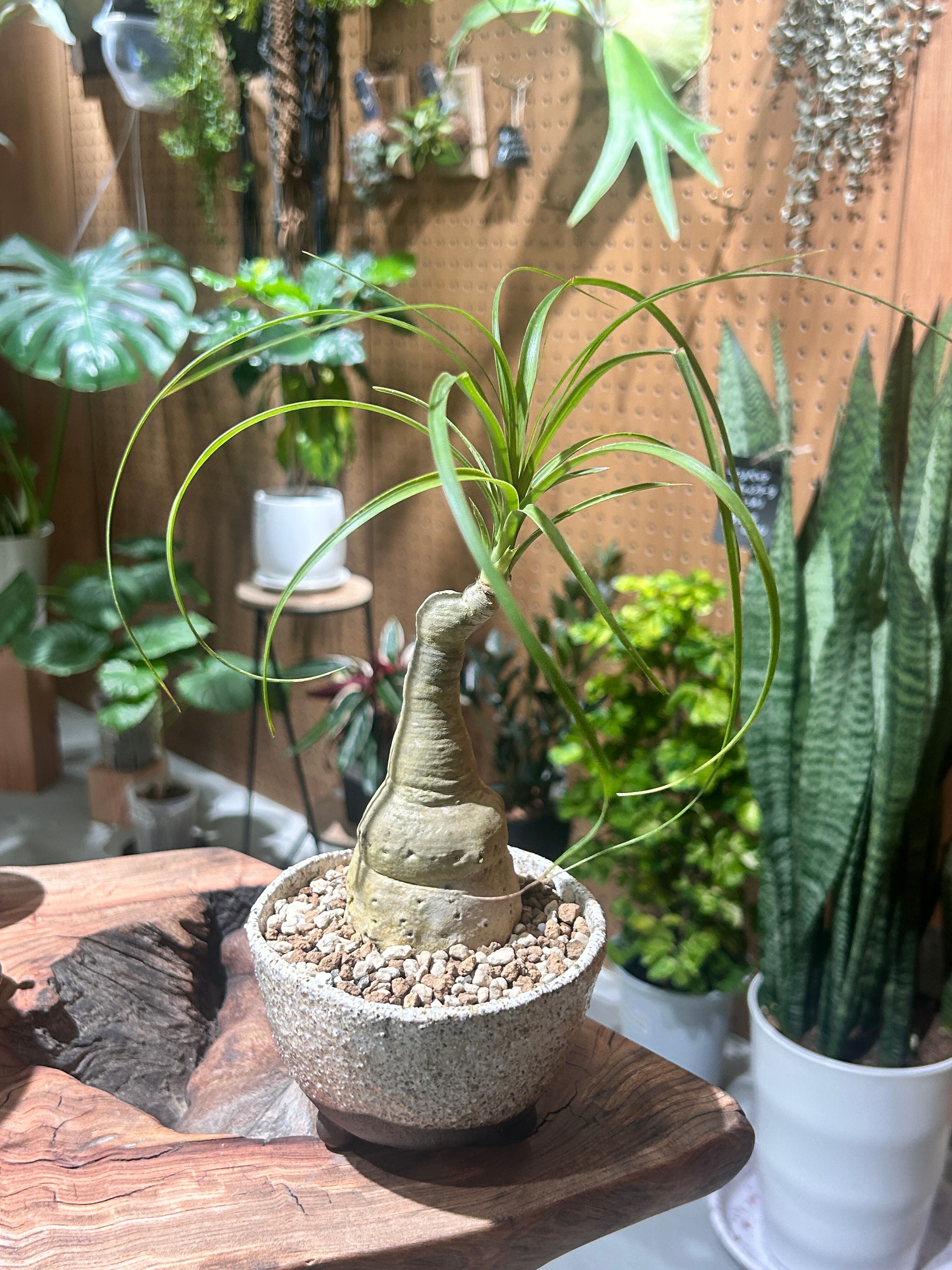 幹の根元が膨らんでトックリのように見える形が魅力の観葉植物。
