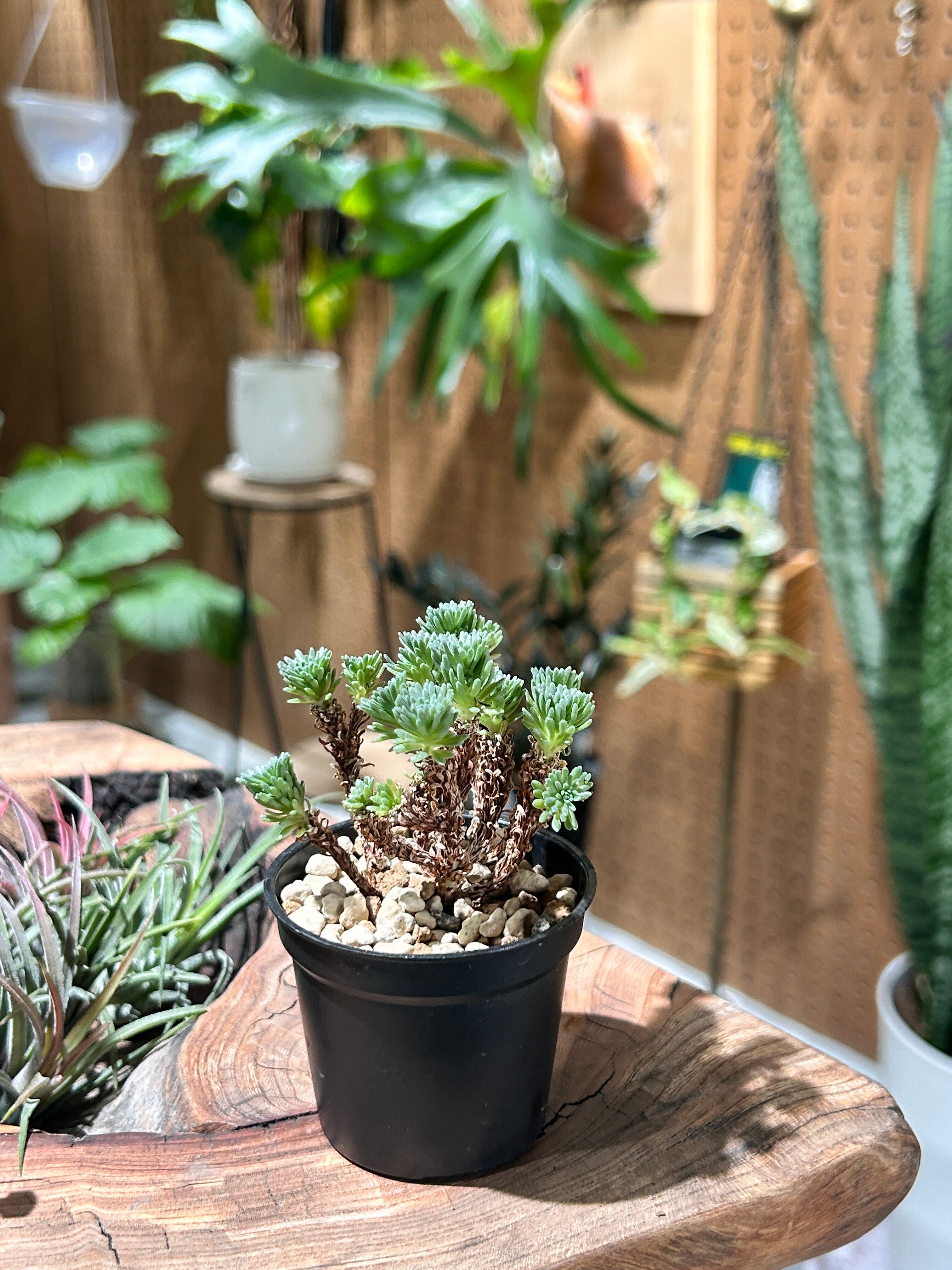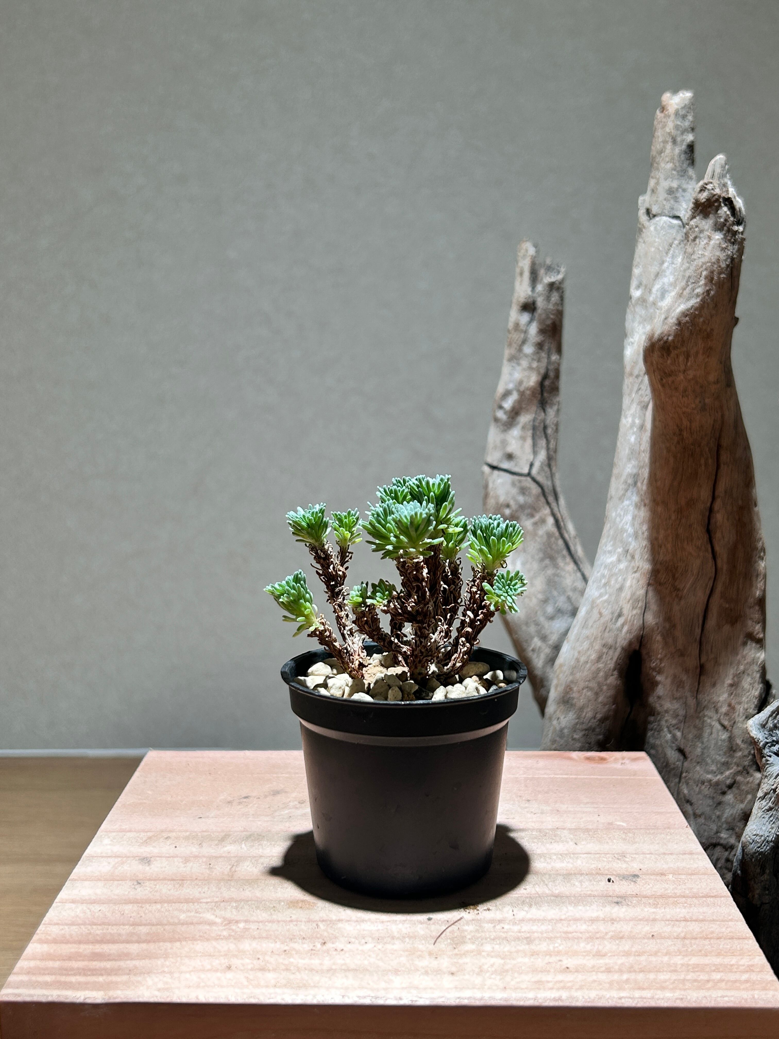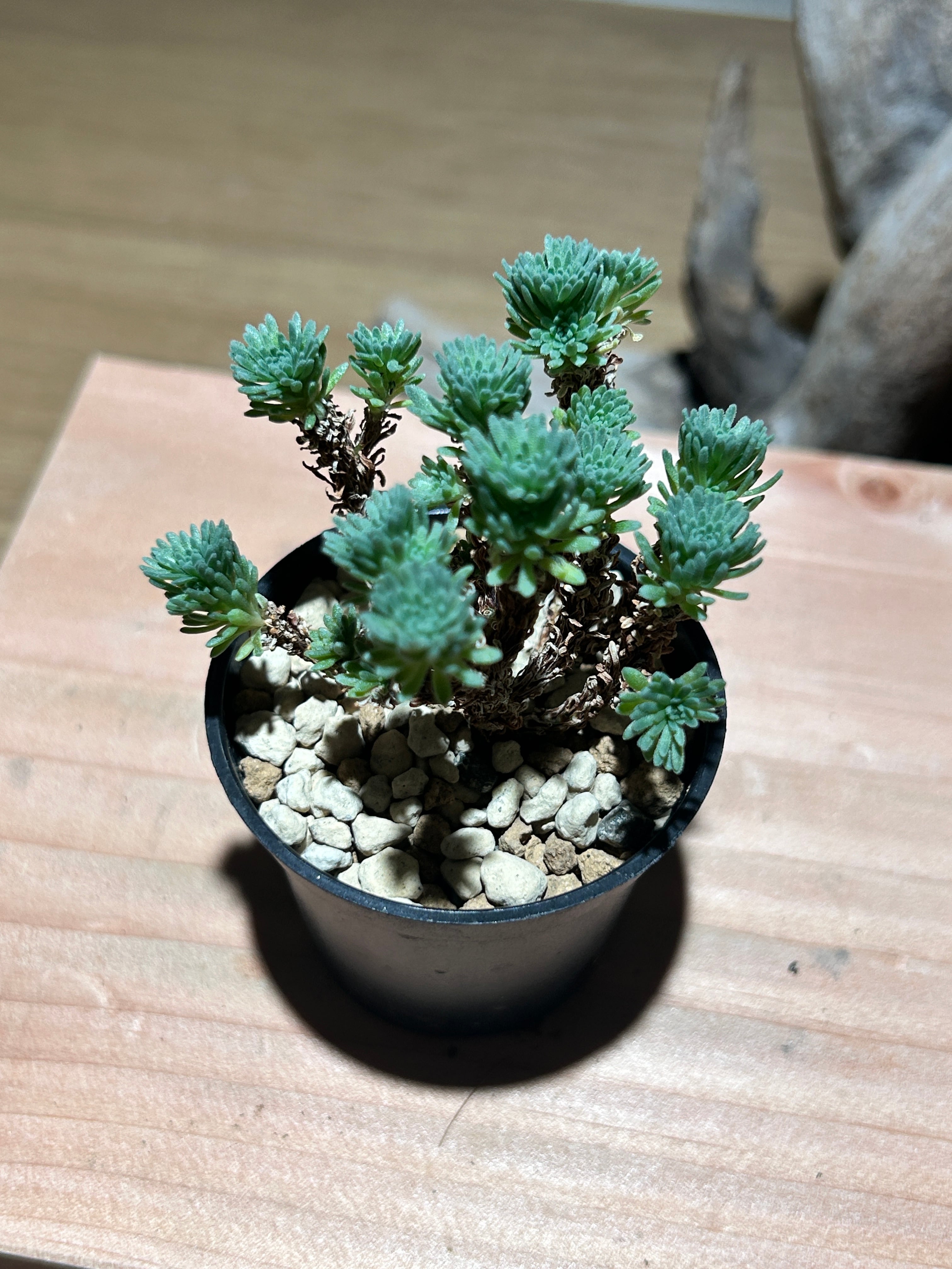 小さな葉が密に集まり、小松のような形状をしており、愛らしい見た目が特徴的です。