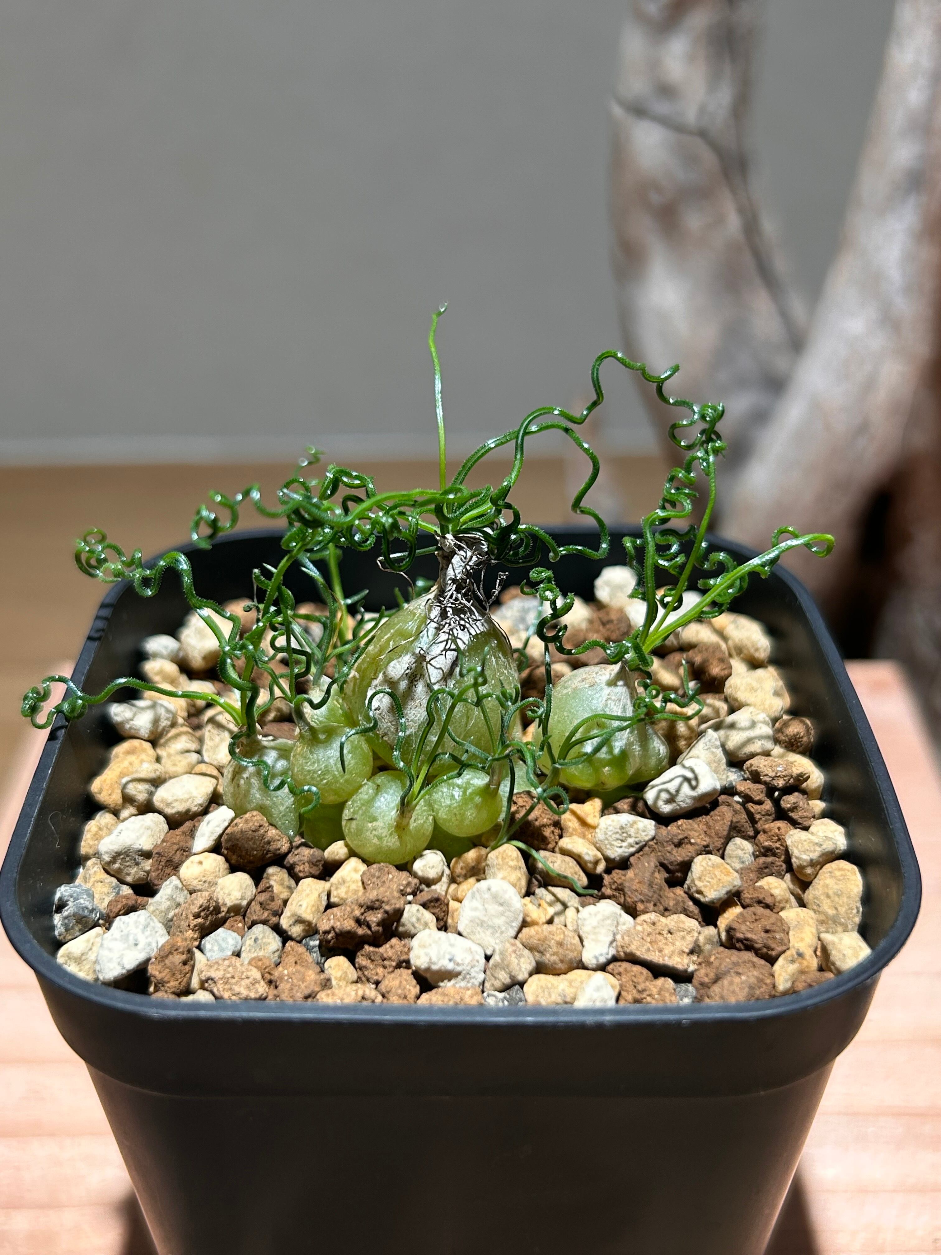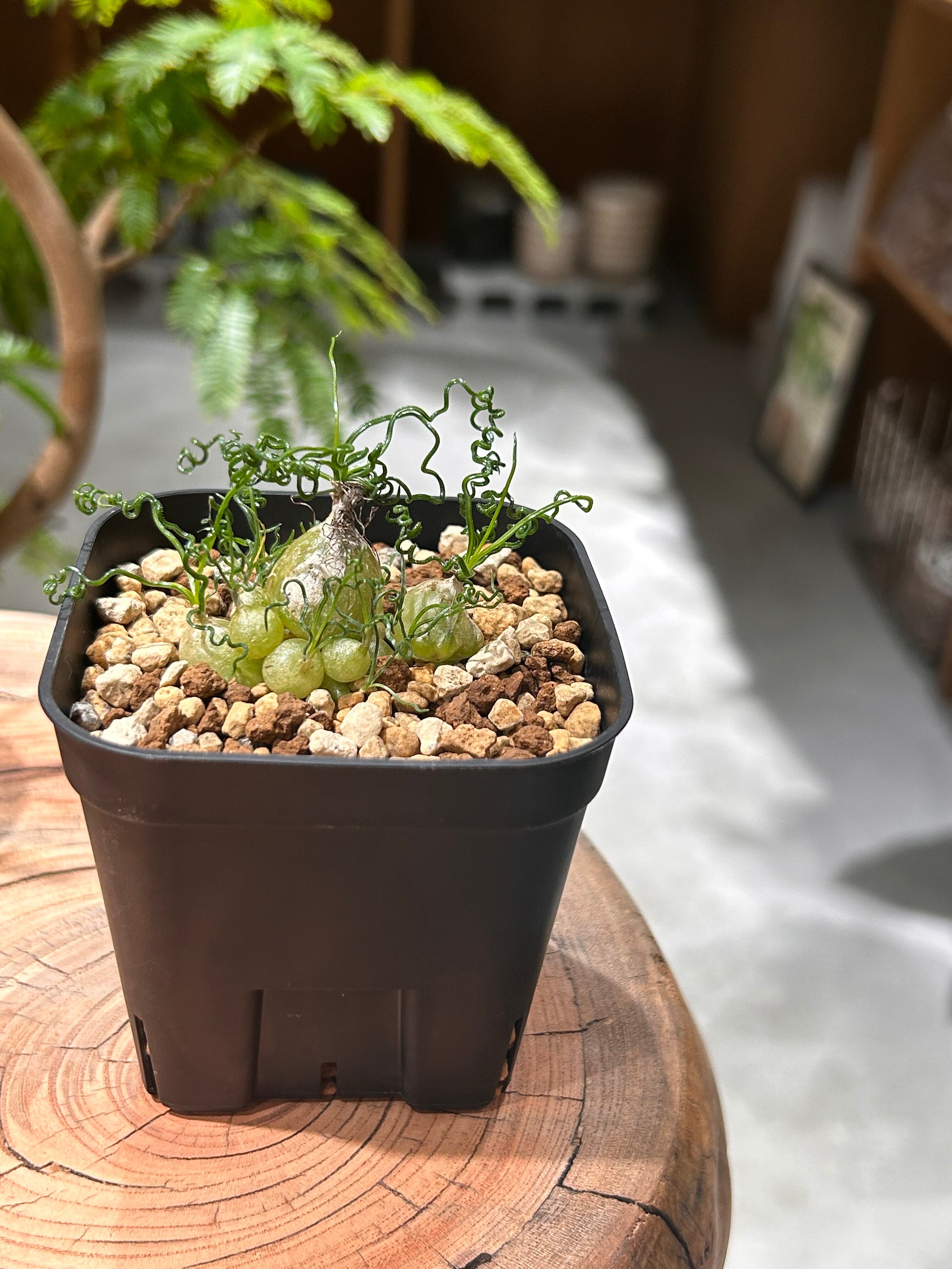 うねうねと伸びる葉が特徴的な小型な球根植物。