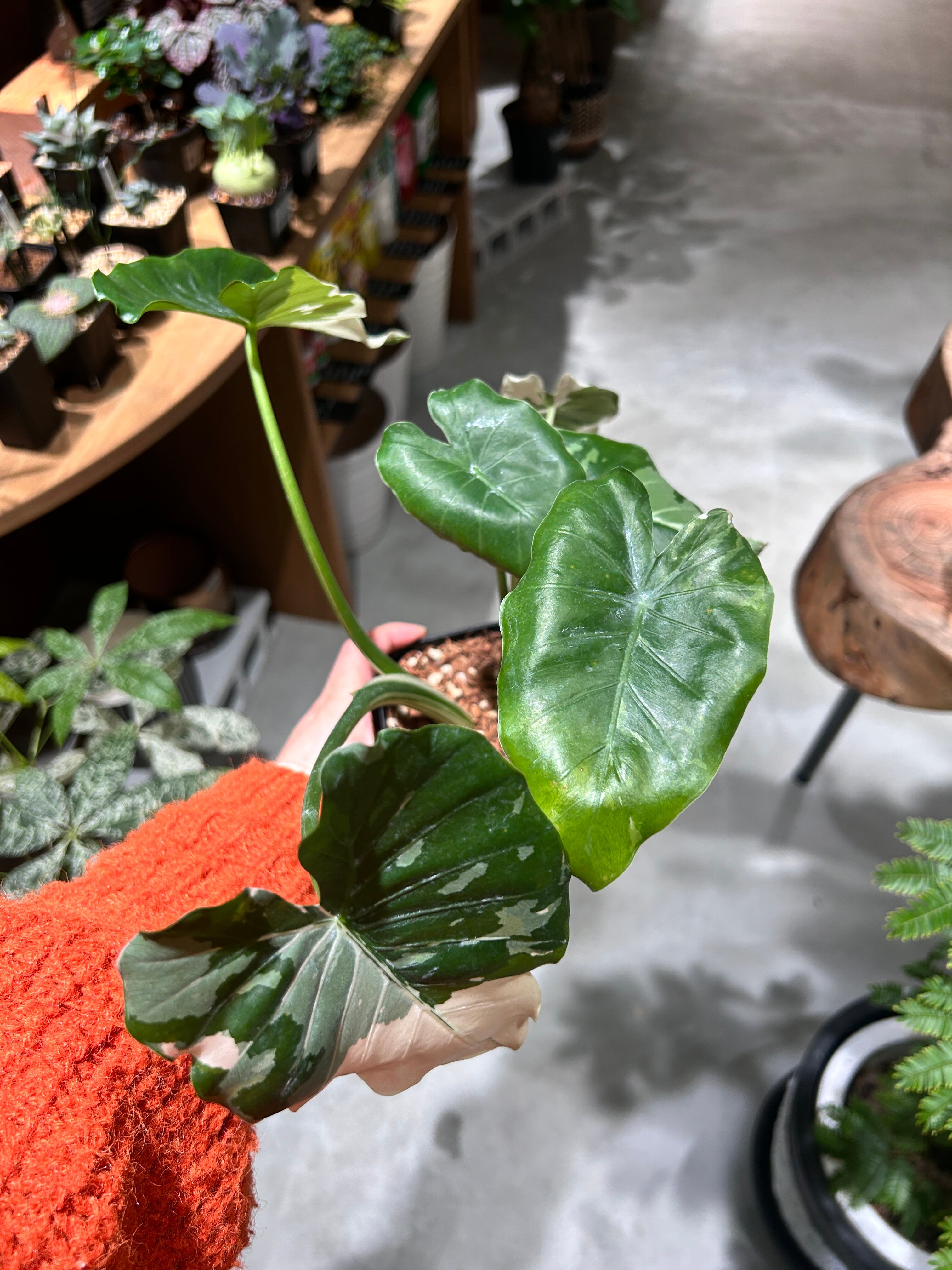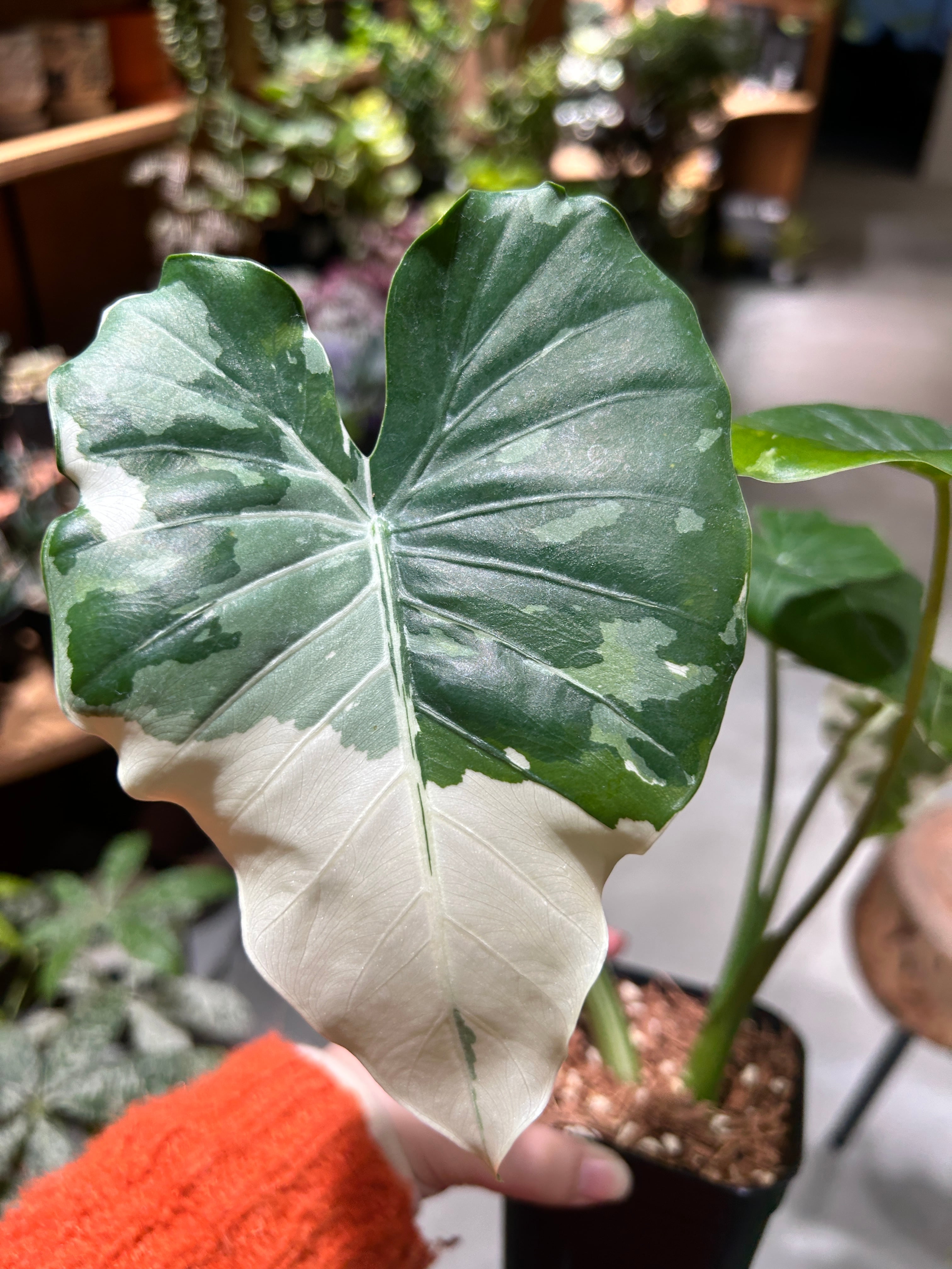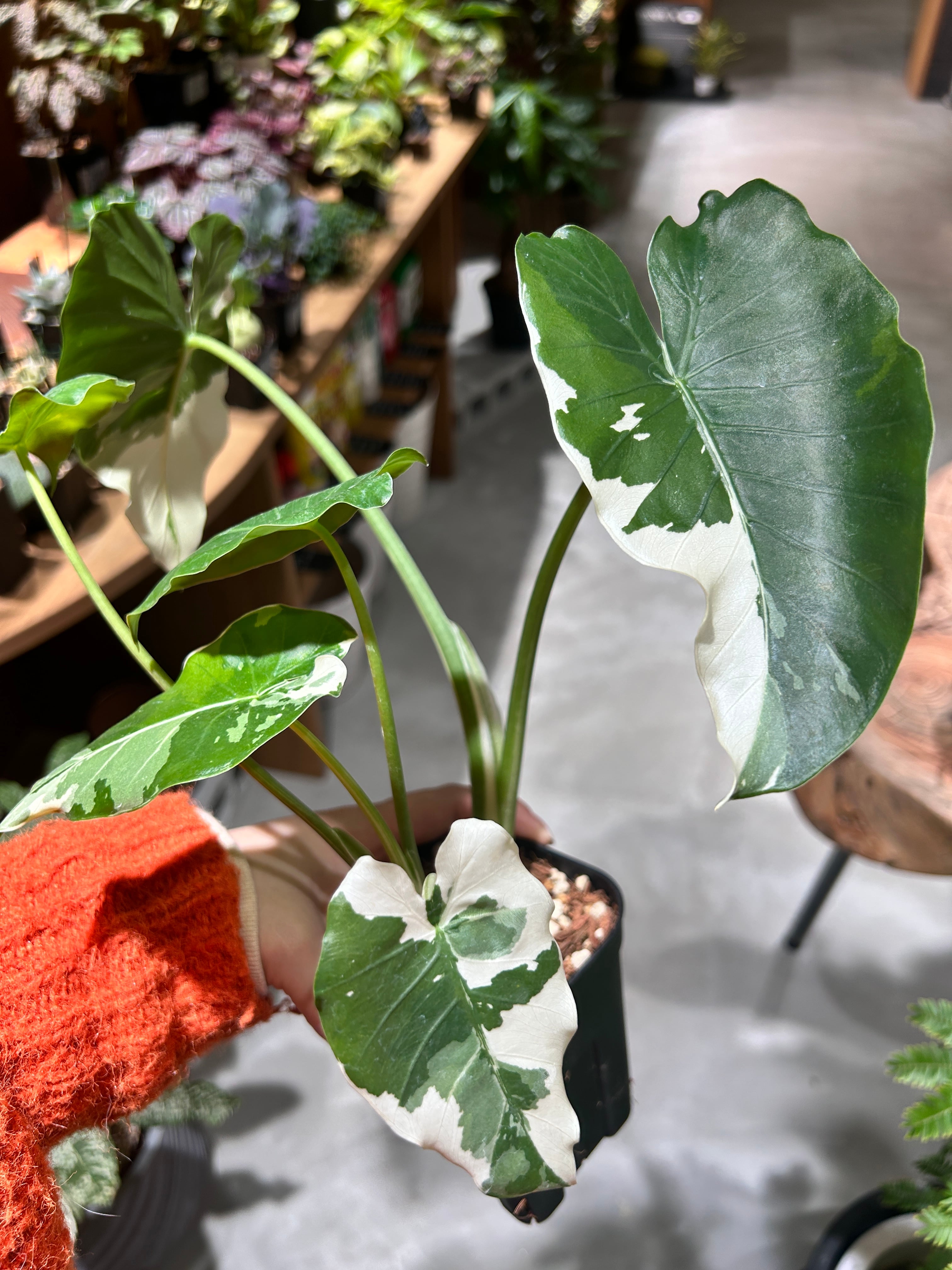 白〜クリーム色の美しい斑が入るのが特徴的な観葉植物です。