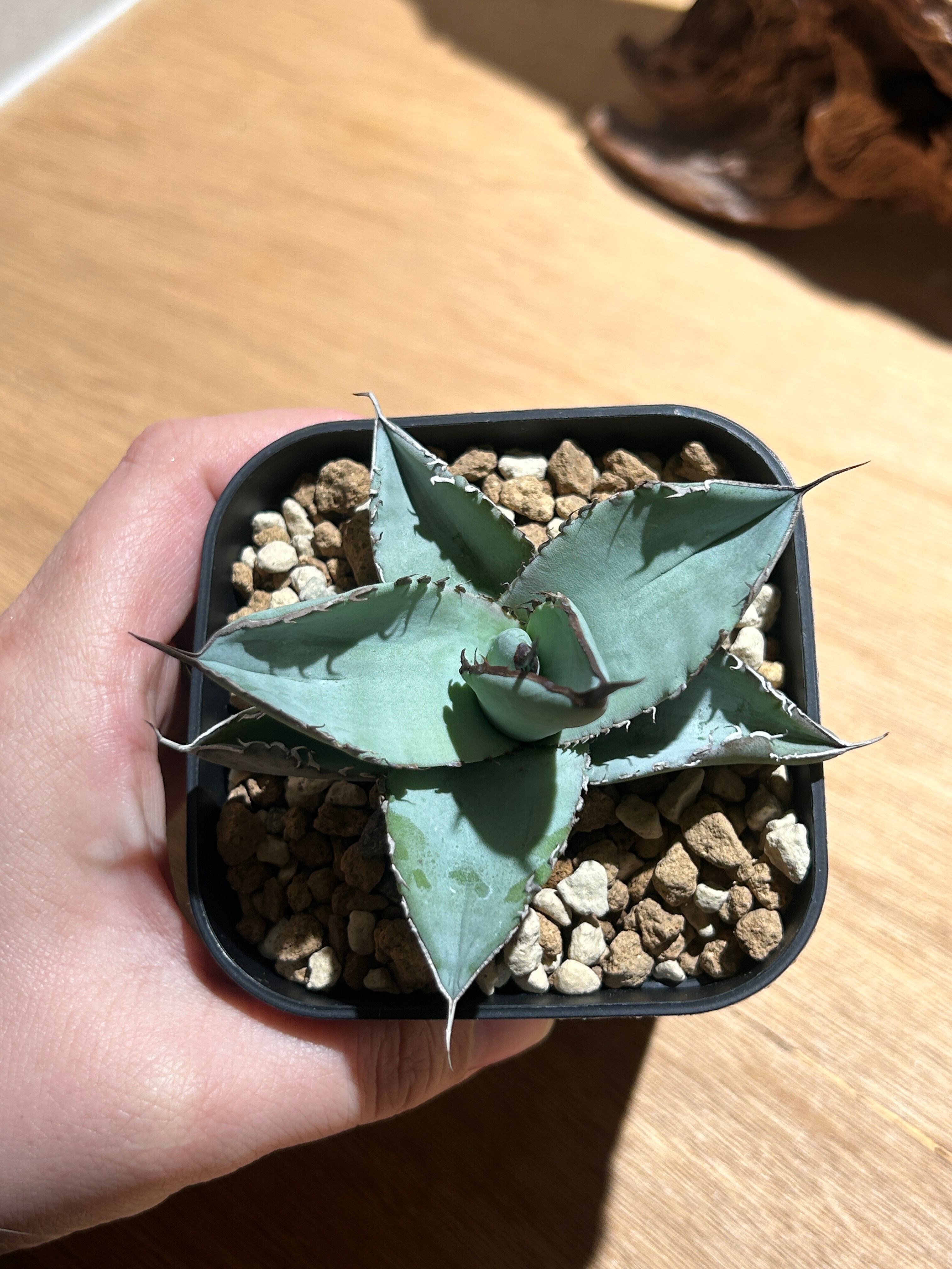 白みがかった淡いブルーグリーンの葉色が美しい、アガベ・ホワイトアイス。
