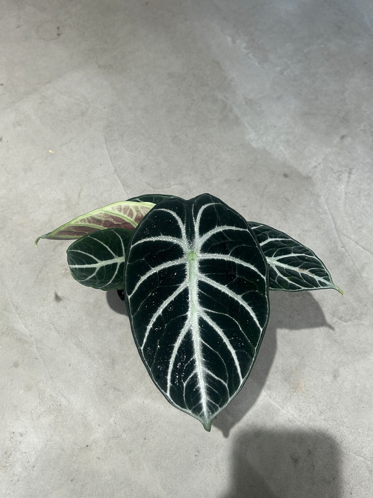ベルベットのような質感の黒緑の葉に、白い葉脈が鮮やかに浮かぶ人気の観葉植物です。