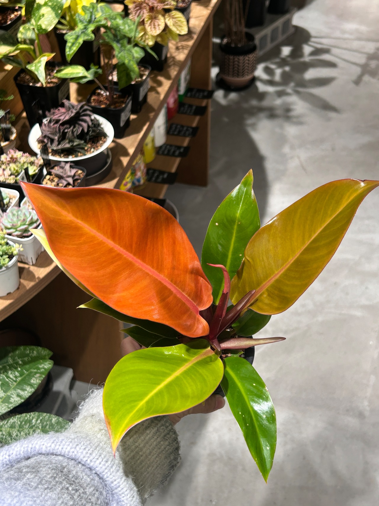 緑色へと変化する美しい色合いが特徴的な観葉植物です。