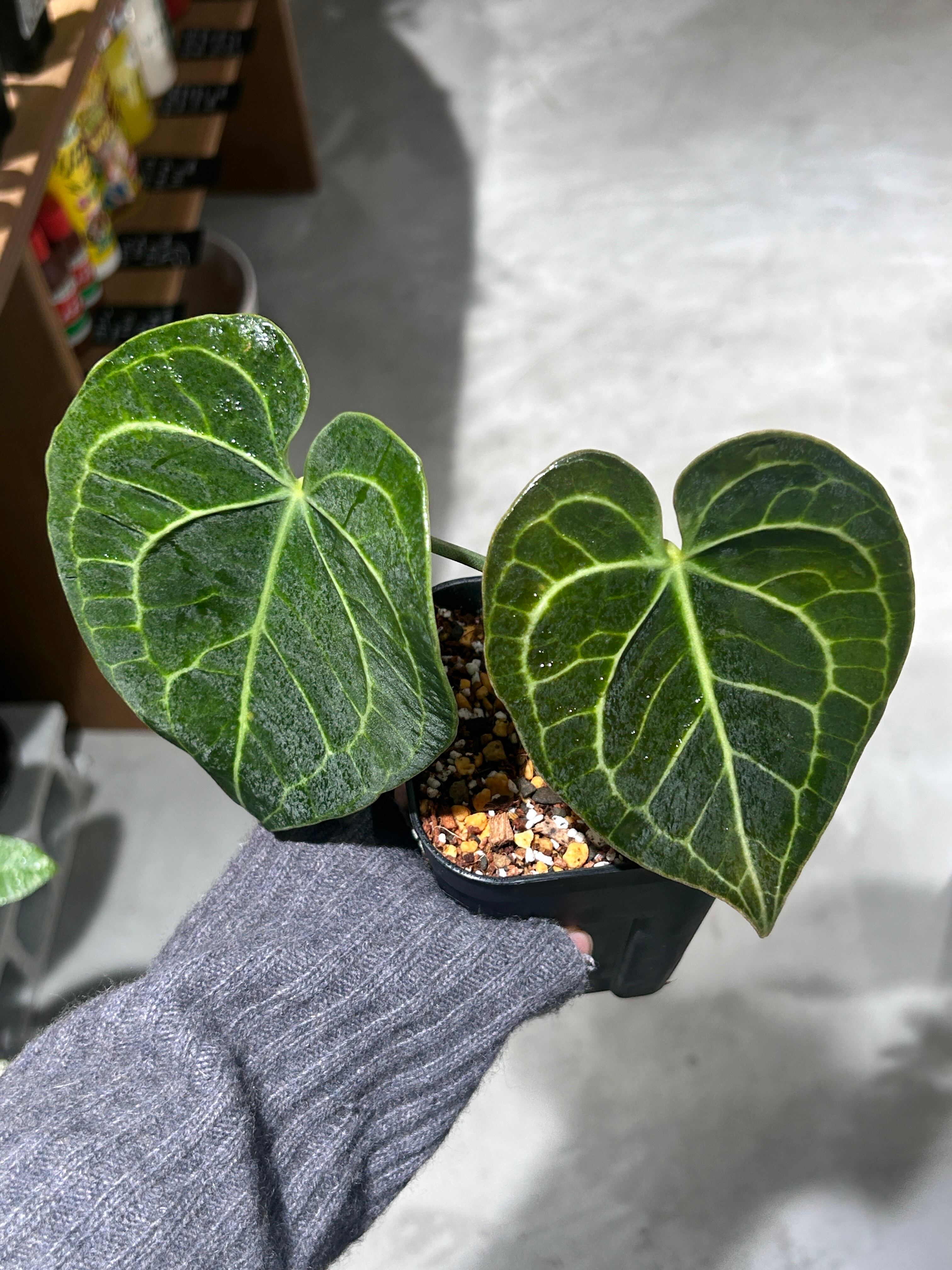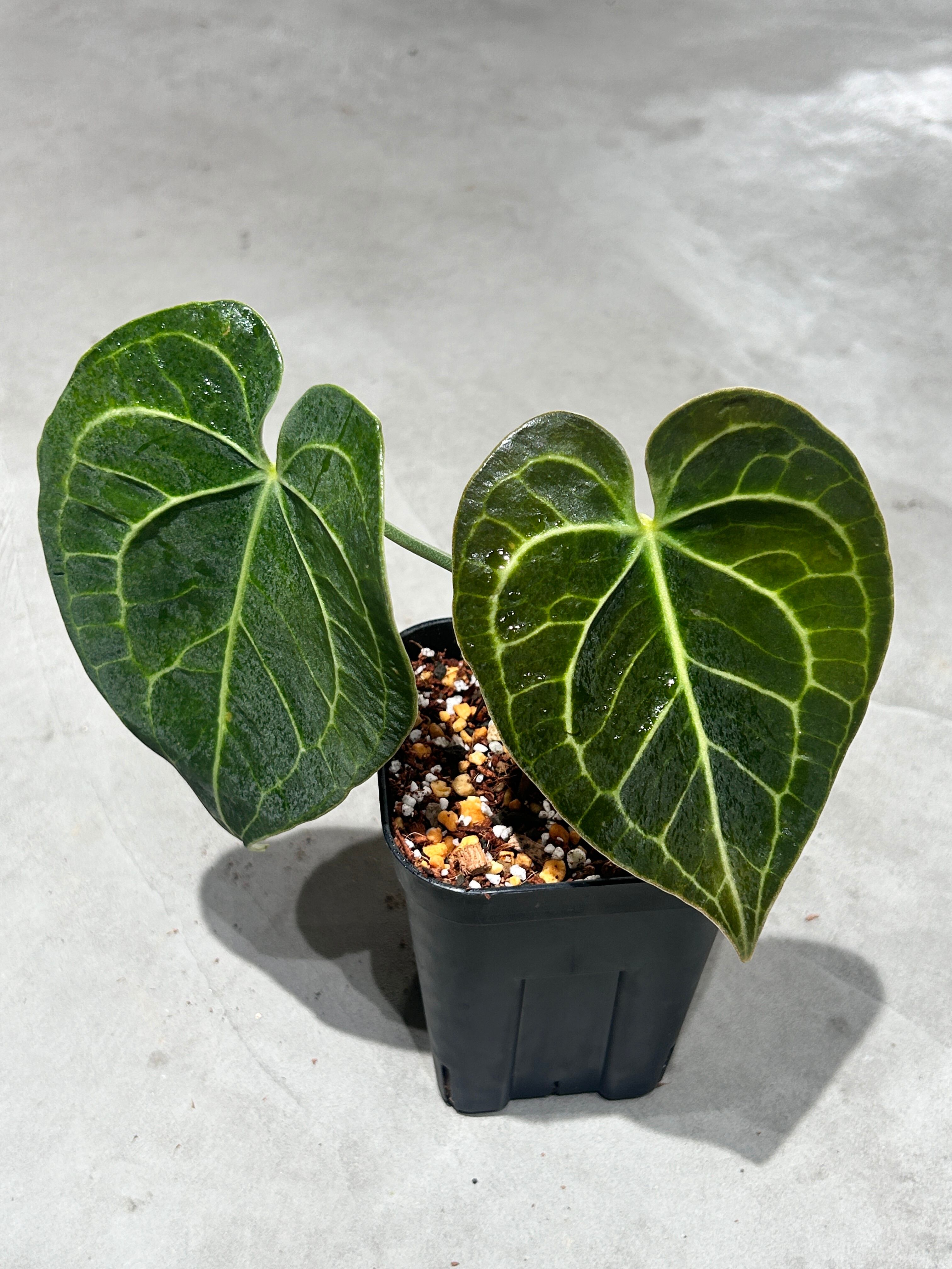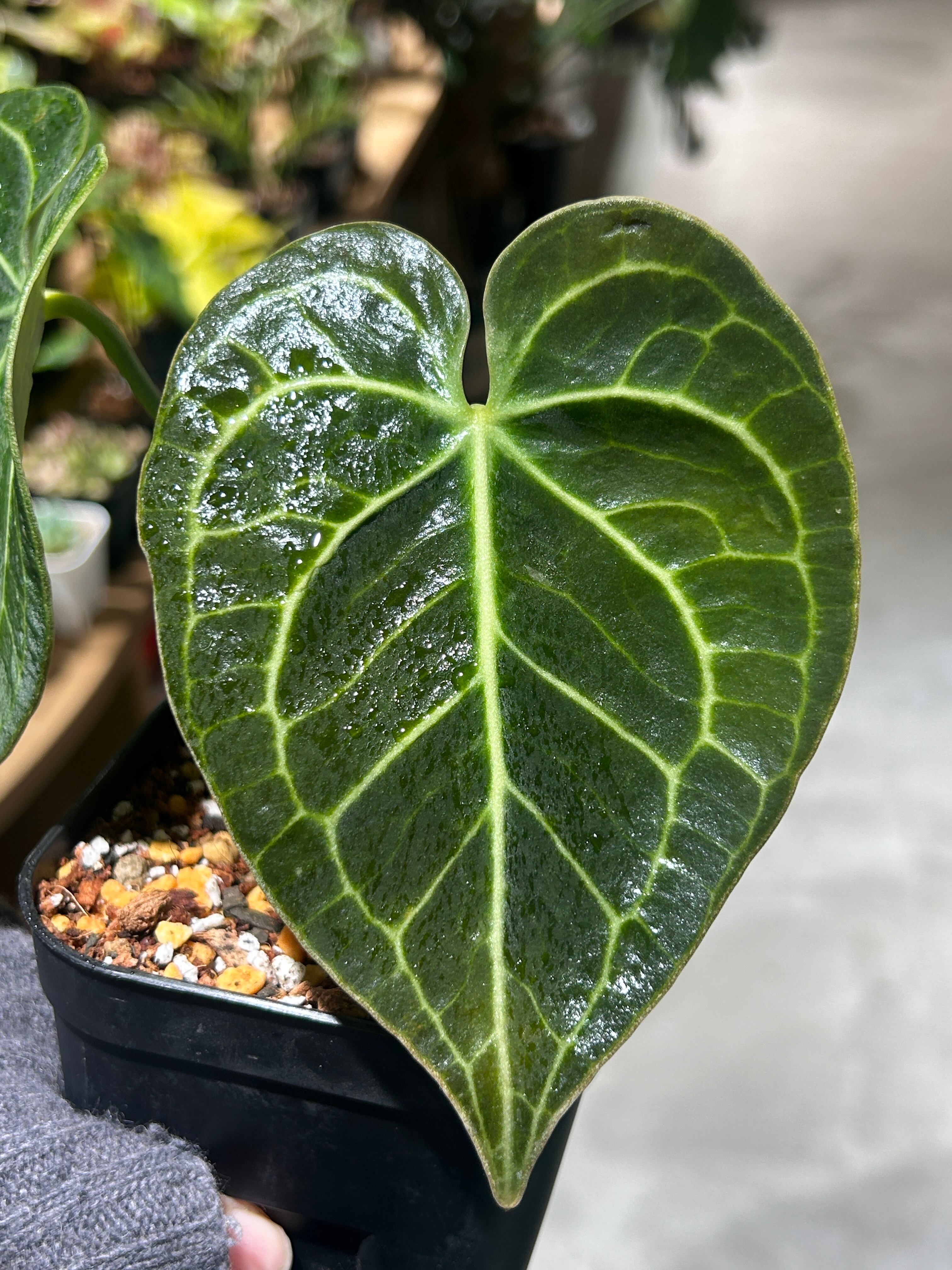 ハート型の大きな葉を持ち、白い葉脈が特徴的です。