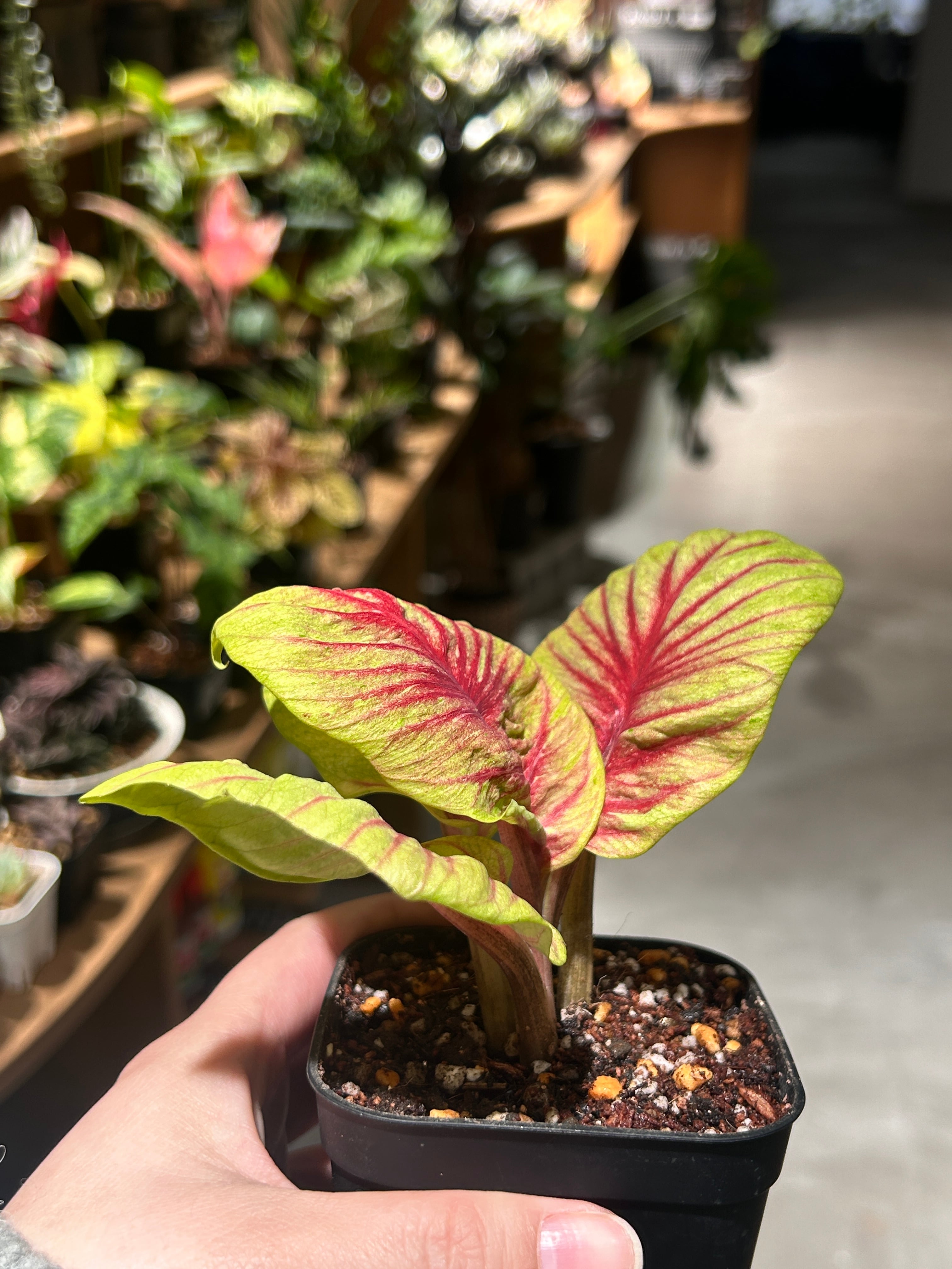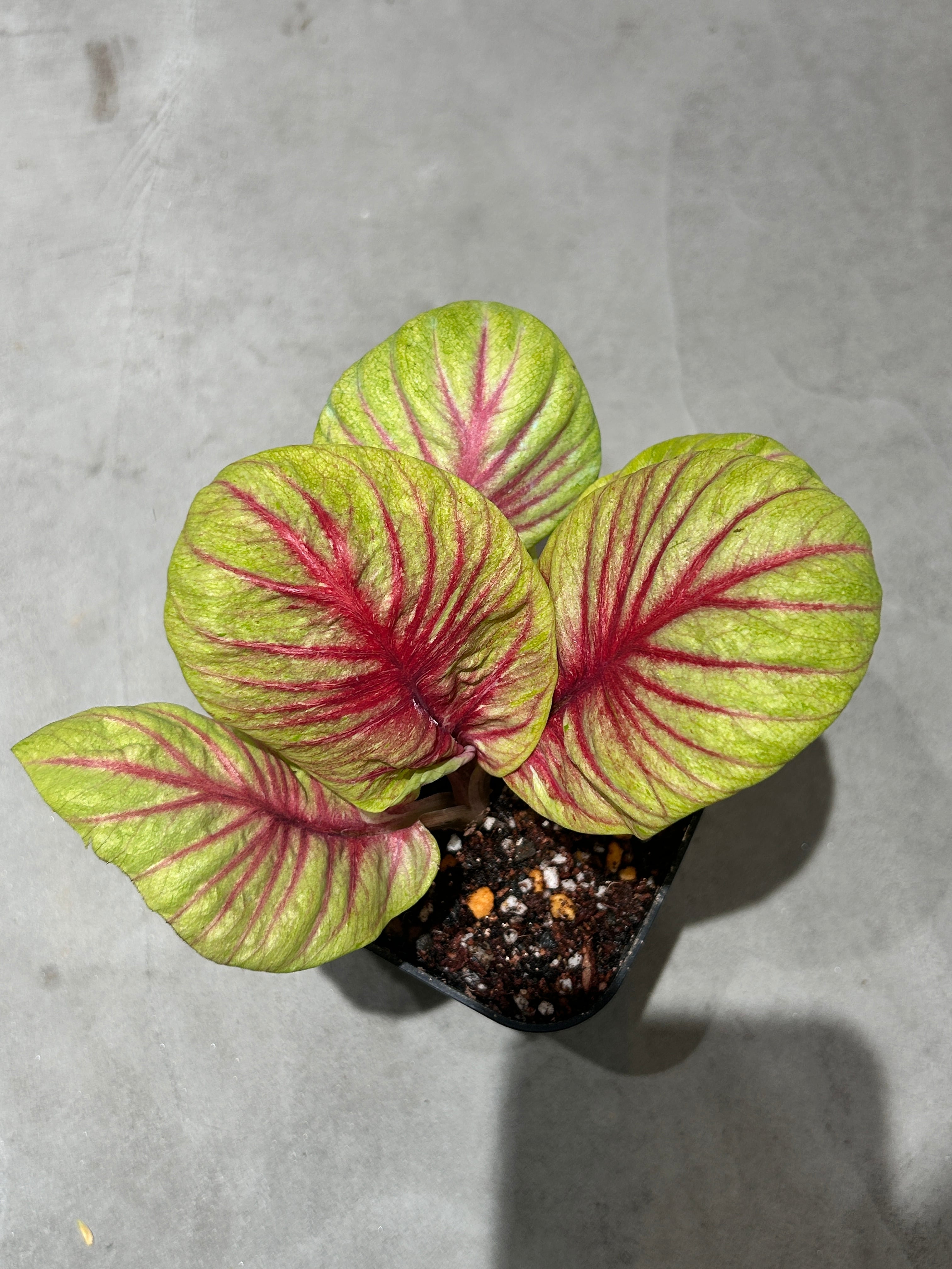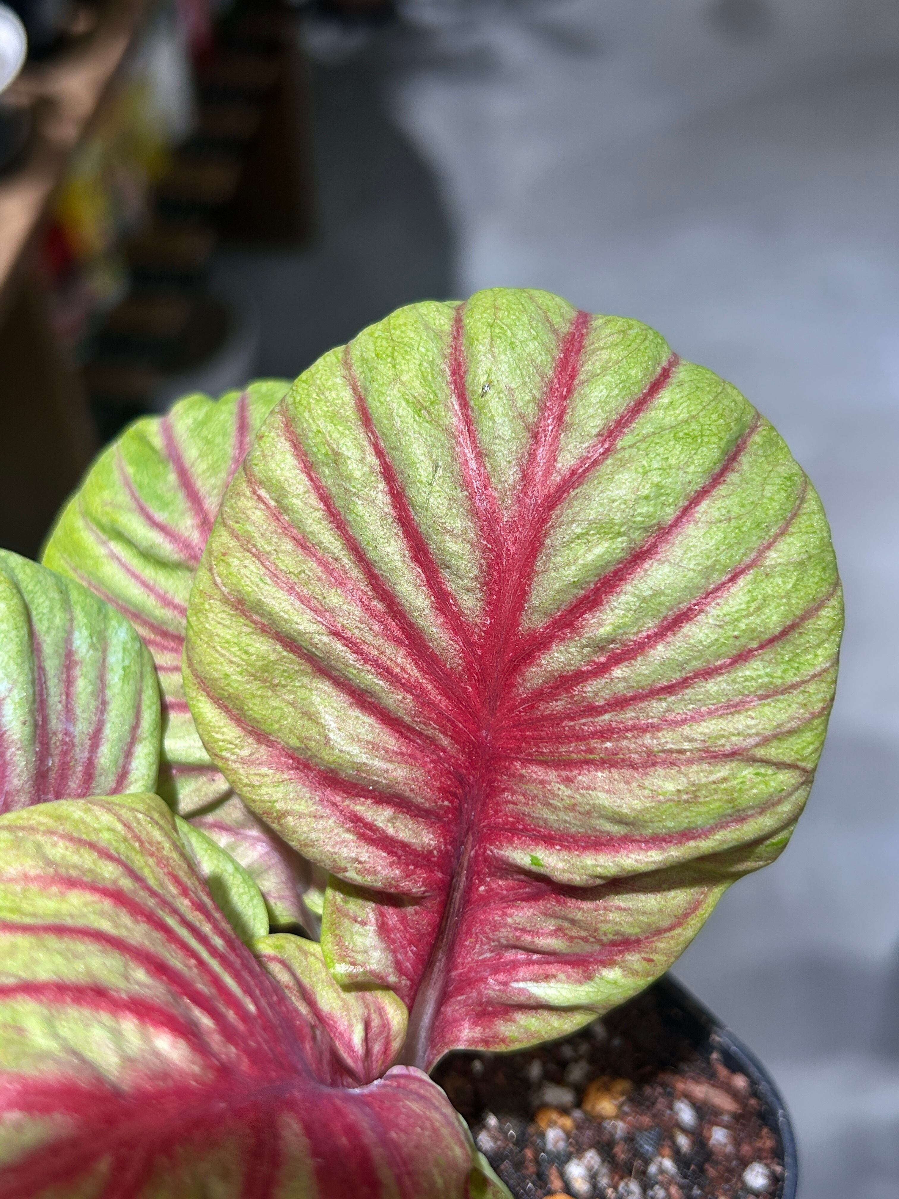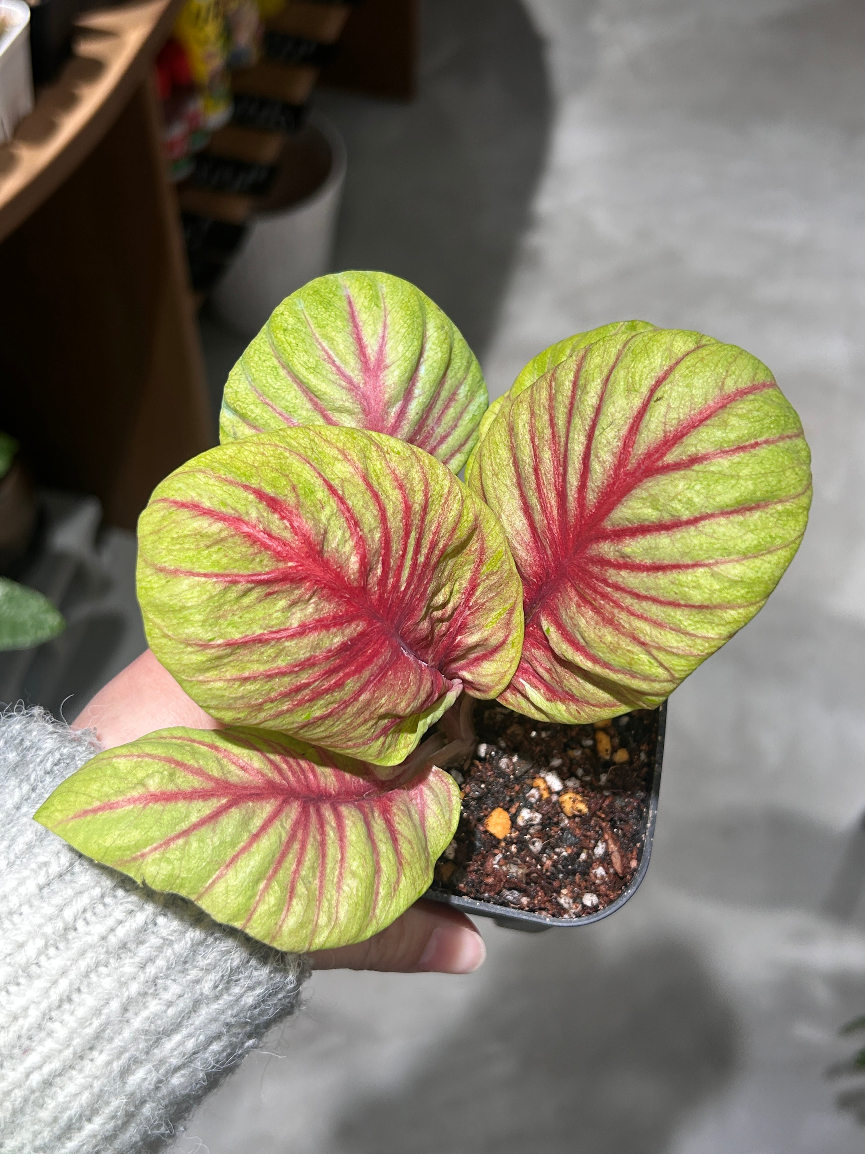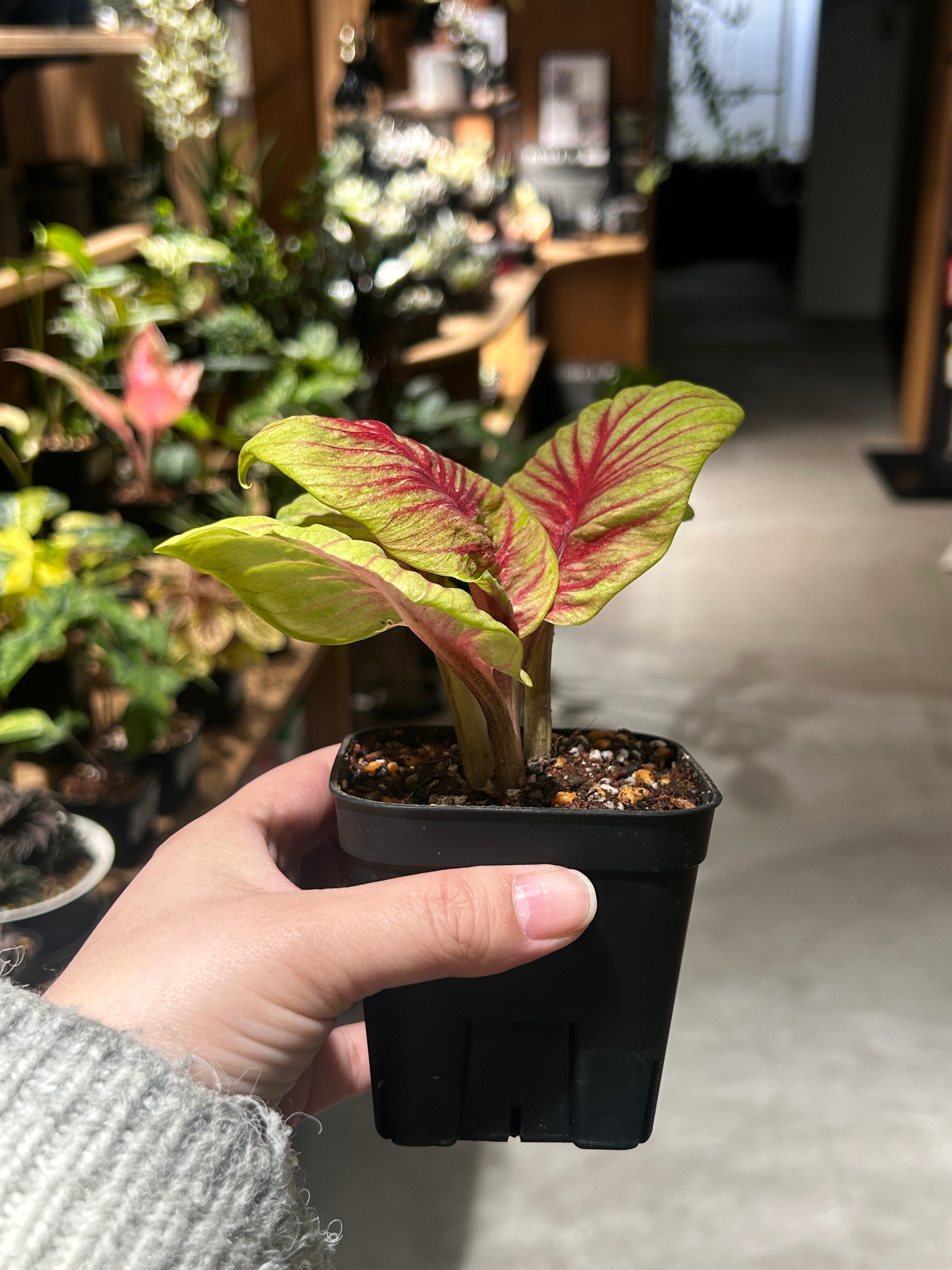 緑色の葉に鮮やかなピンクや赤色の斑点や模様が入るのが特徴です。