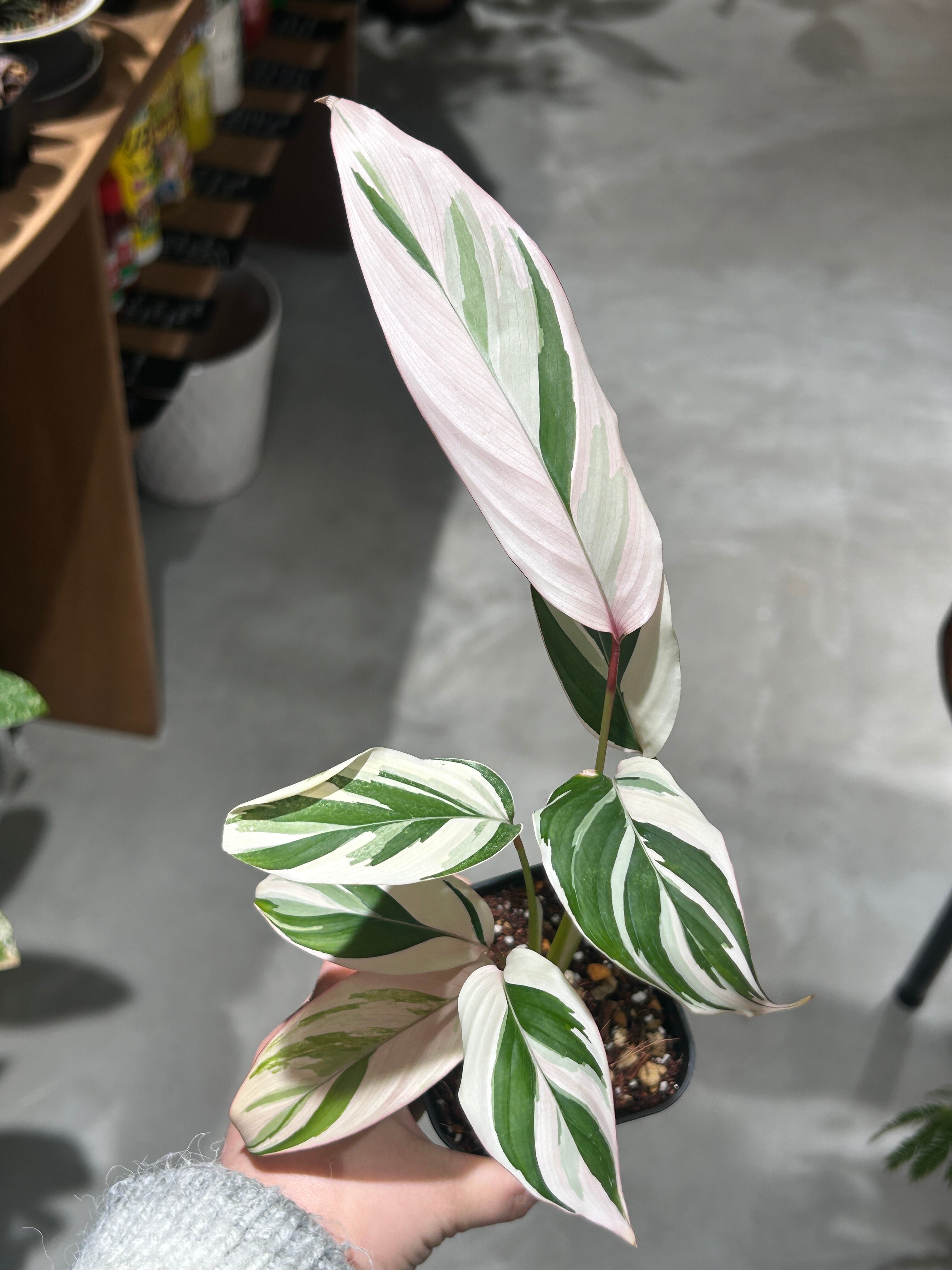 緑と薄いピンクの葉に葉裏もピンクで美しい。