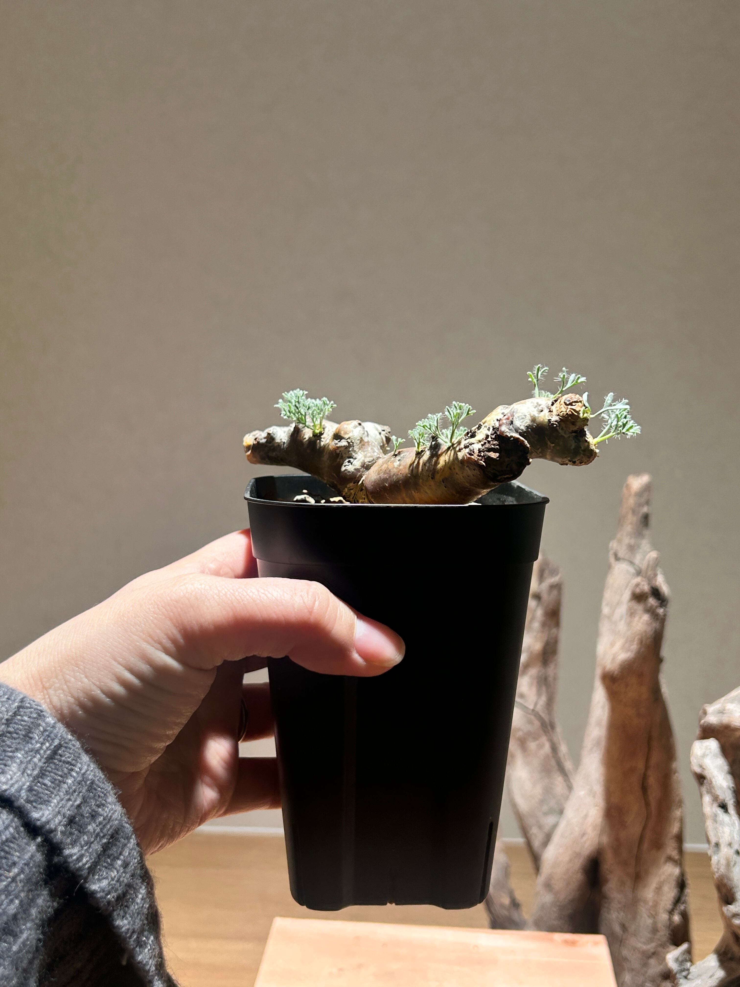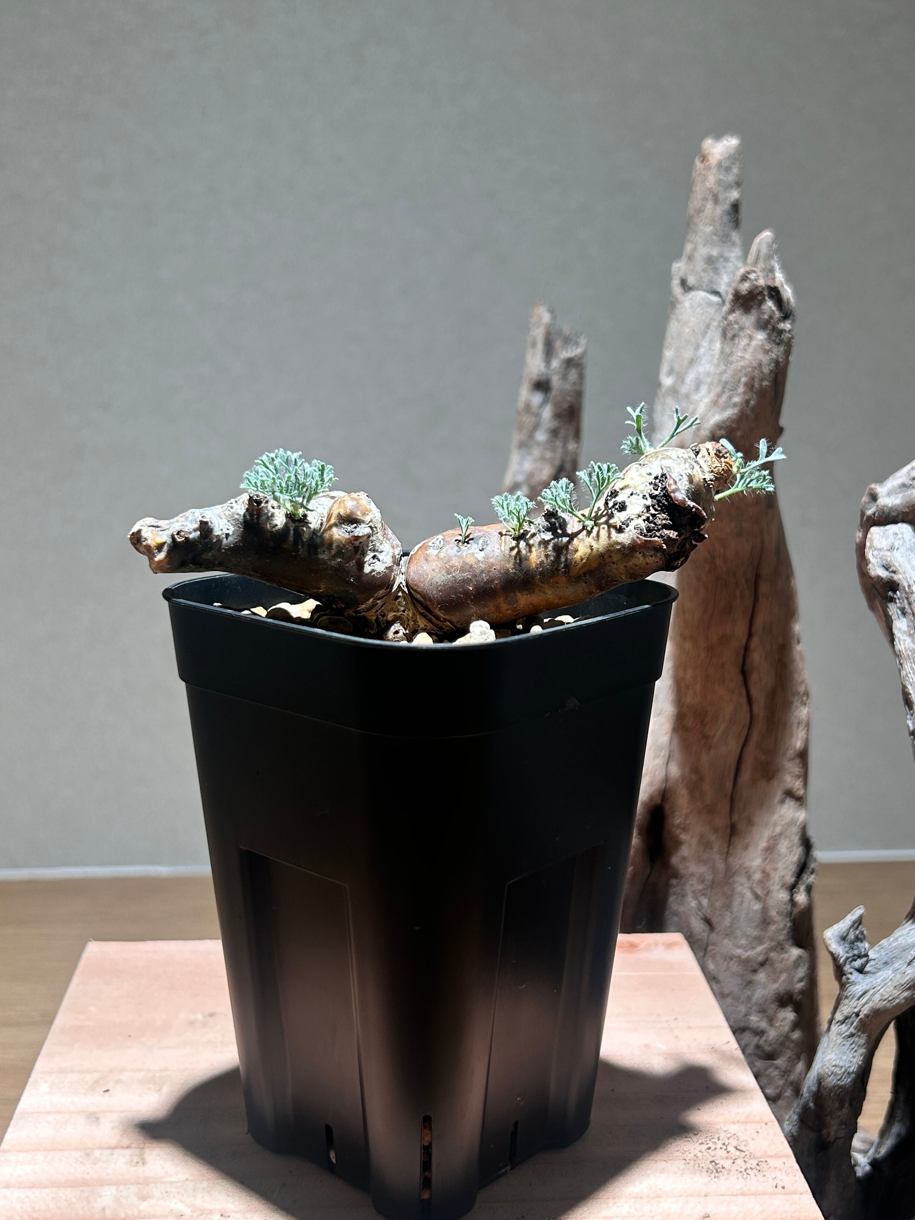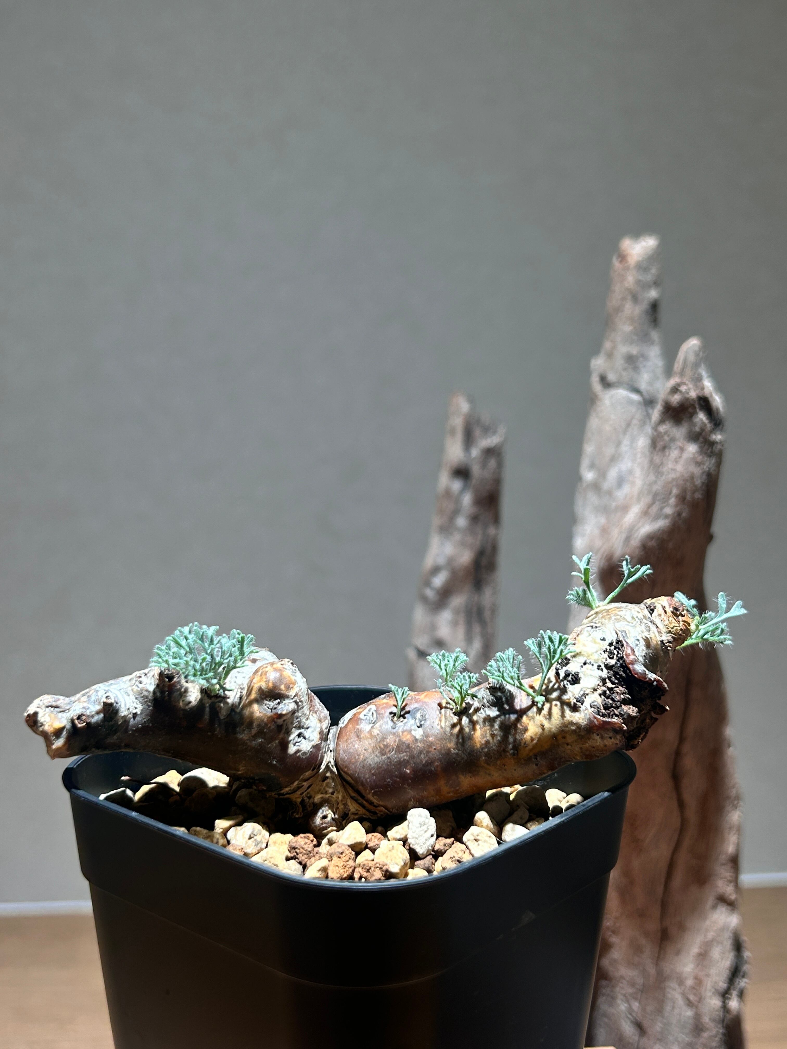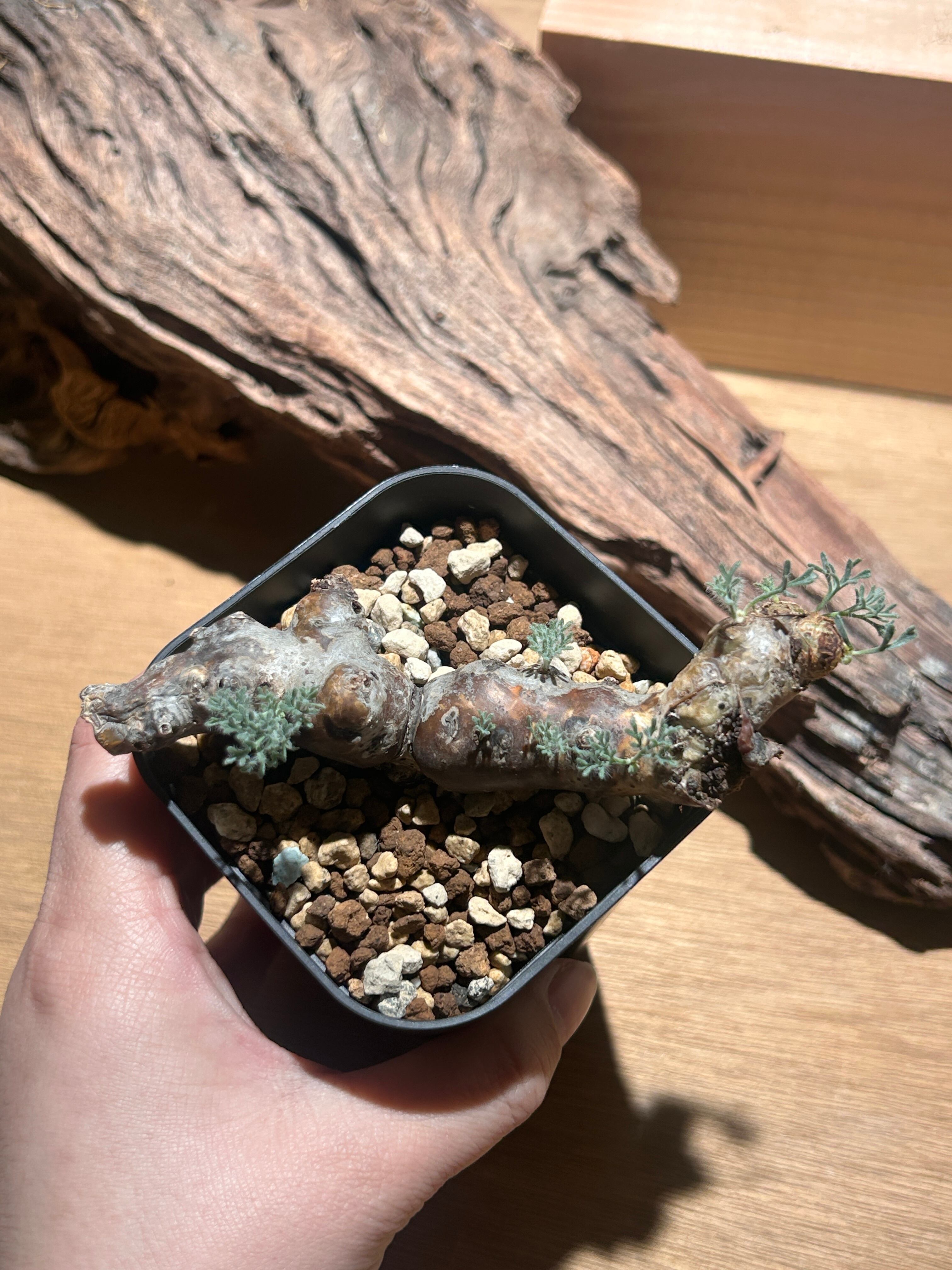 繊細に細かく裂けた葉が美しい、人気な塊根植物です。