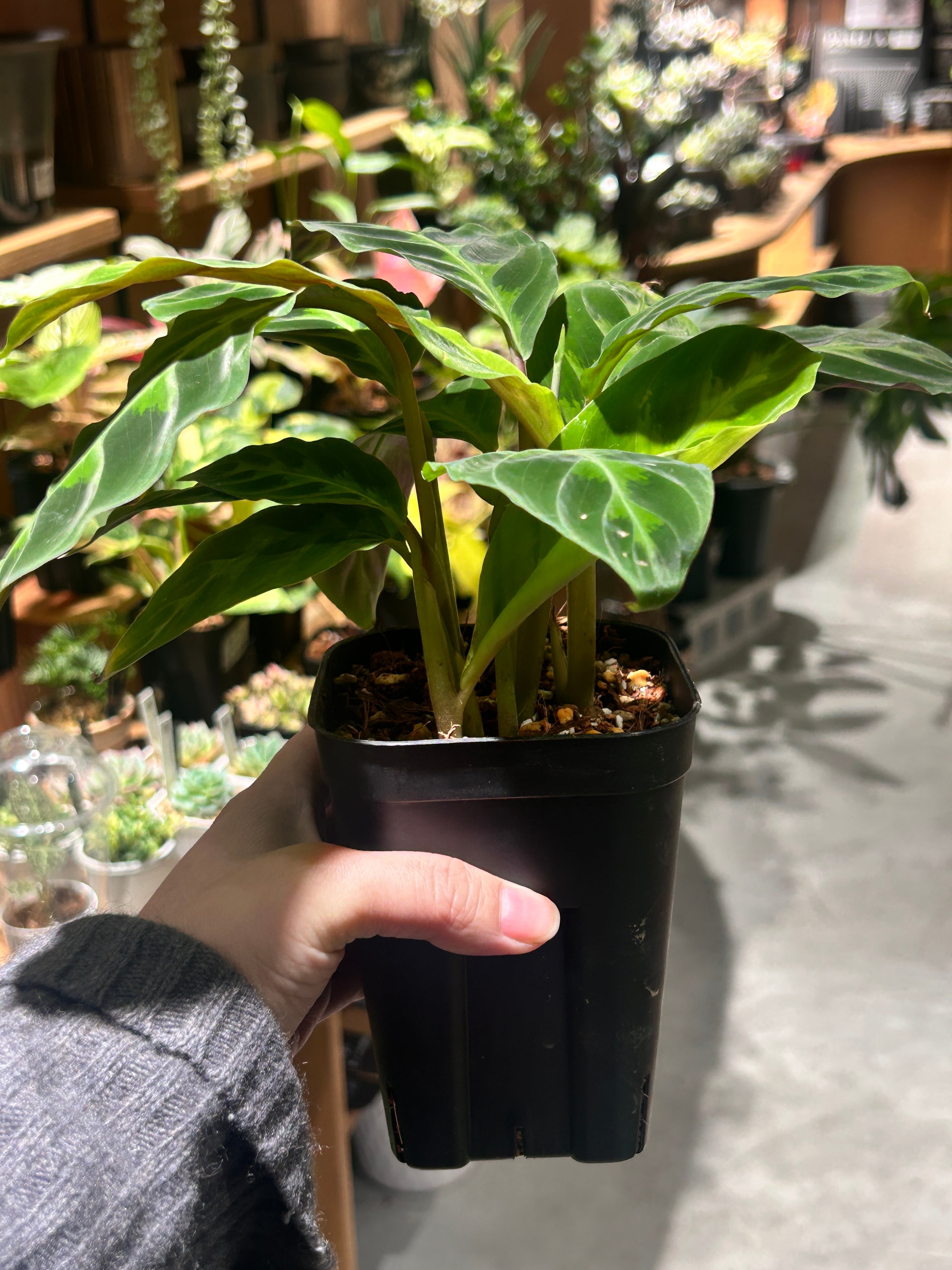 ベルベットのような手触りと、深いグーリンの葉が魅了な人気品種です。