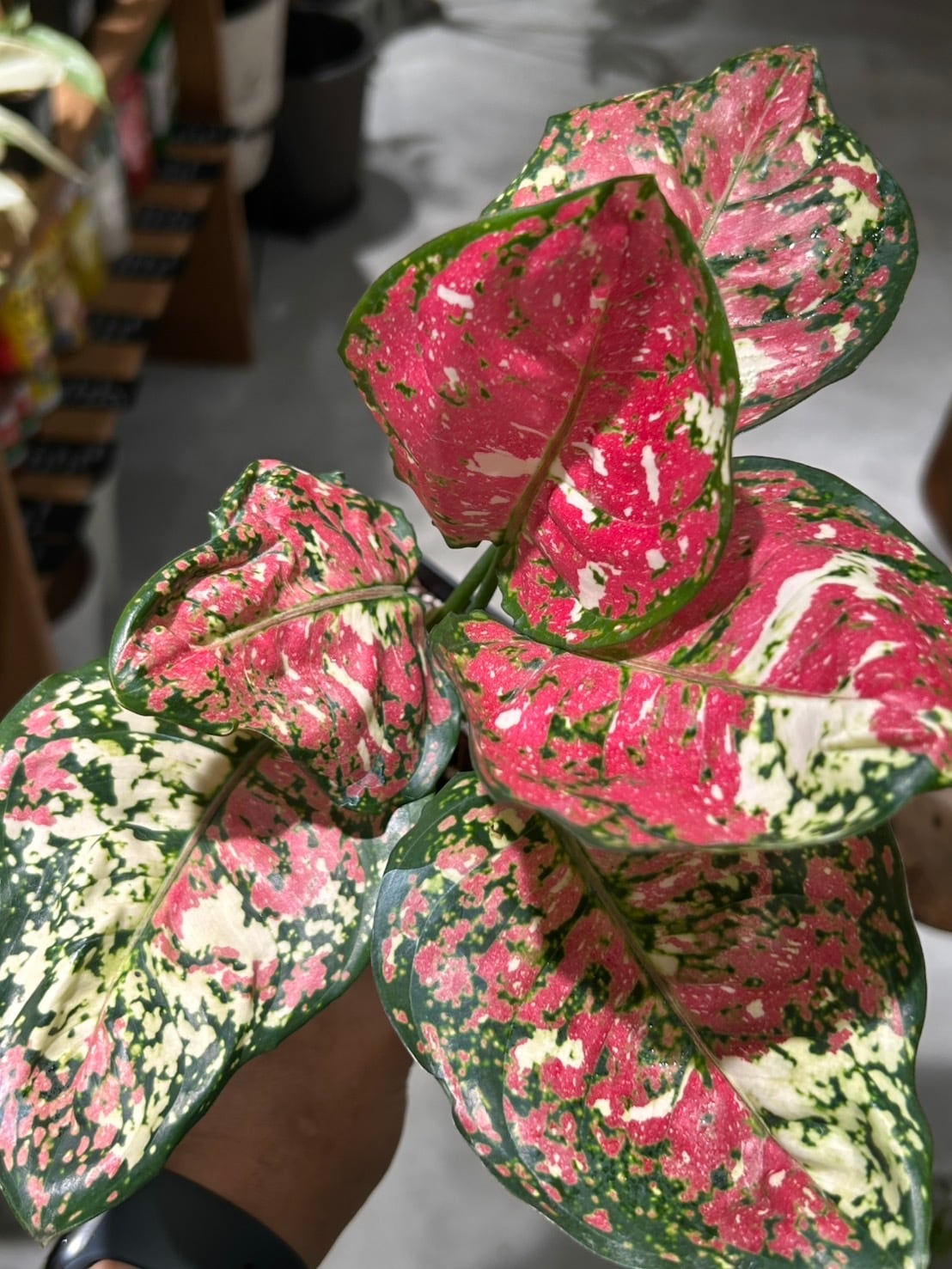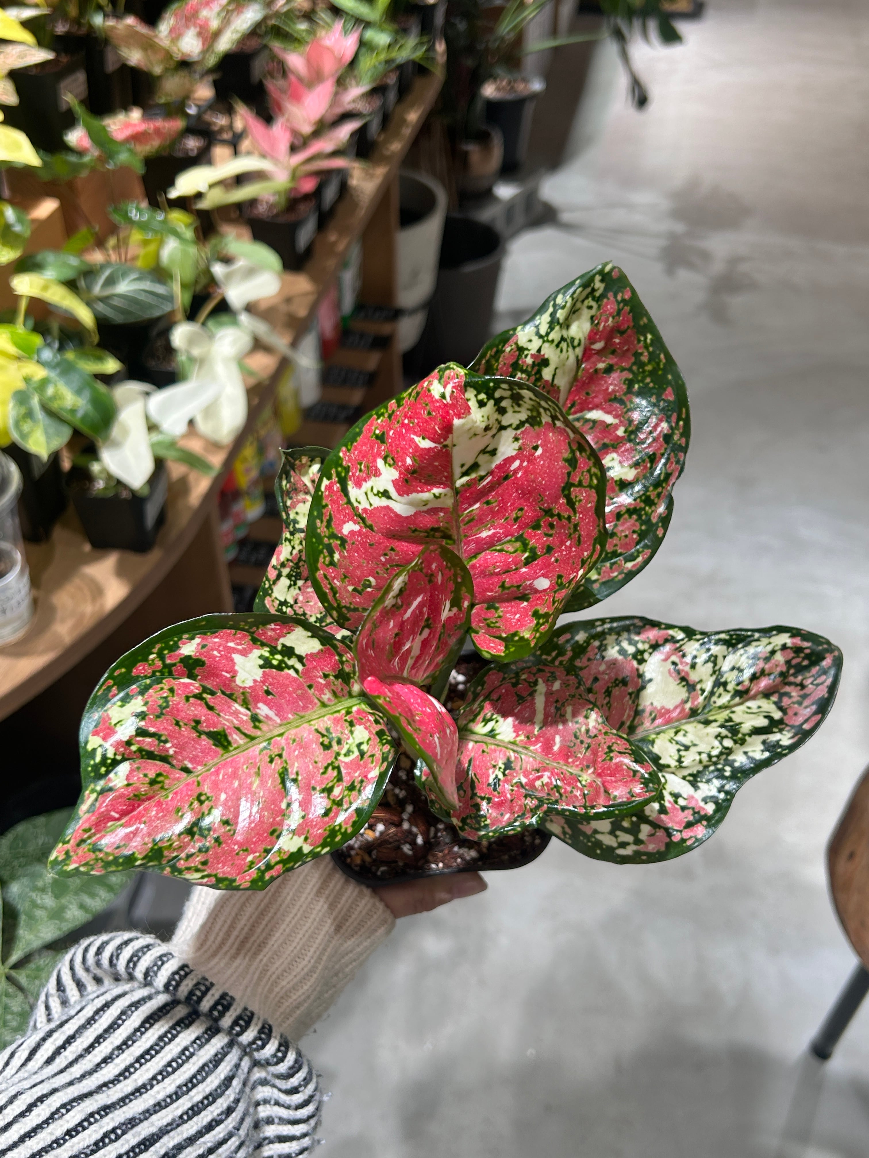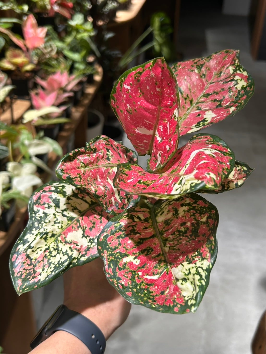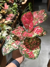 赤・ピンク・グリーンが複雑に混ざり合う葉色は、