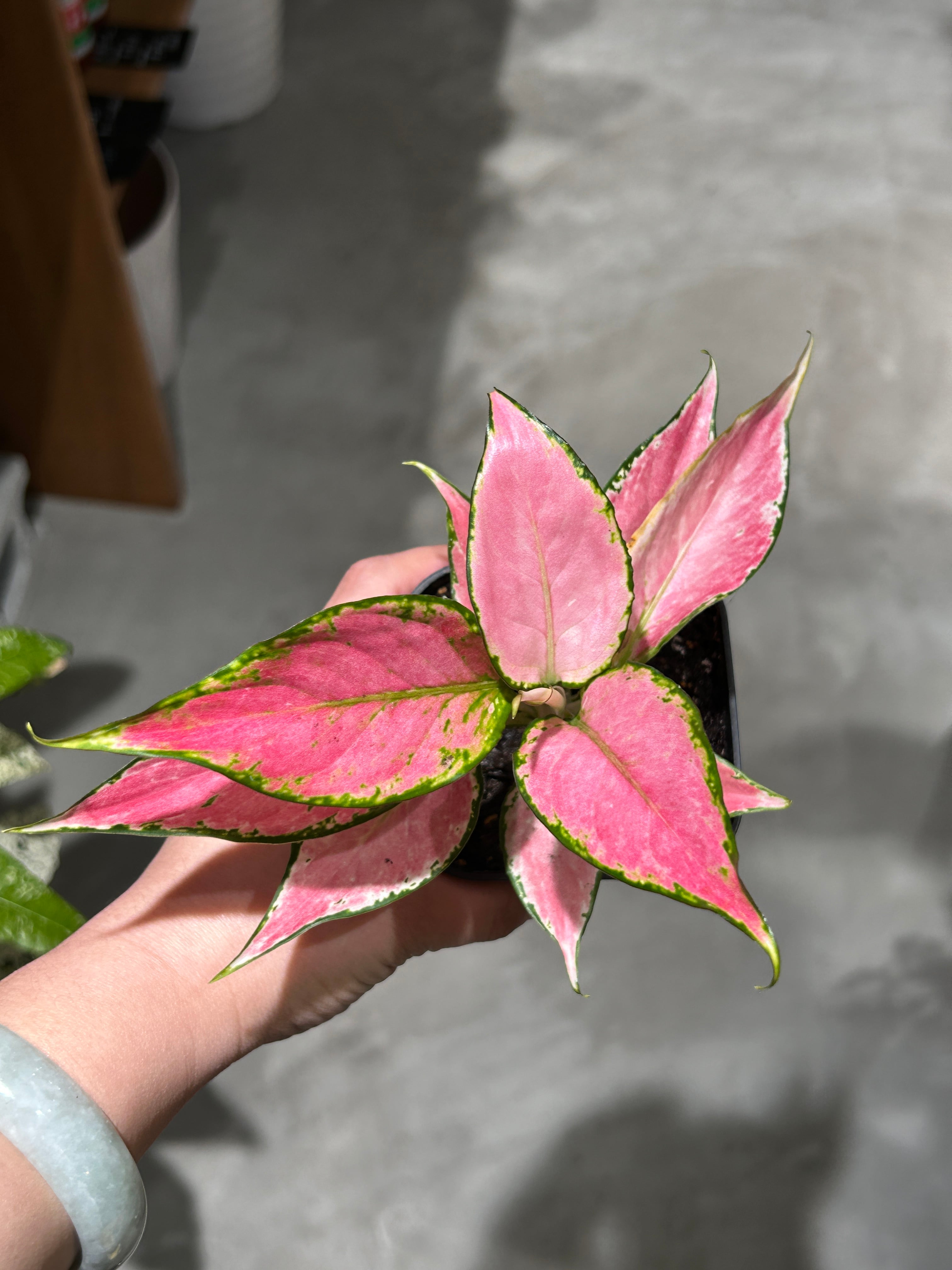 幻想的なピンク色が魅力の特別な観葉植物です。
