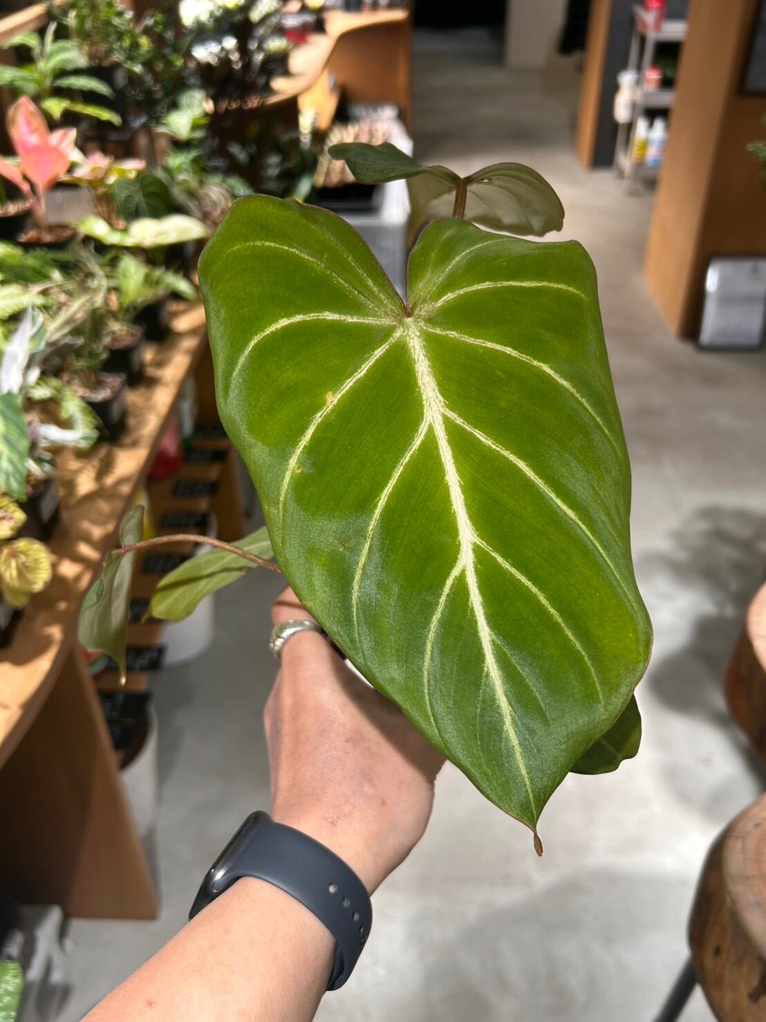 クリーム色の葉脈がくっきりと浮き出る独特な模様をしているのが特徴です。