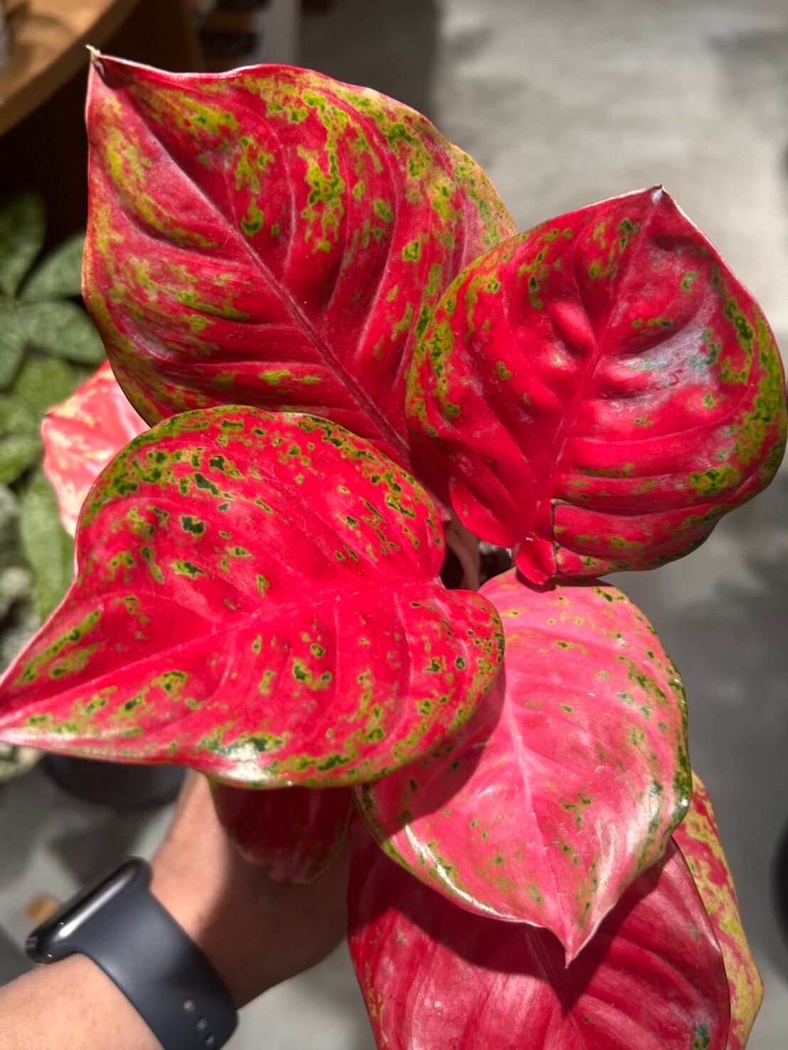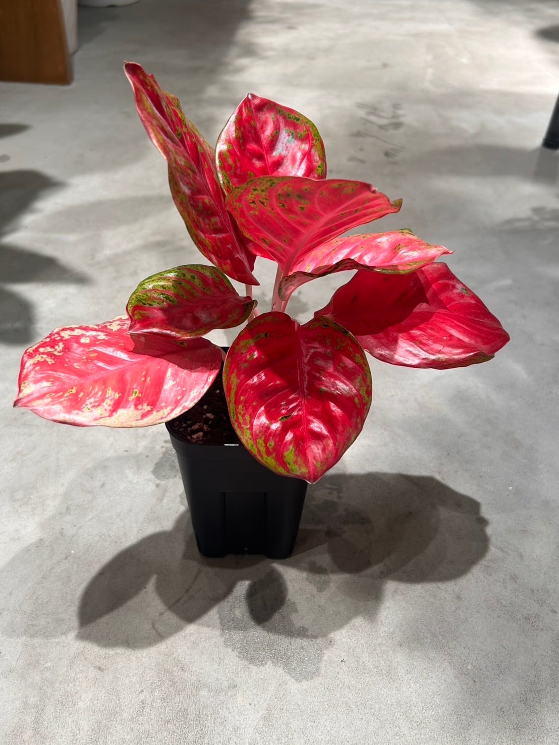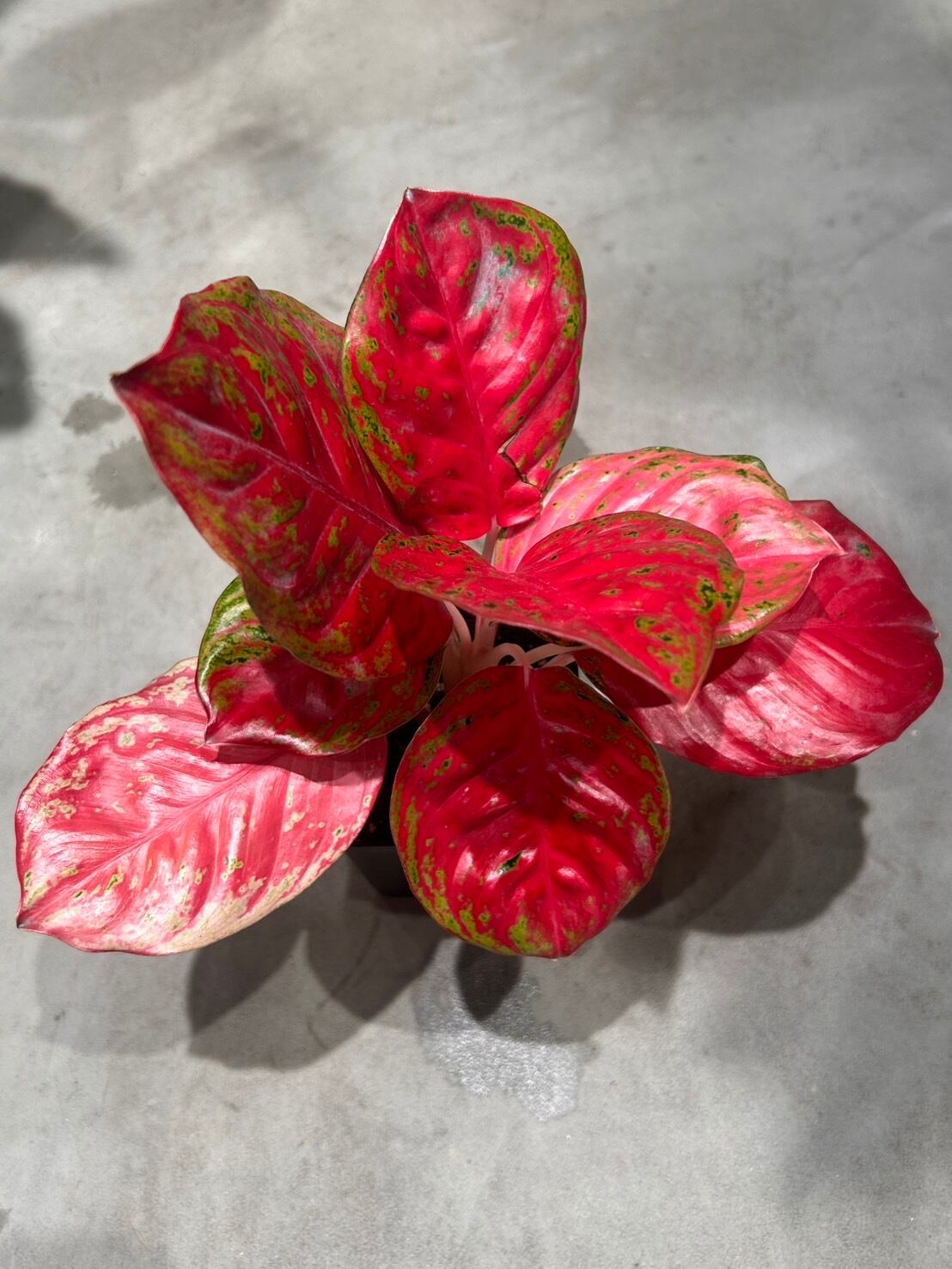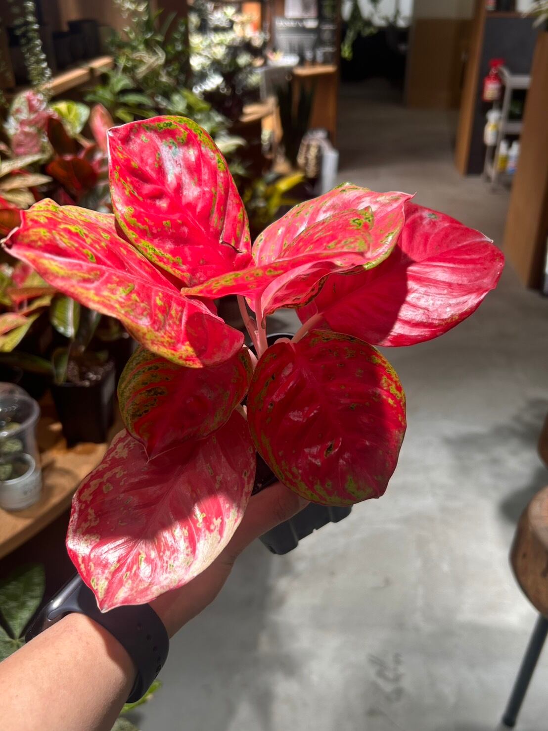 鮮やかな赤色にグリーンの斑が入る、美しいカラーリーフです。