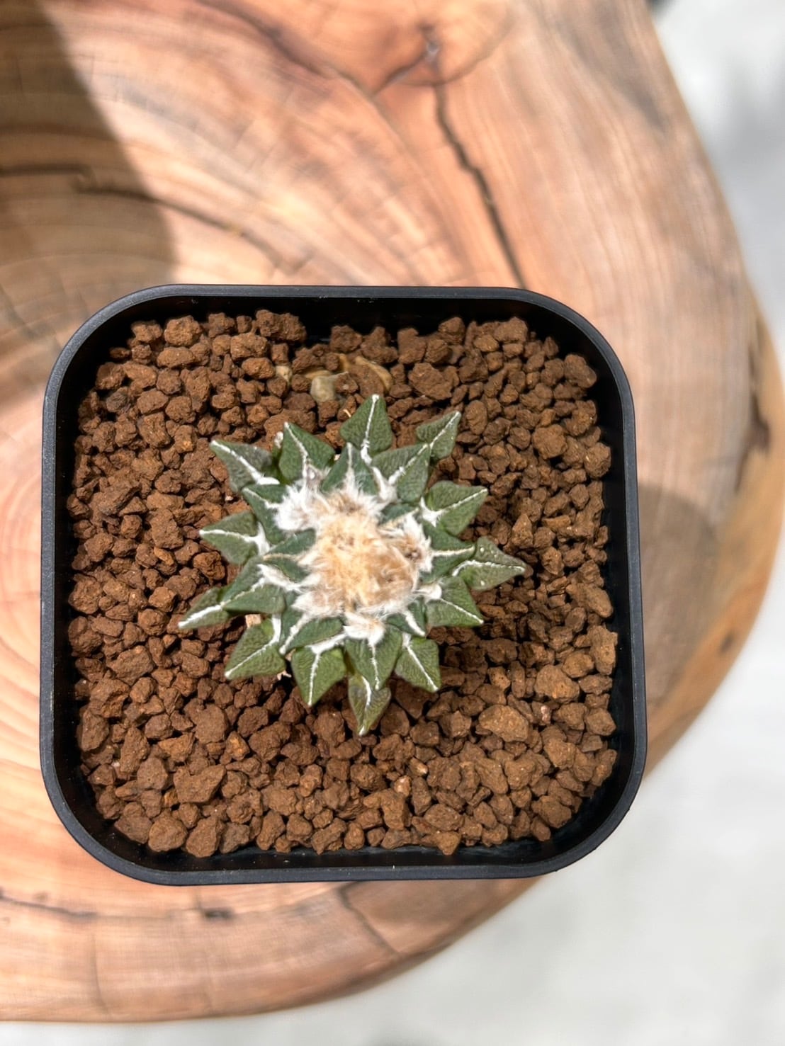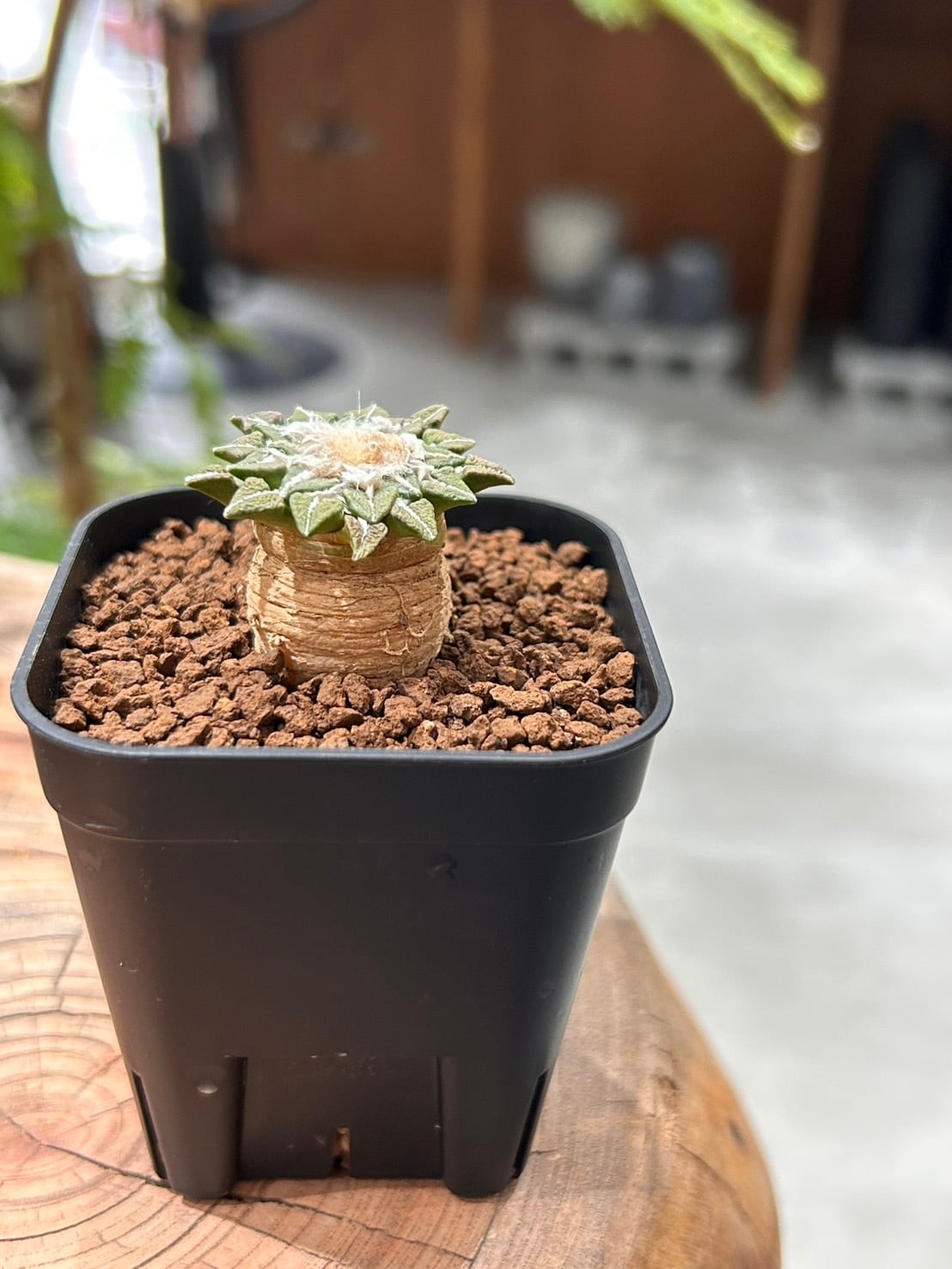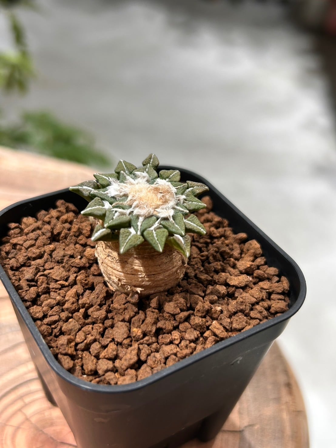 小さな葉を花びらのように重ねて広げる、愛らしいサボテン「姫牡丹」。