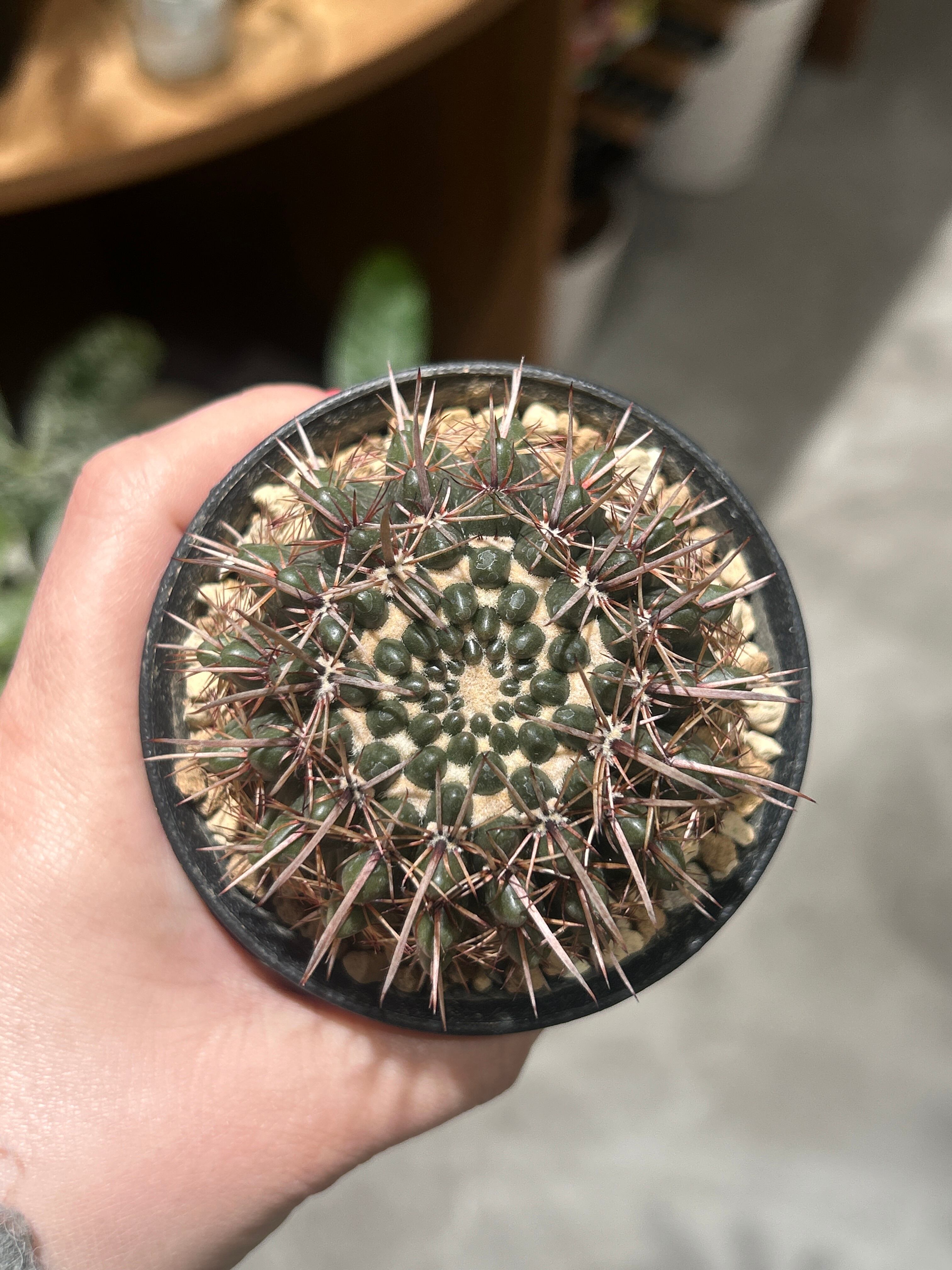 見事な赤棘と凛々しい姿が特徴の希少なサボテンです。