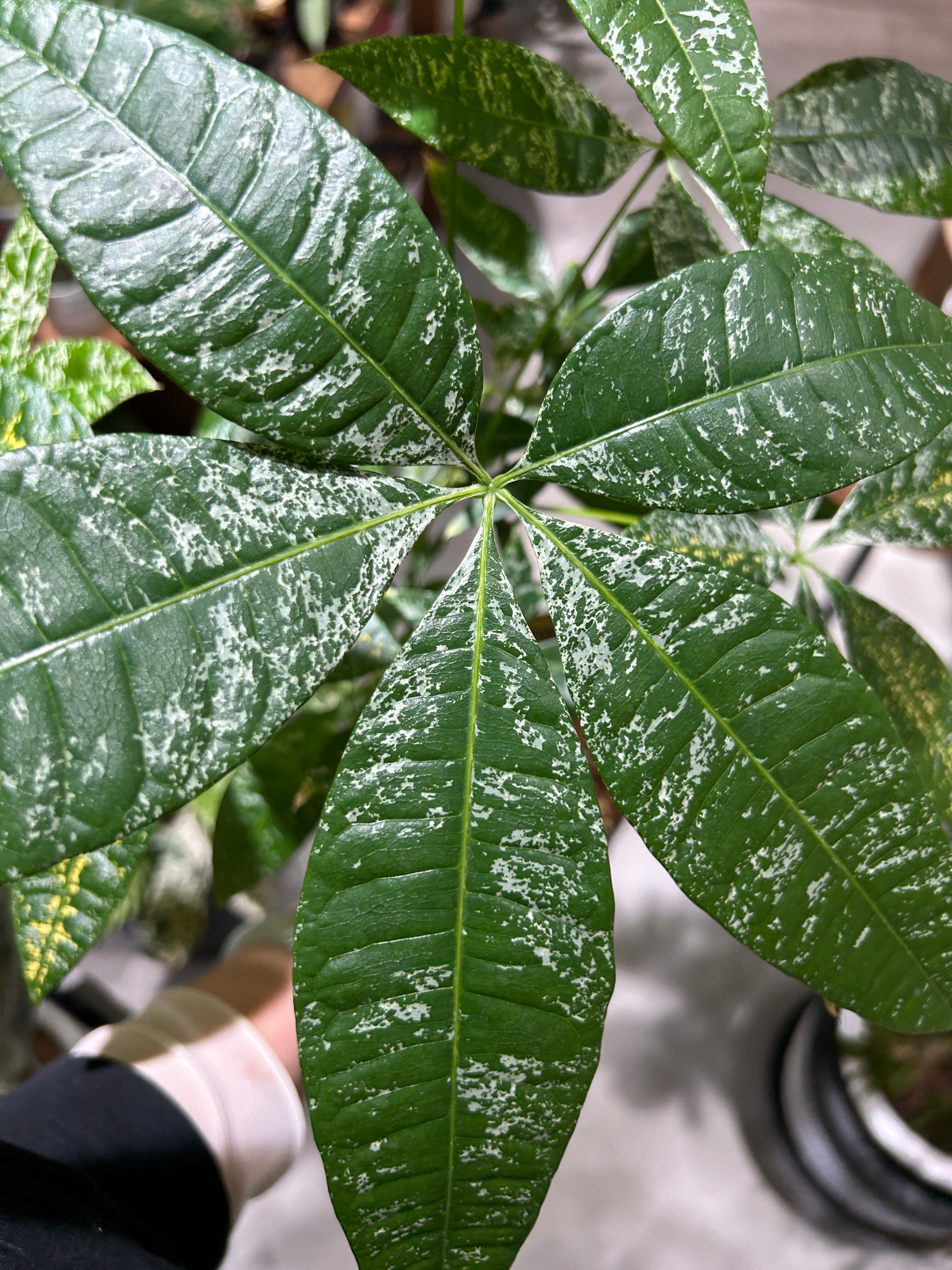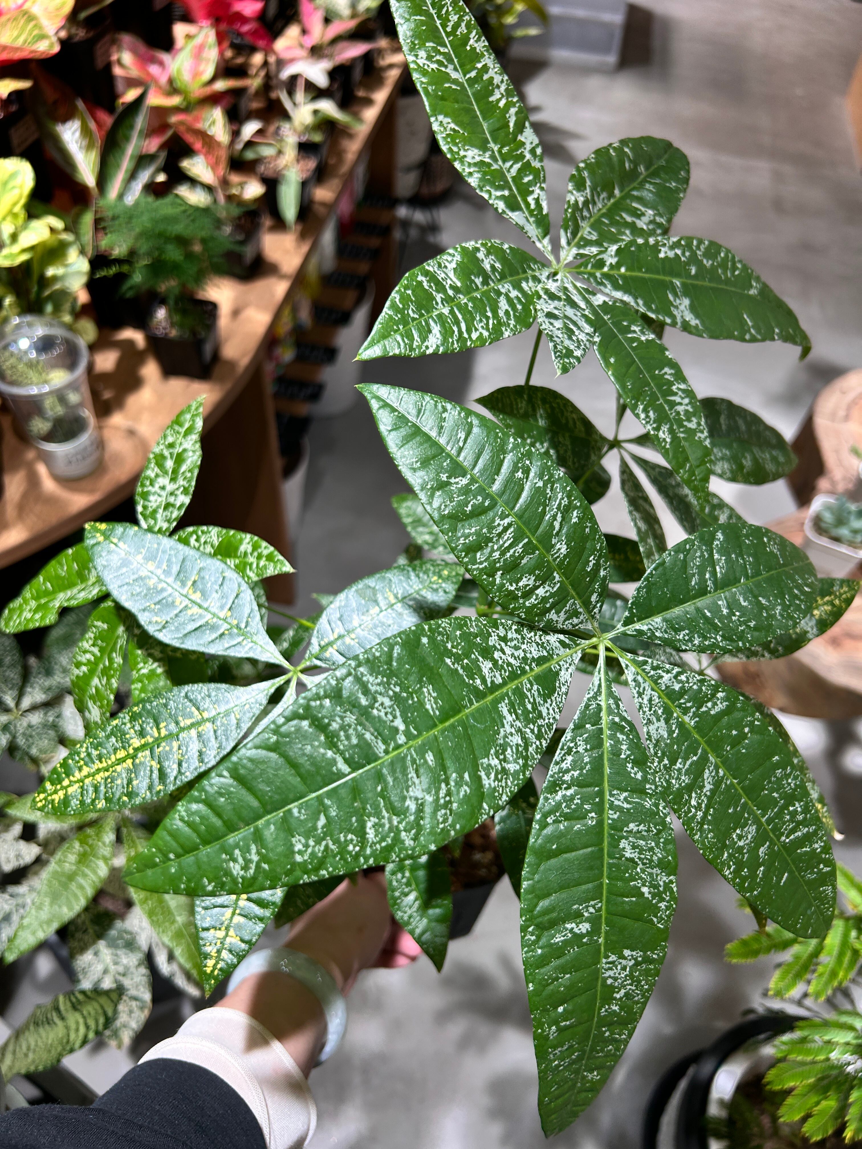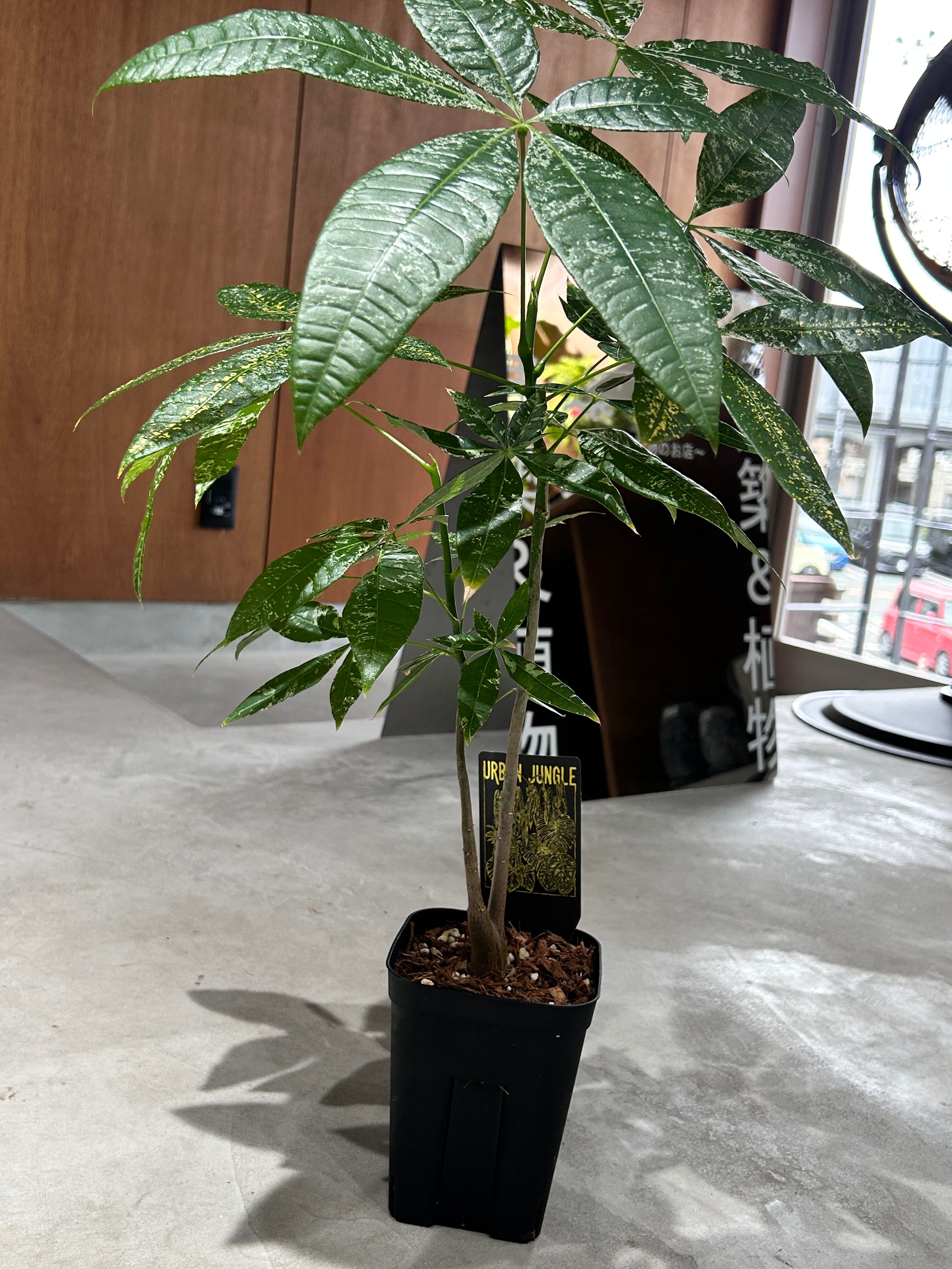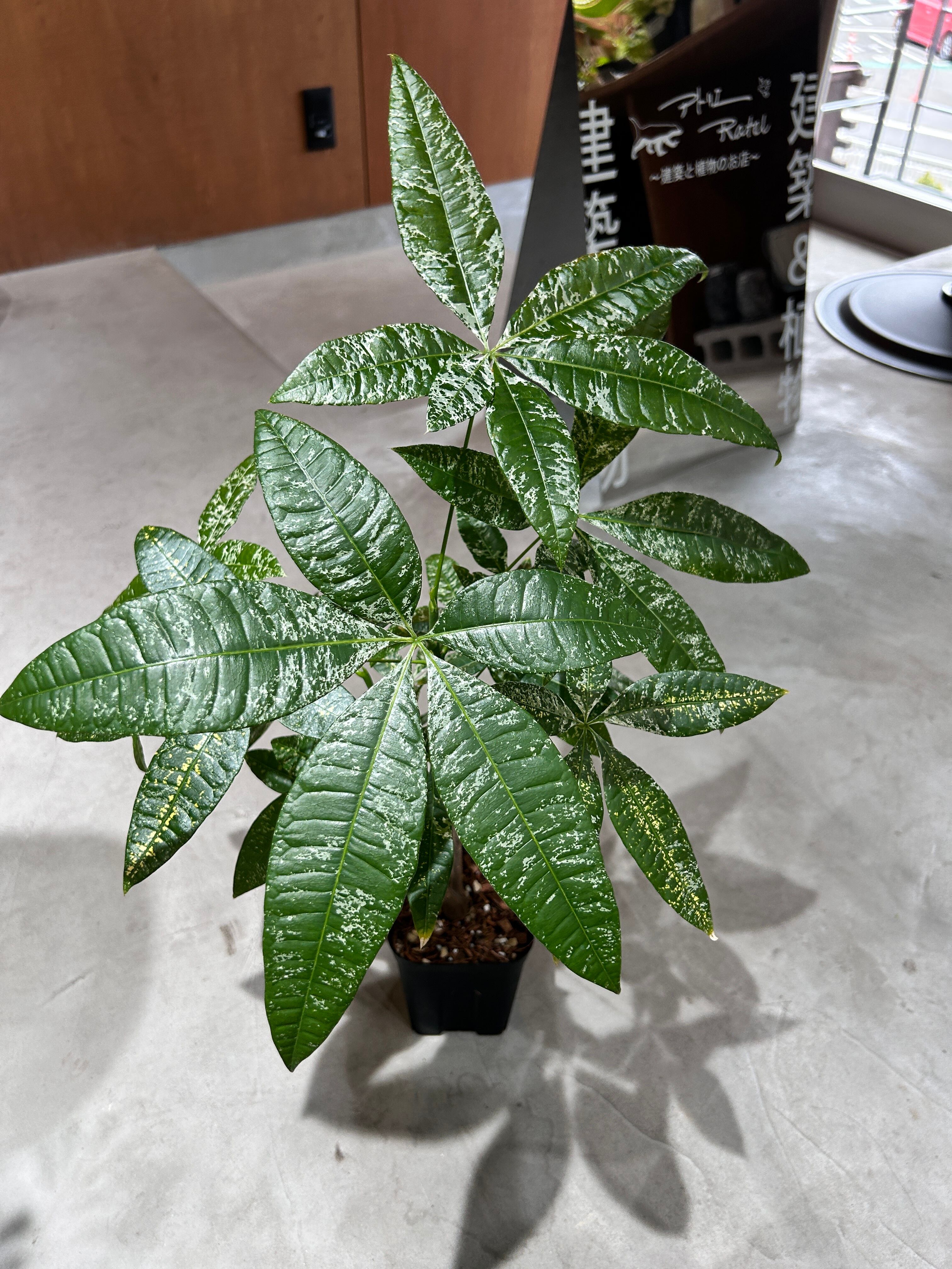 鮮やかな緑に美しい白斑と黄斑が特徴の観葉植物です。