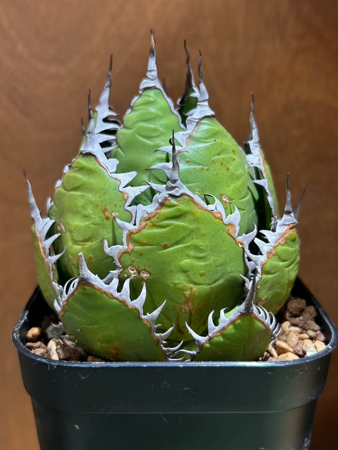 その鋭い鋸歯と美しいロゼット形状で多くの愛好家を魅了している人気の多肉植物です。