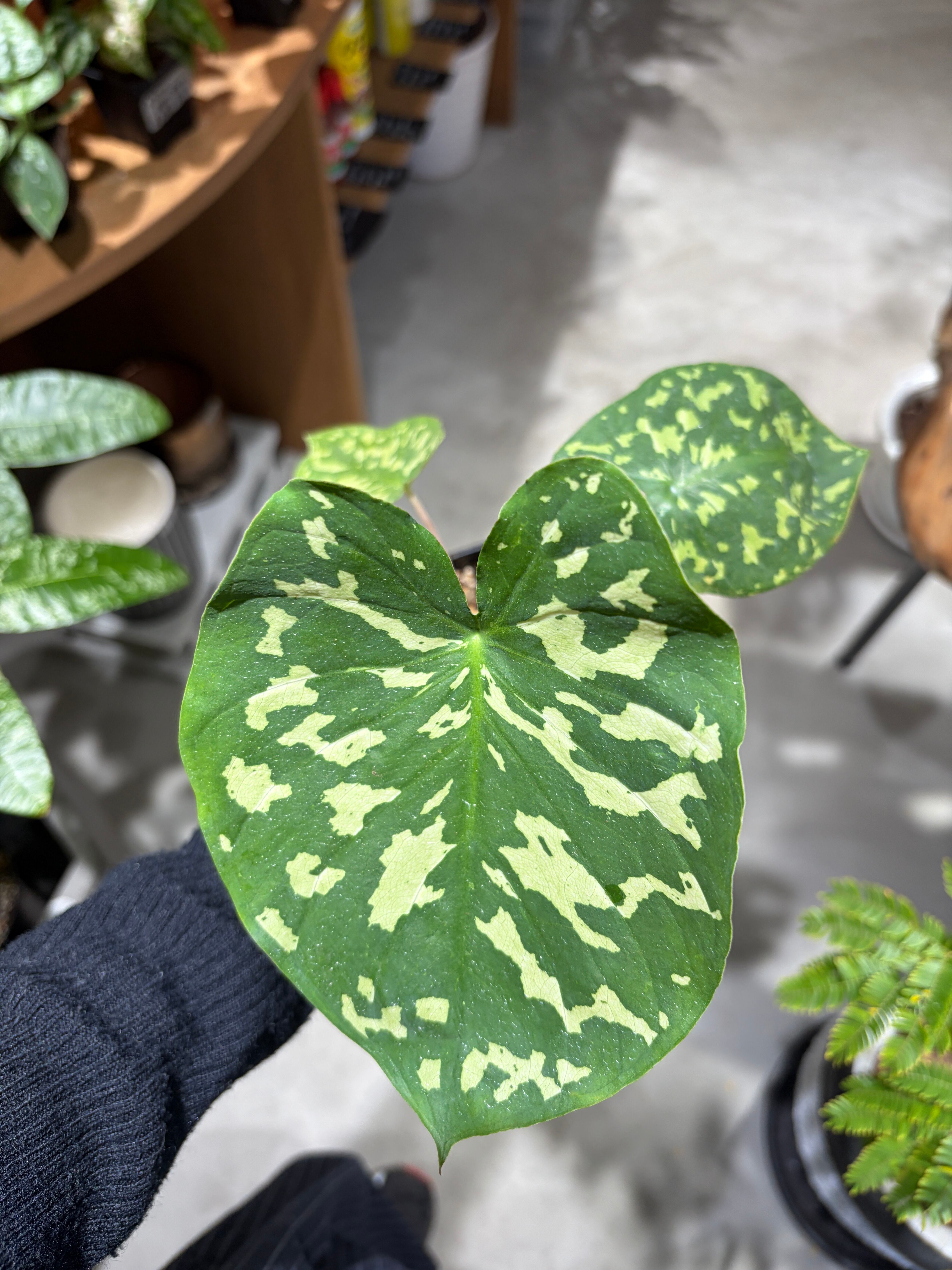美しいハート型の葉と独特な模様が特徴の魅力的な植物です。