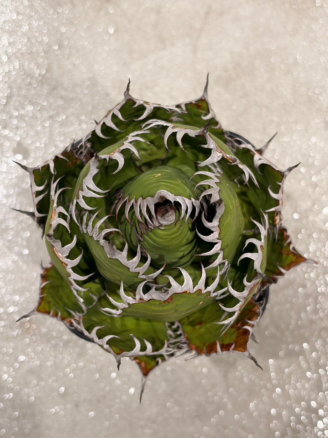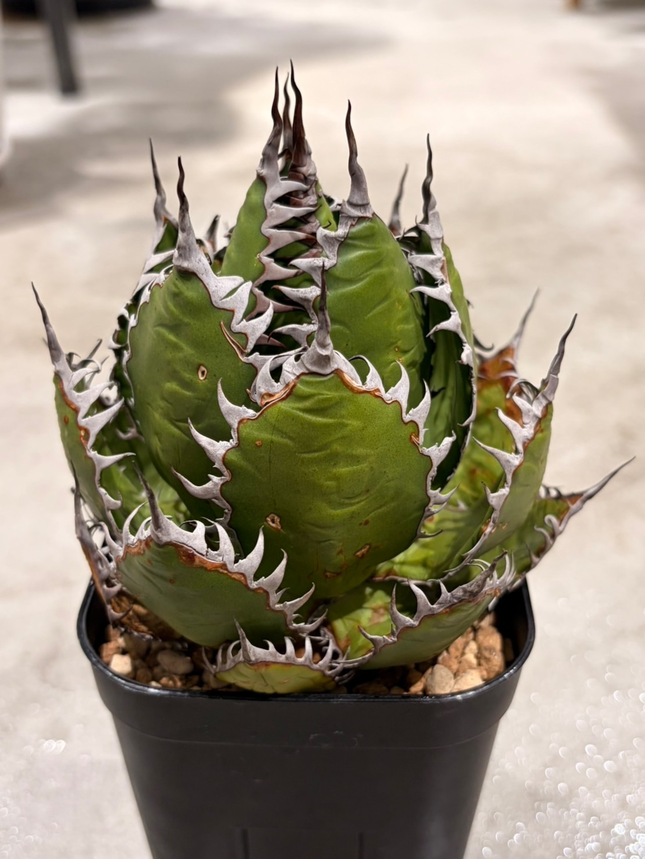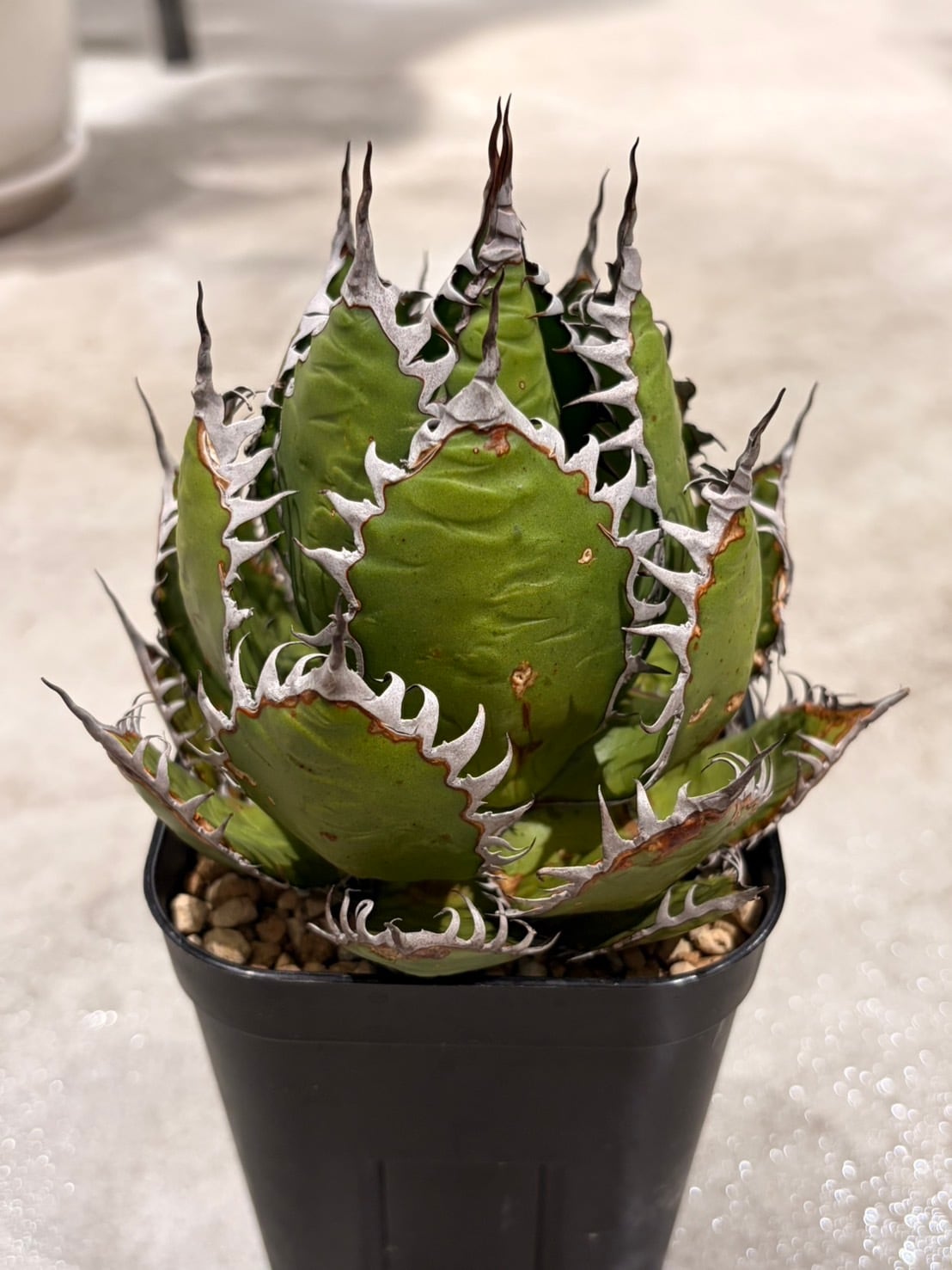 その鋭い鋸歯と美しいロゼット形状で多くの愛好家を魅了している人気の多肉植物です。