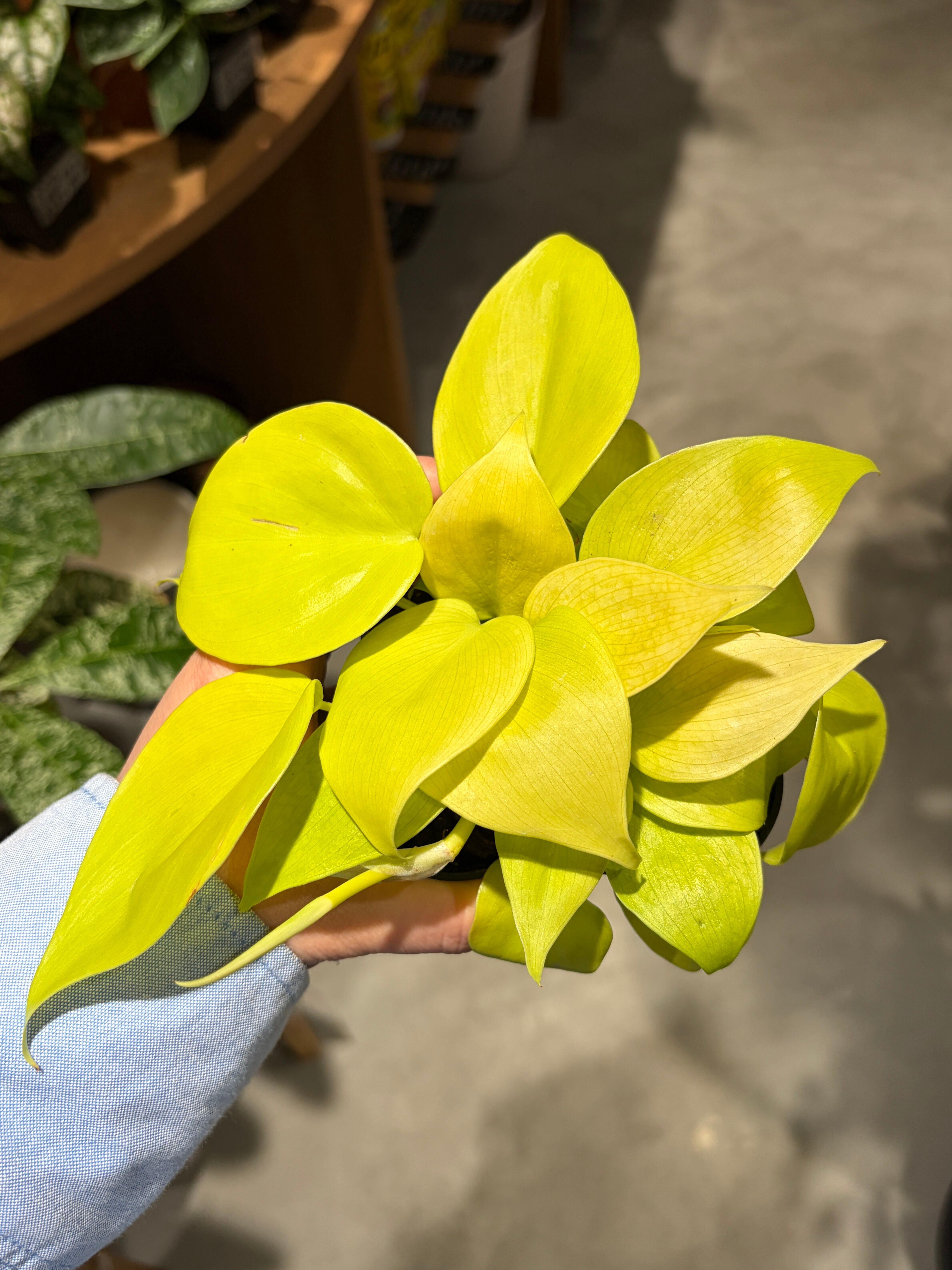 鮮やかなライムカラーの葉が空間を一気に明るく華やかに。