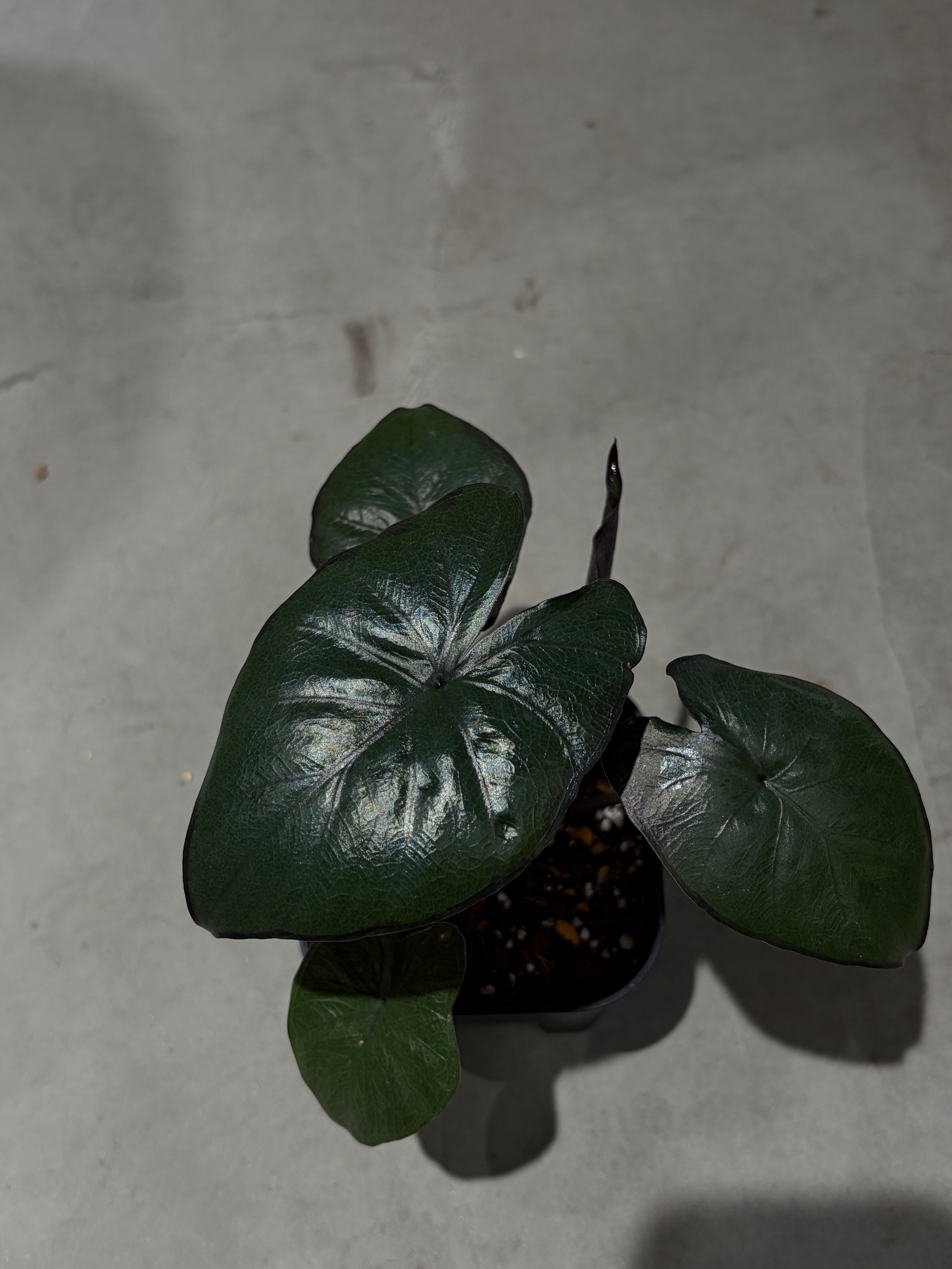 深みのあるメタリックグリーンの葉が特徴的な美しいアロカシアです。