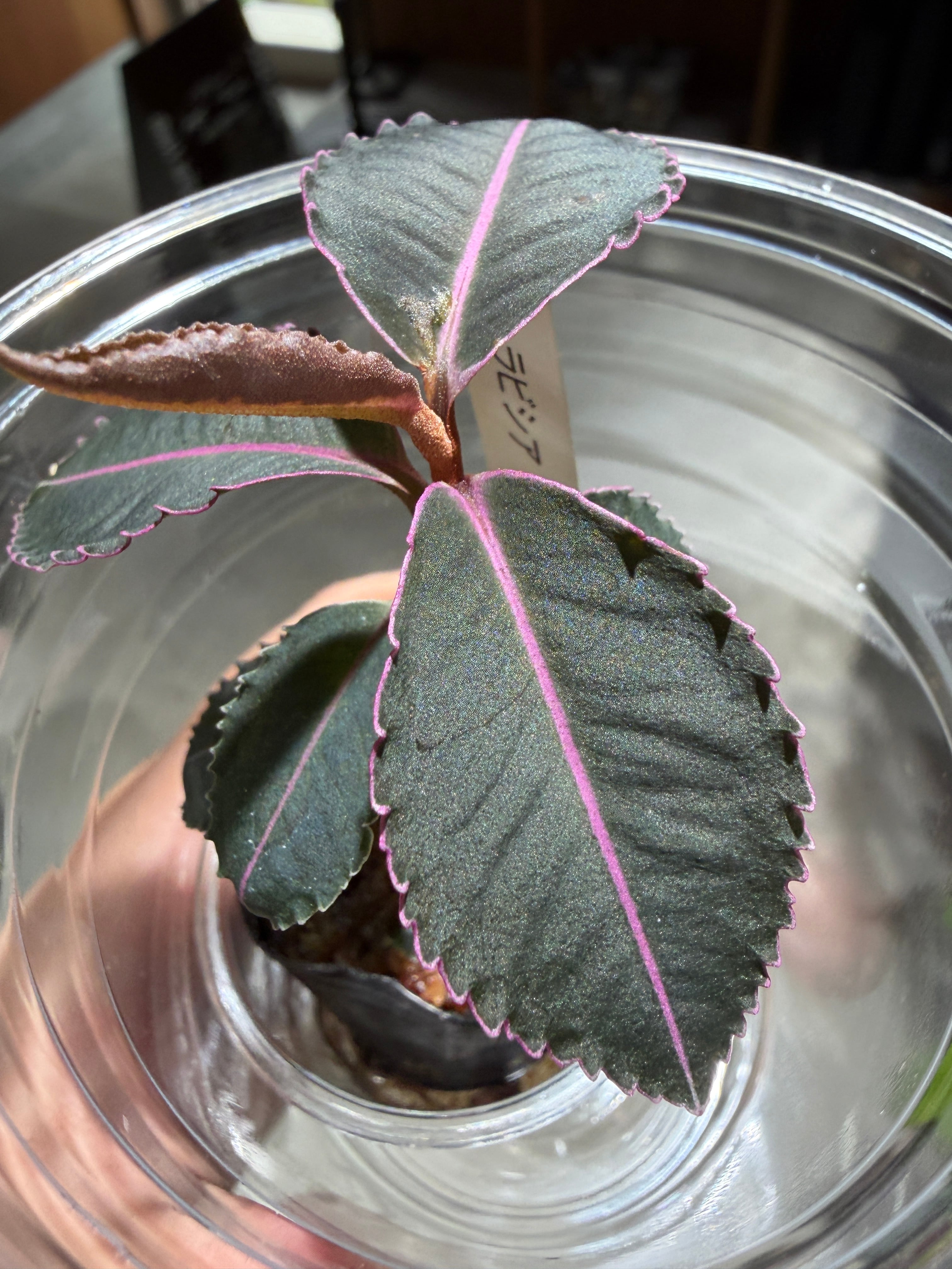 深いグリーンの葉に浮かぶ、美しいメタリック模様が魅力的。